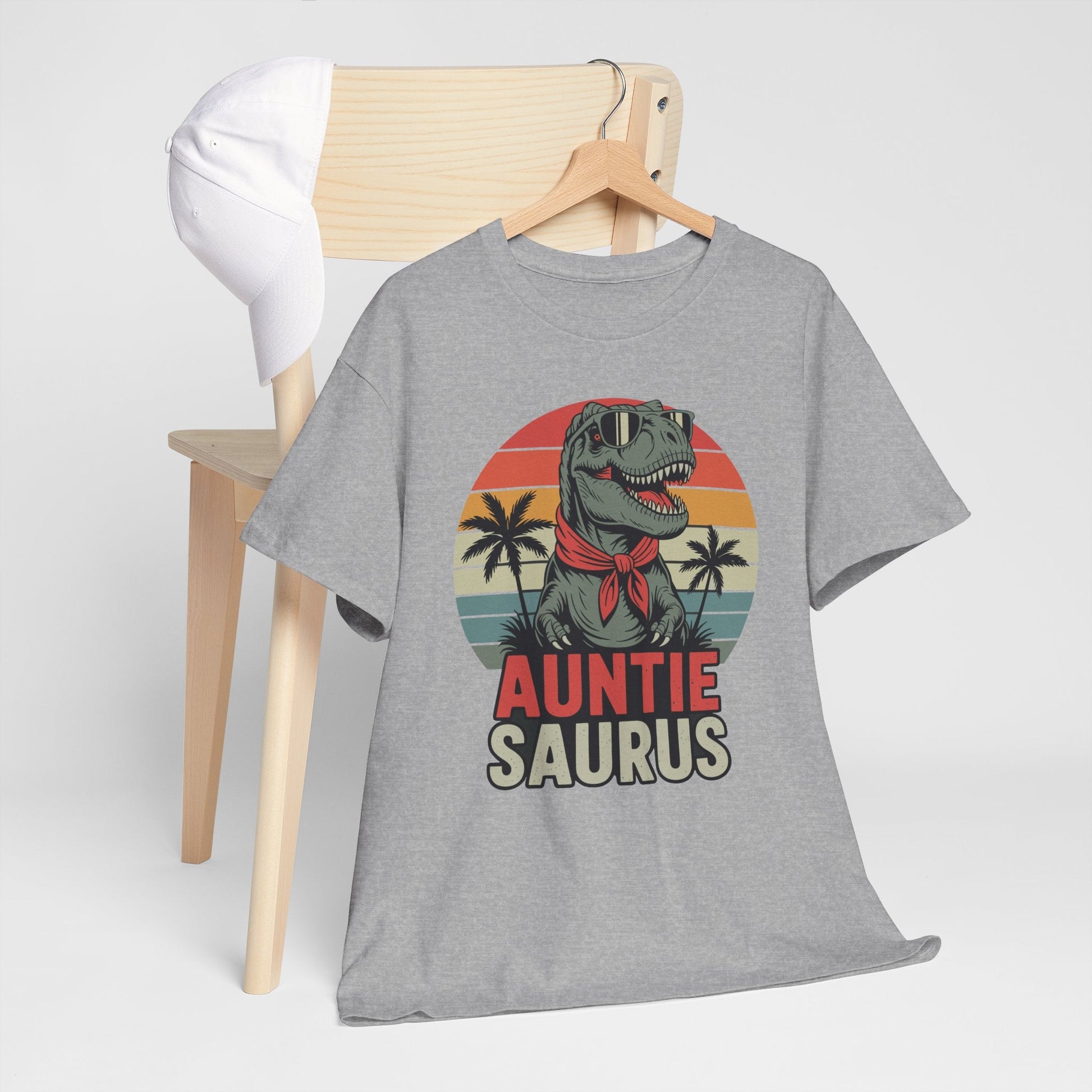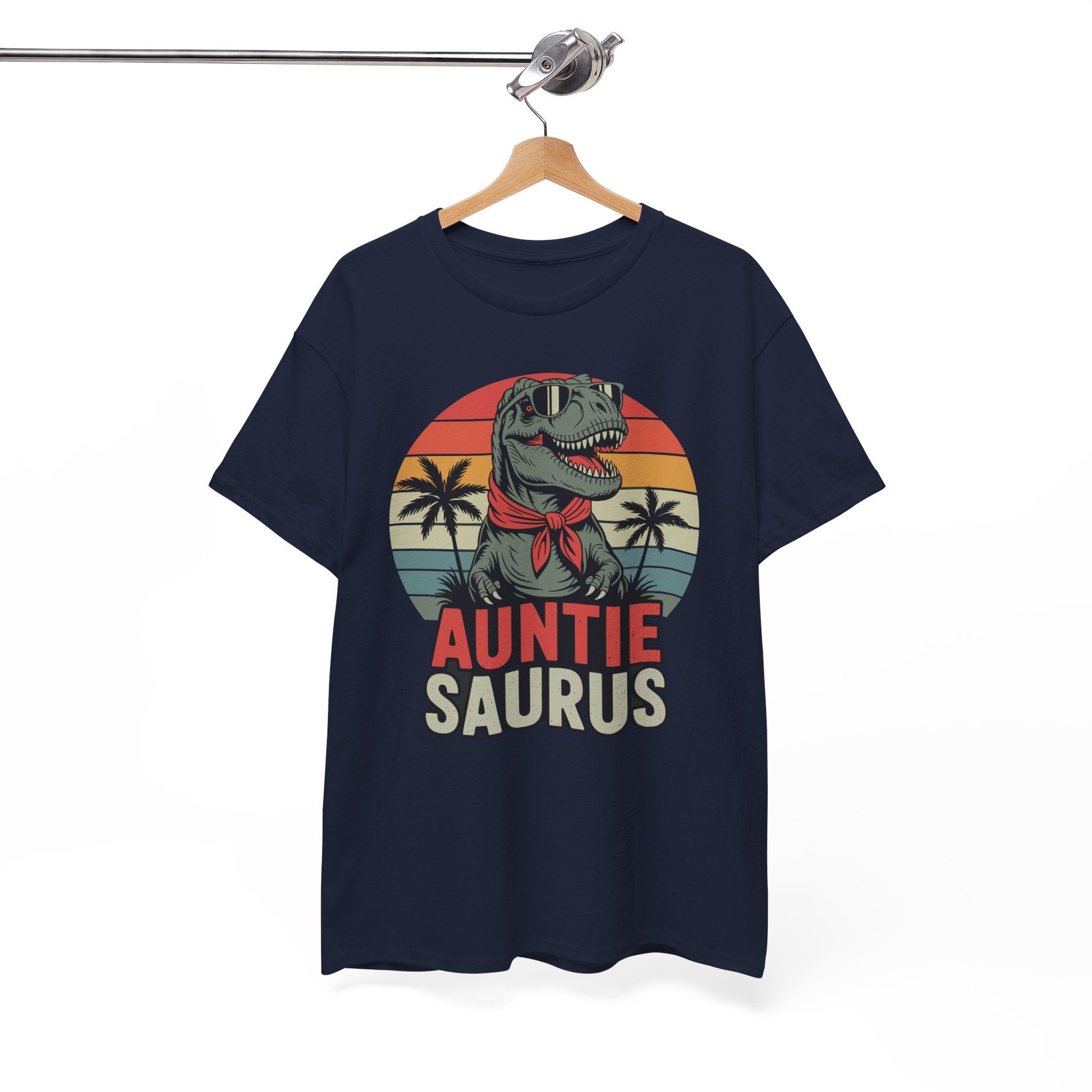 This Auntiesaurus T-Rex Dinosaur Auntie Saurus family matching T-shirt gives off a fun and playful vibe, perfect for family gatherings or outings. It is relevant to aunties who want to show off their playful and loving side. Ideal for Mother's Day, family reunions, or casual family photo shoots.