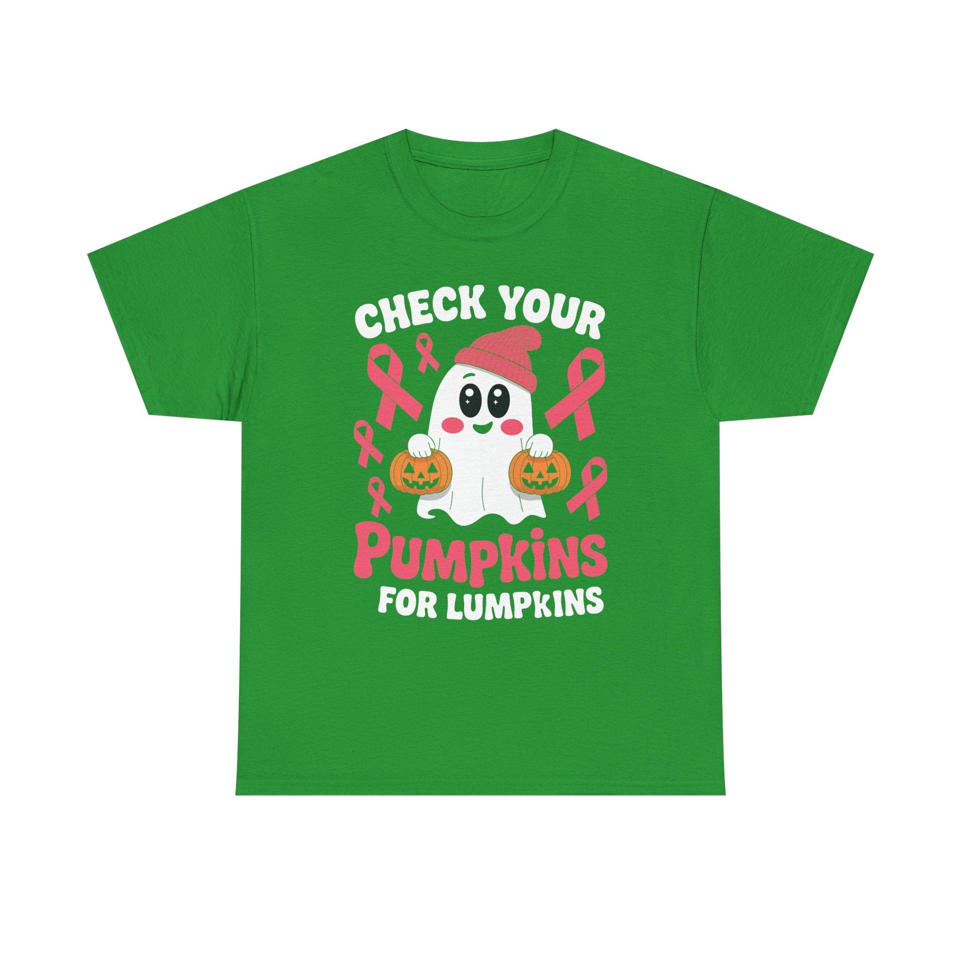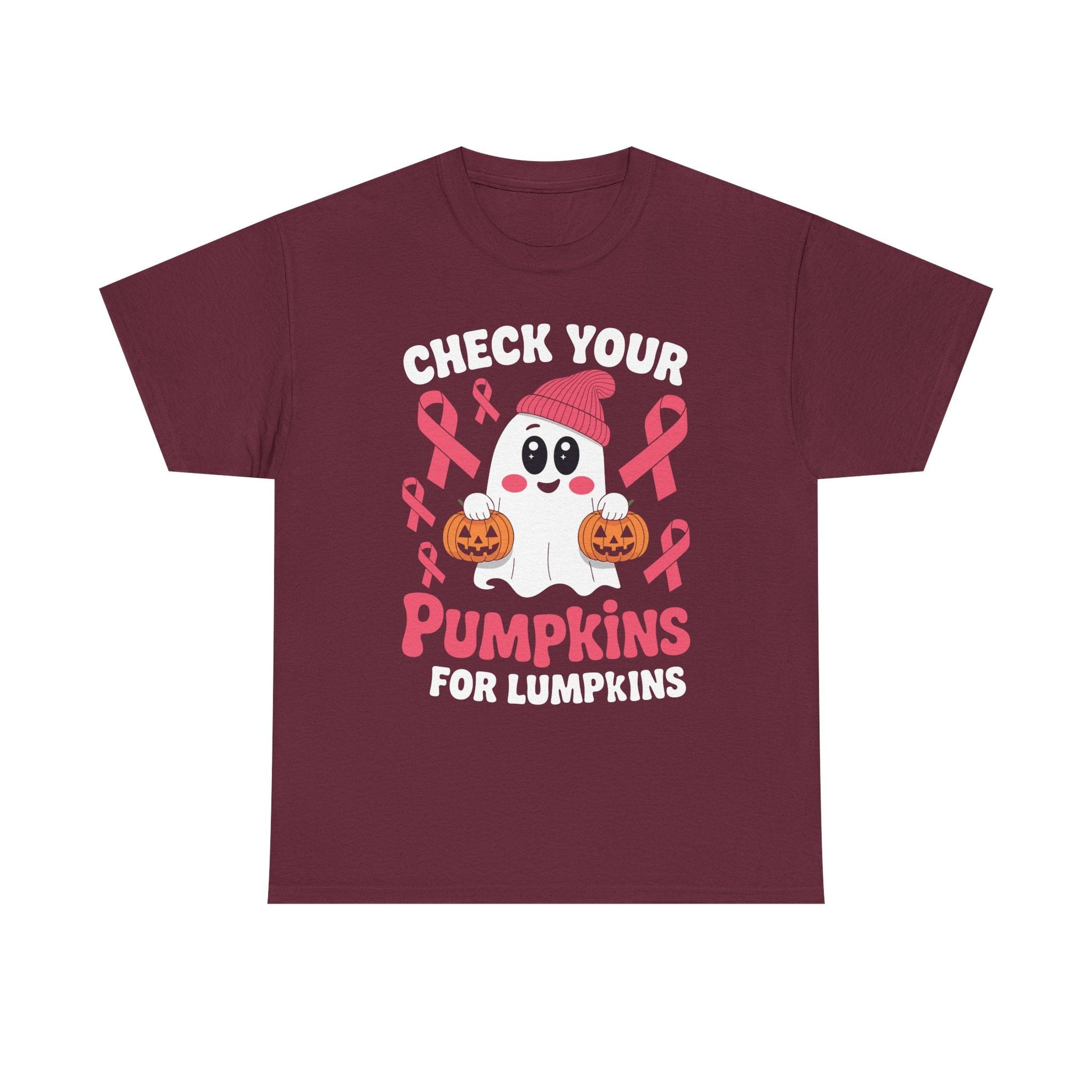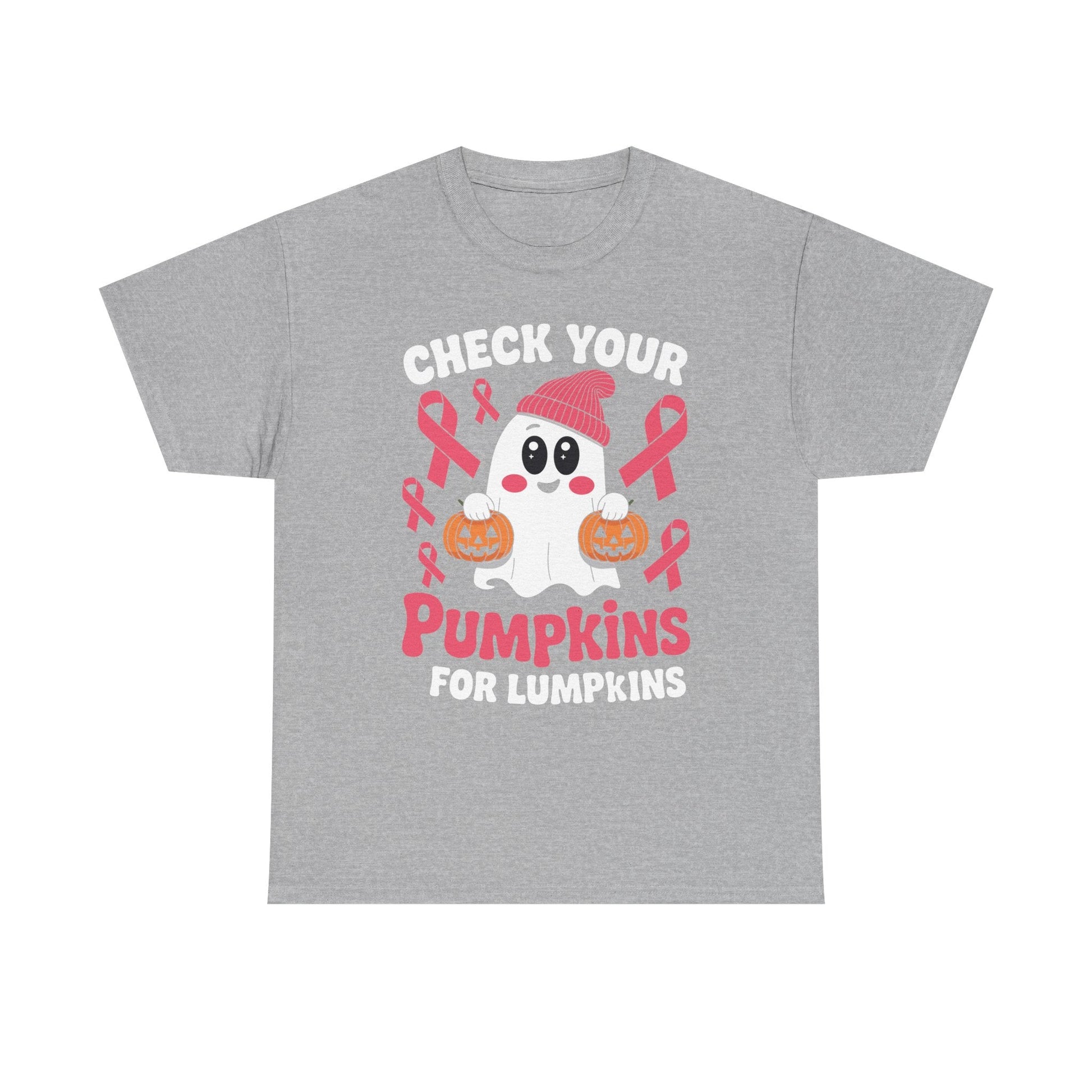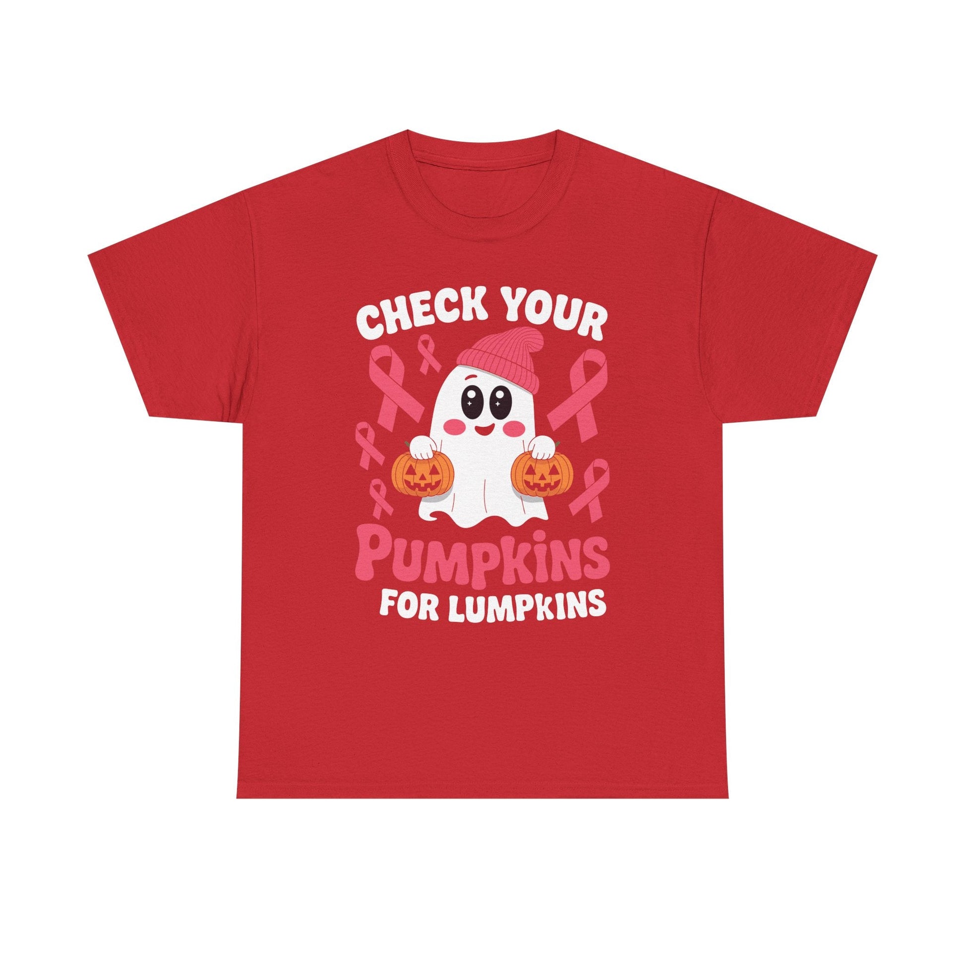 This Breast Cancer Halloween Boo Ghost Check Your Pumpkins T-Shirt is a fun and festive addition to any wardrobe. Perfect for those who want to show support for breast cancer awareness during Halloween. The design features a spooky ghost and a playful message, adding a touch of whimsy to your outfit. Ideal for women looking to make a statement and spread awareness for a good cause.