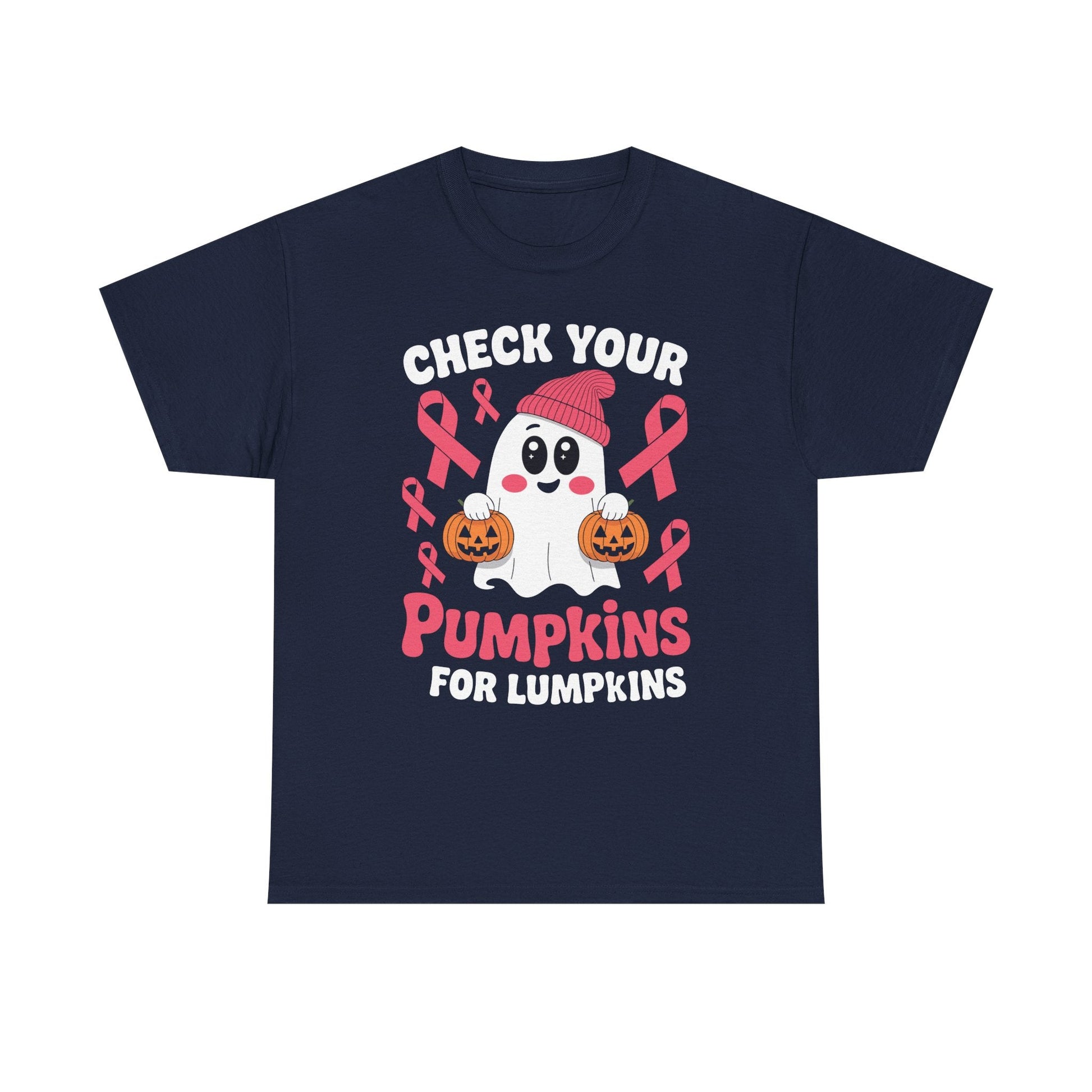 Breast Cancer Halloween Boo Ghost Check Your Pumpkins Womens T-Shirt