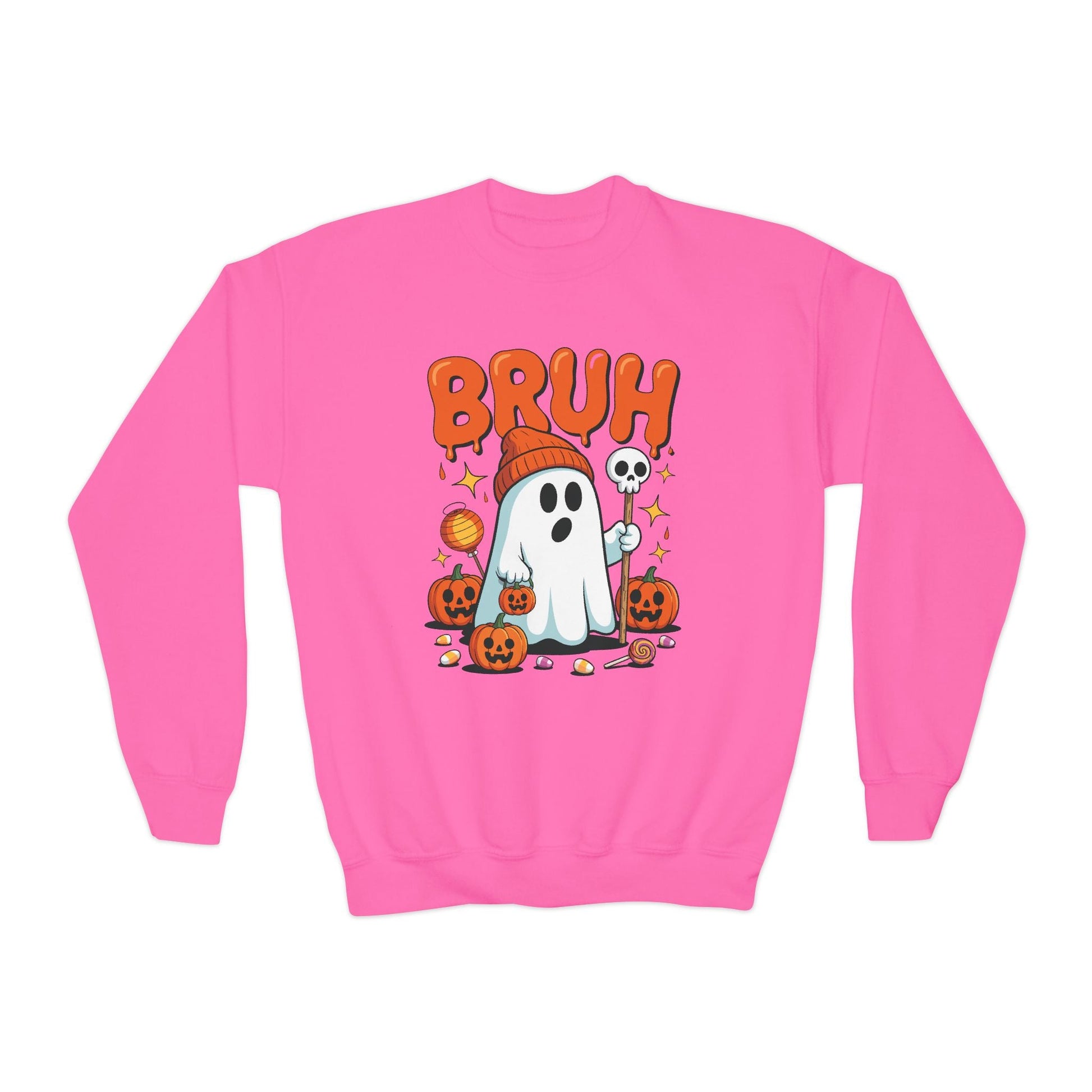 Bruh Ghost Halloween Cute Ghost Trick Or Treat Candy Kids Sweatshirt