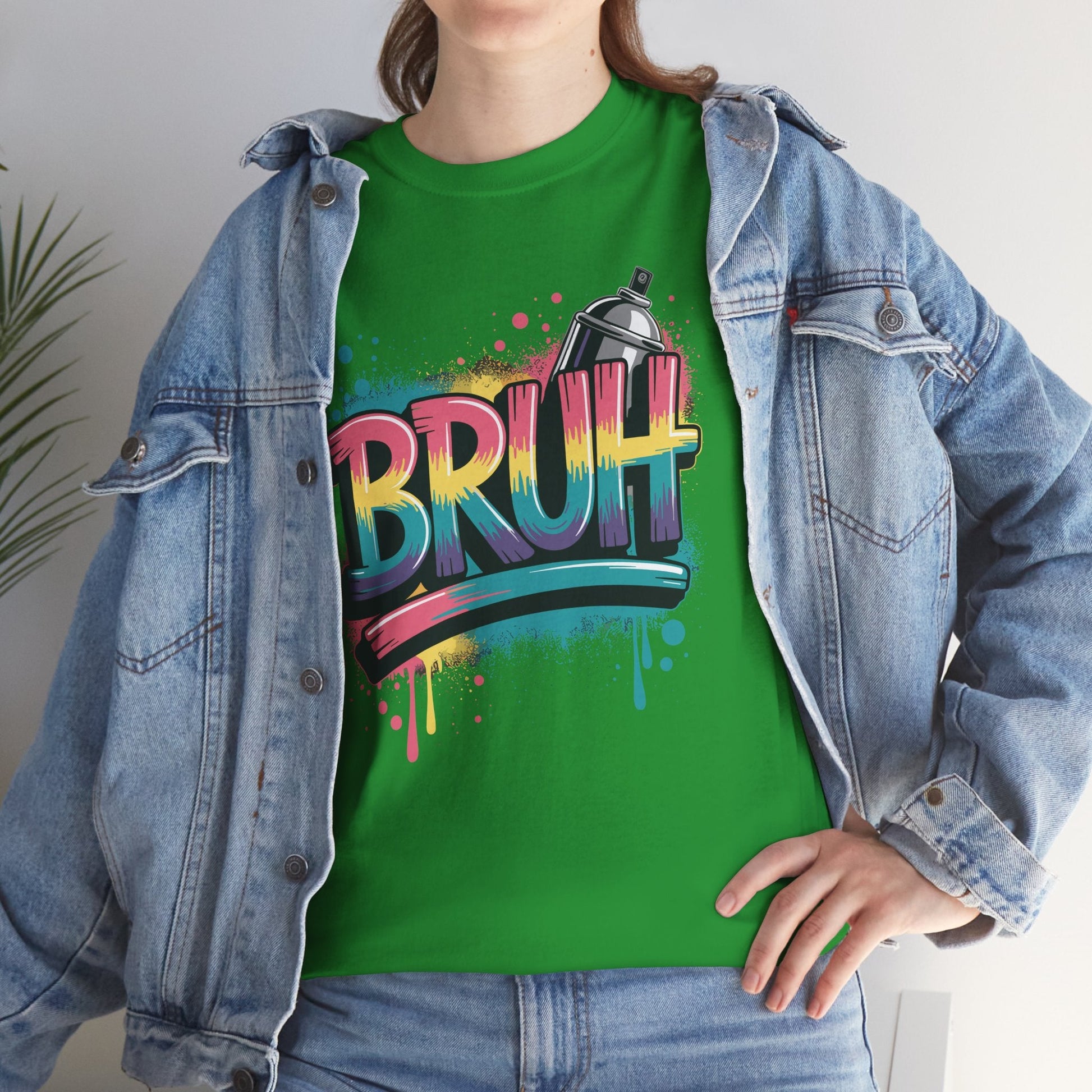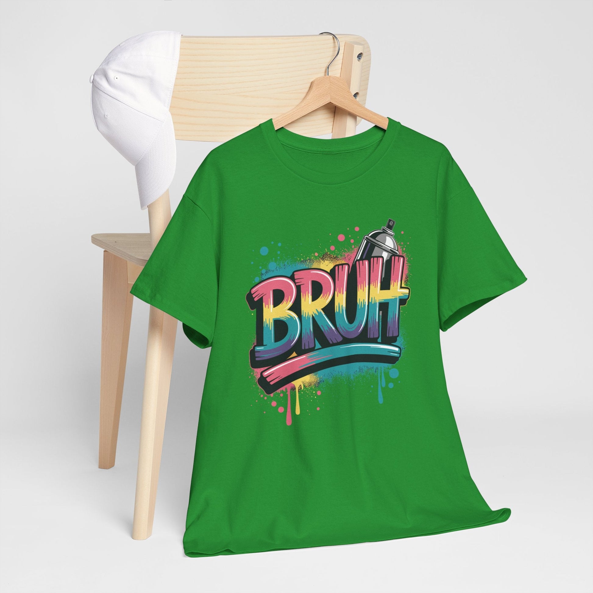 - Graffiti-Style “Bruh” Graphic: Bold, colorful street art design that pops with personality—ideal for meme lovers, skaters, and anyone fluent in Gen Z humor.