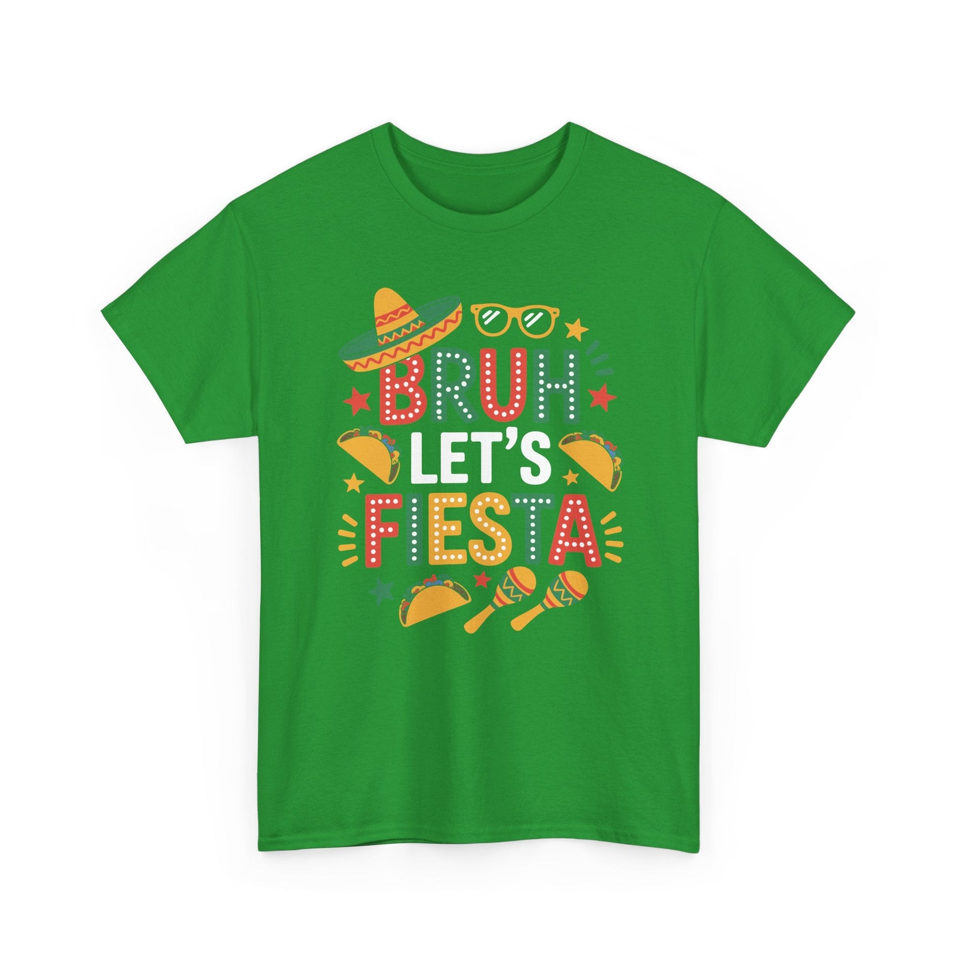 This T-Shirt is perfect for those looking to celebrate Cinco De Mayo with a festive 'Bruh Let's Fiesta' design. It is ideal for both men and women who want to showcase their party spirit. The classic fit and crew neckline make it versatile for casual or semi-formal occasions. This T-Shirt is made with medium fabric that is sustainable and highly durable, ensuring year-round comfort.