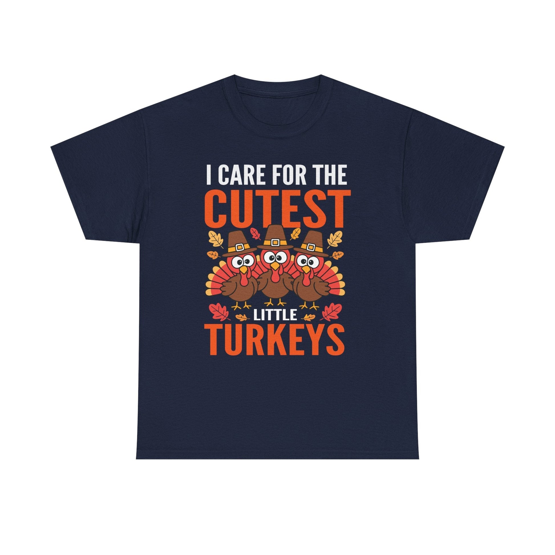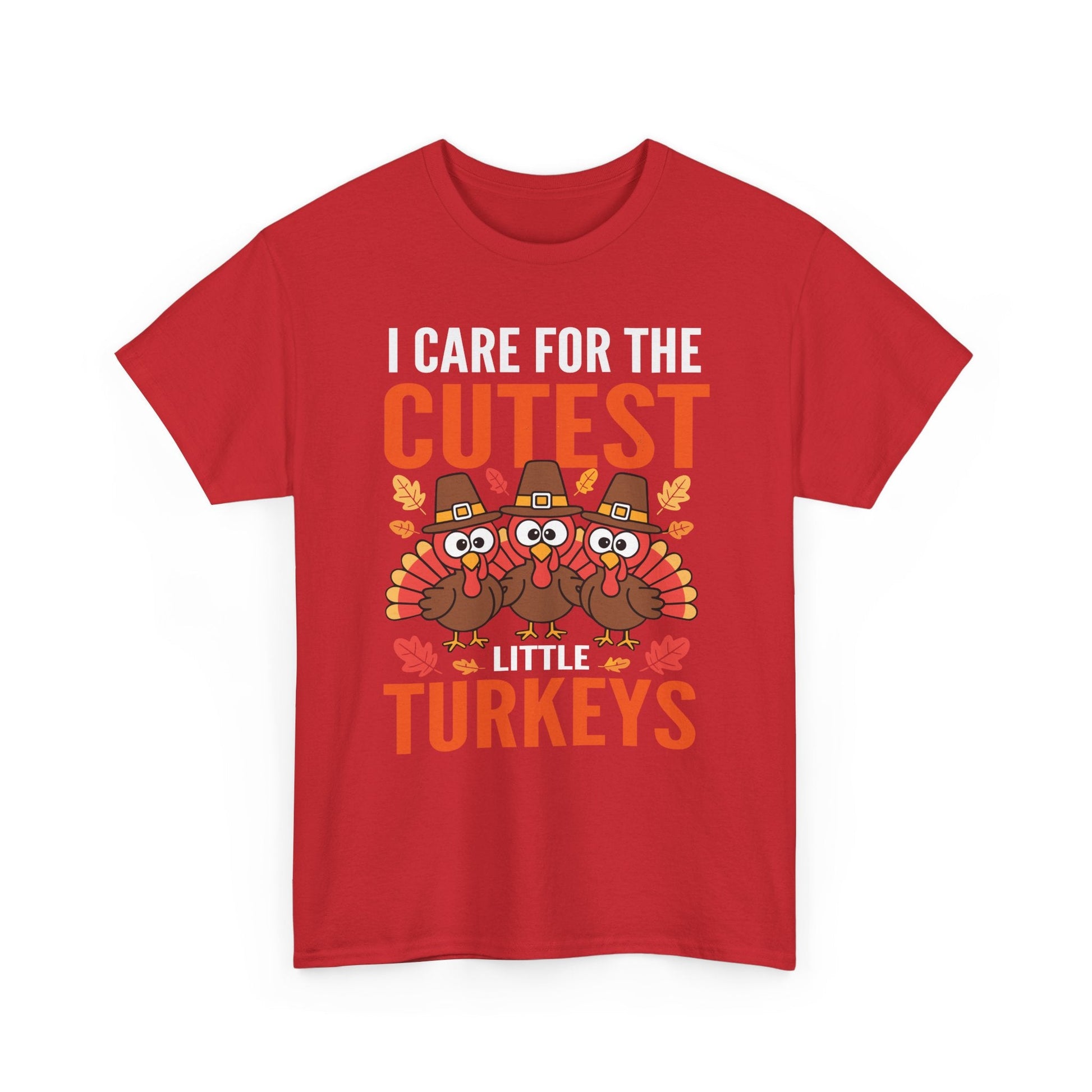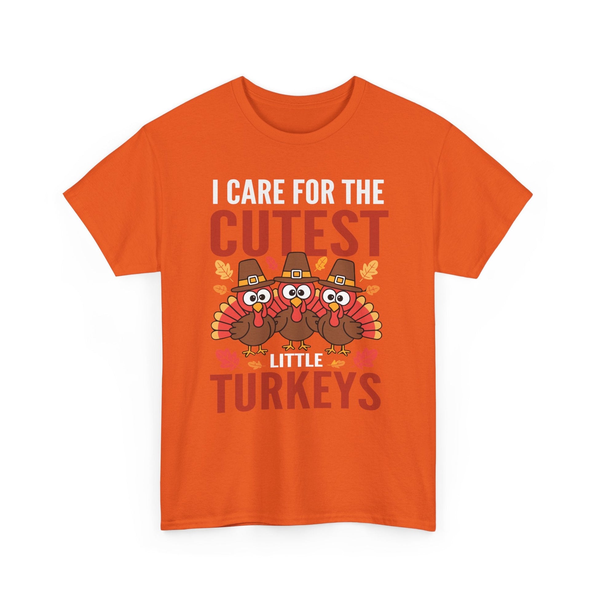 This Care For Little Turkeys Nurse Fall Thanksgiving Tee is a must-have for healthcare professionals looking to celebrate the holiday season in style. The comfortable fit and festive design make it perfect for wearing to work or casual gatherings during Thanksgiving. Ideal for adults looking for a fun and unique shirt to add to their fall wardrobe.