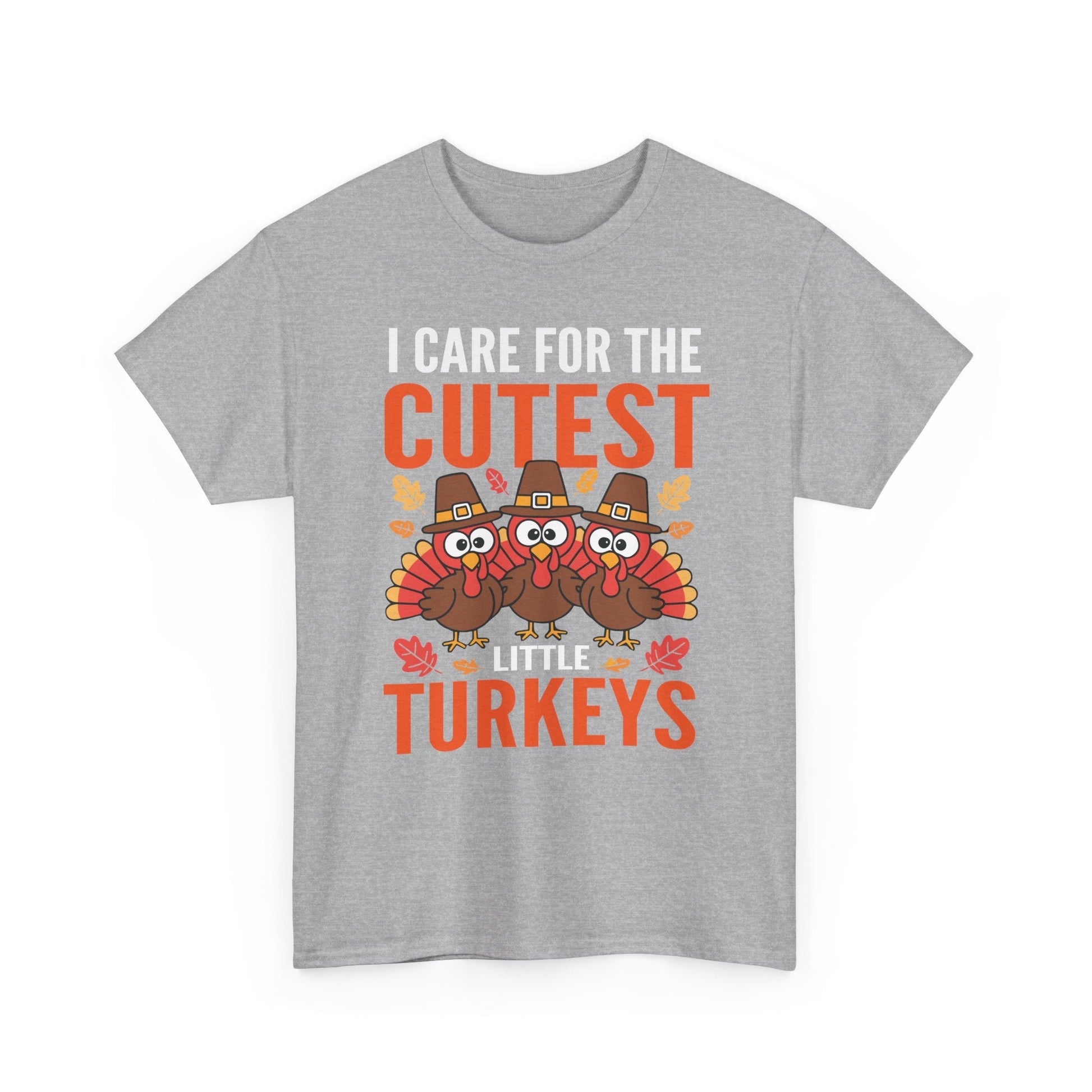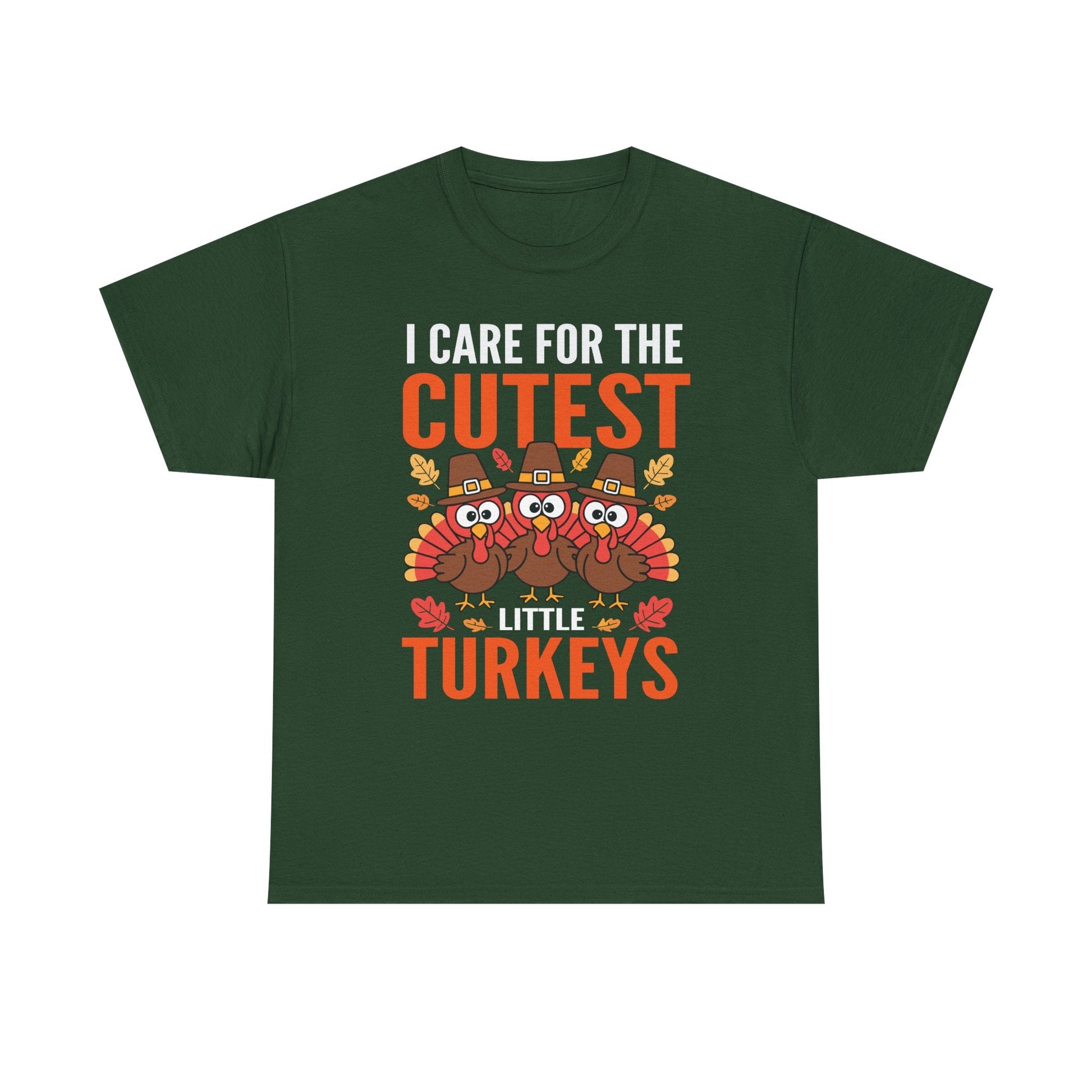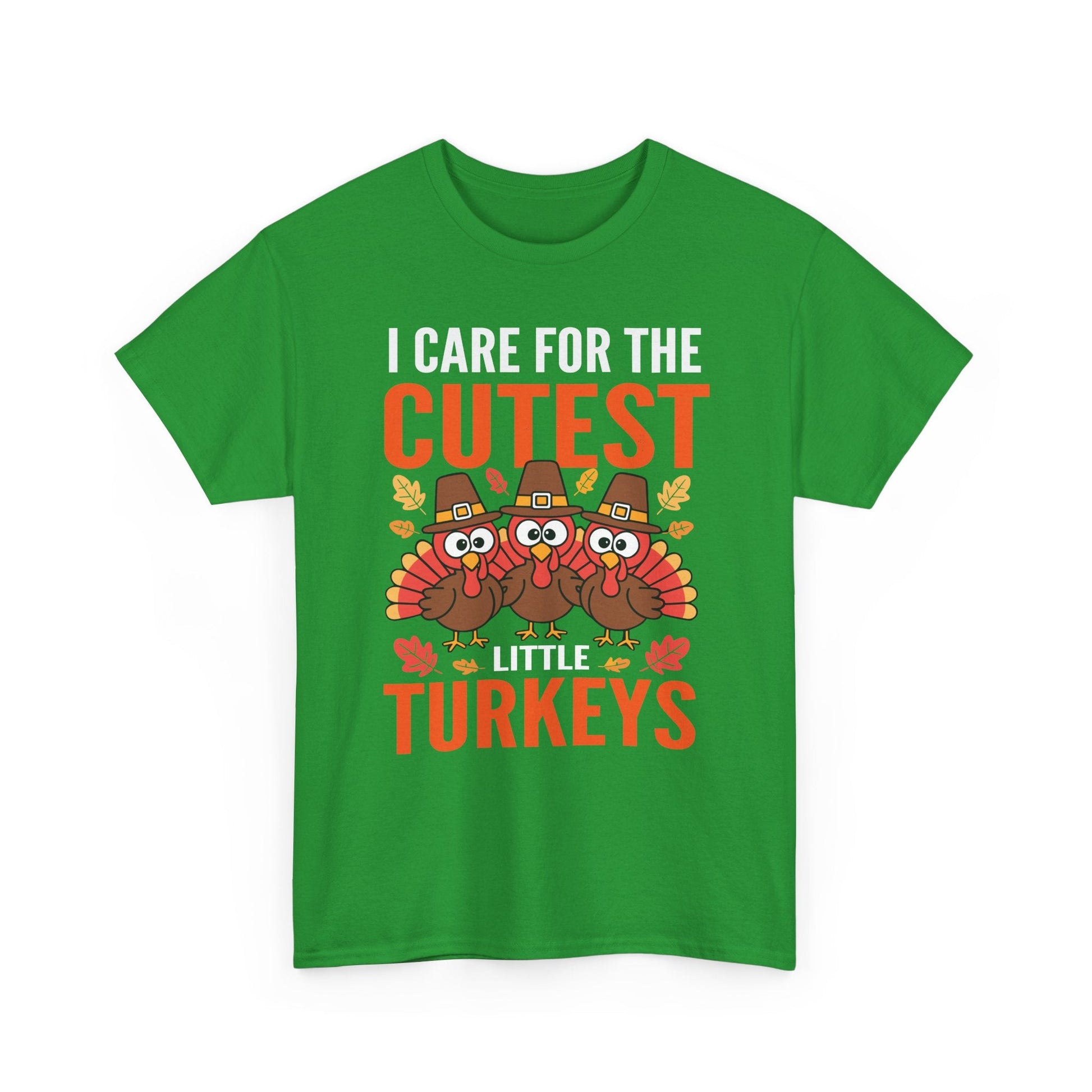 This Care For Little Turkeys Nurse Fall Thanksgiving Tee is a must-have for healthcare professionals looking to celebrate the holiday season in style. The comfortable fit and festive design make it perfect for wearing to work or casual gatherings during Thanksgiving. Ideal for adults looking for a fun and unique shirt to add to their fall wardrobe.