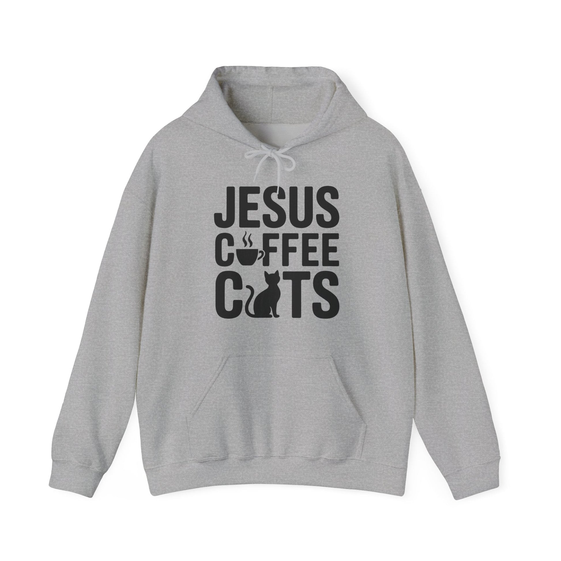 This Christian Jesus, Coffee, Cats themed hoodie is perfect for religious cat lovers and caffeine enthusiasts. The cozy and warm hoodie features a kangaroo pouch pocket, adjustable hood, and knitted in one piece without side seams. Made from a blend of 50% cotton and 50% polyester, it is ideal for printing and offers a scratch-free wearing experience. Suitable for adults, this hoodie is a great addition to your wardrobe for casual wear or as a gift for Cat Day or Christmas.