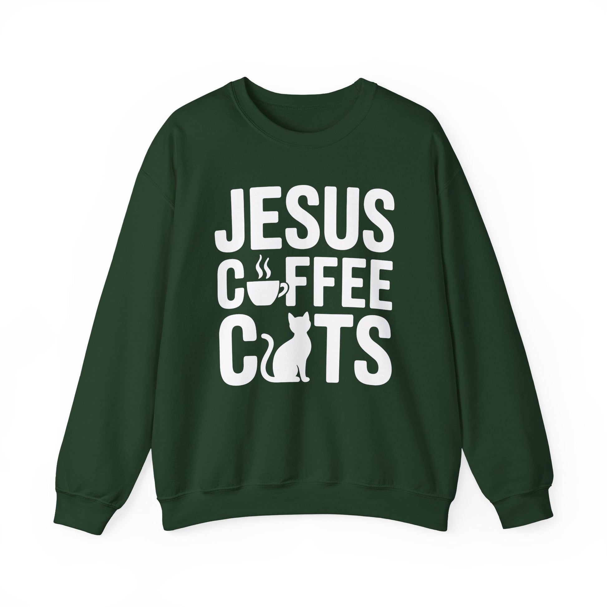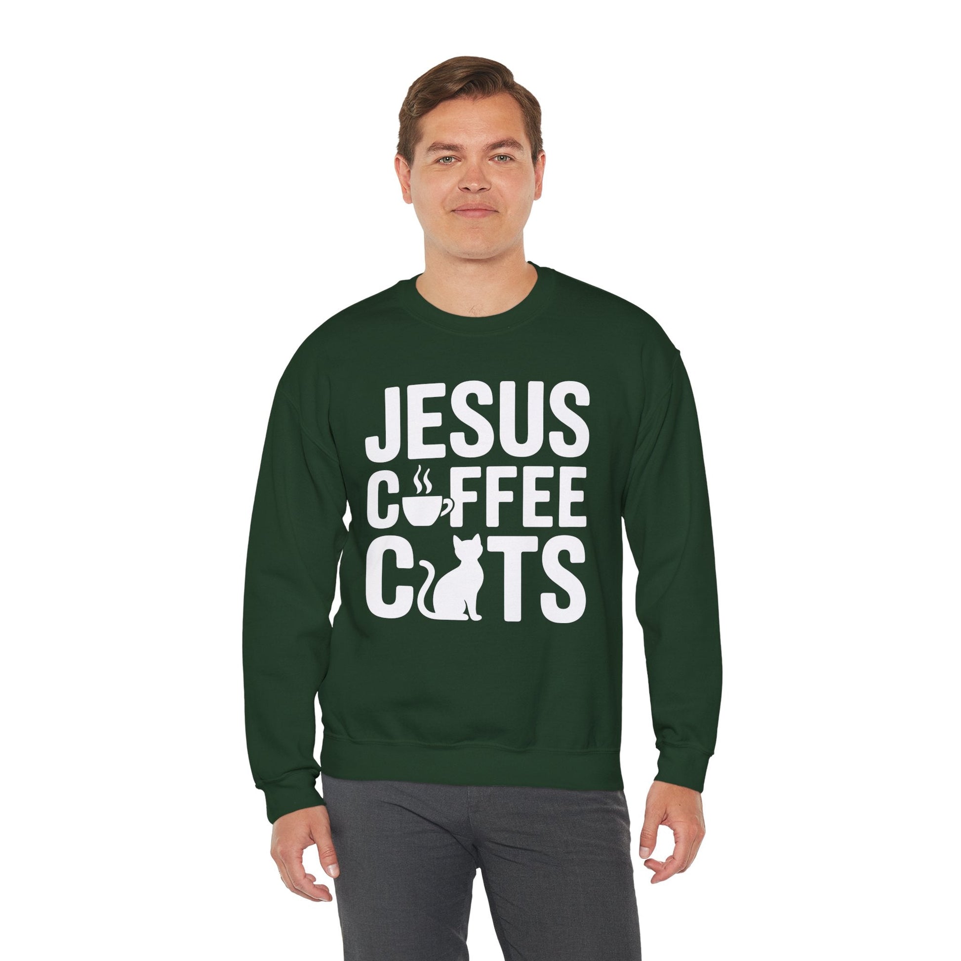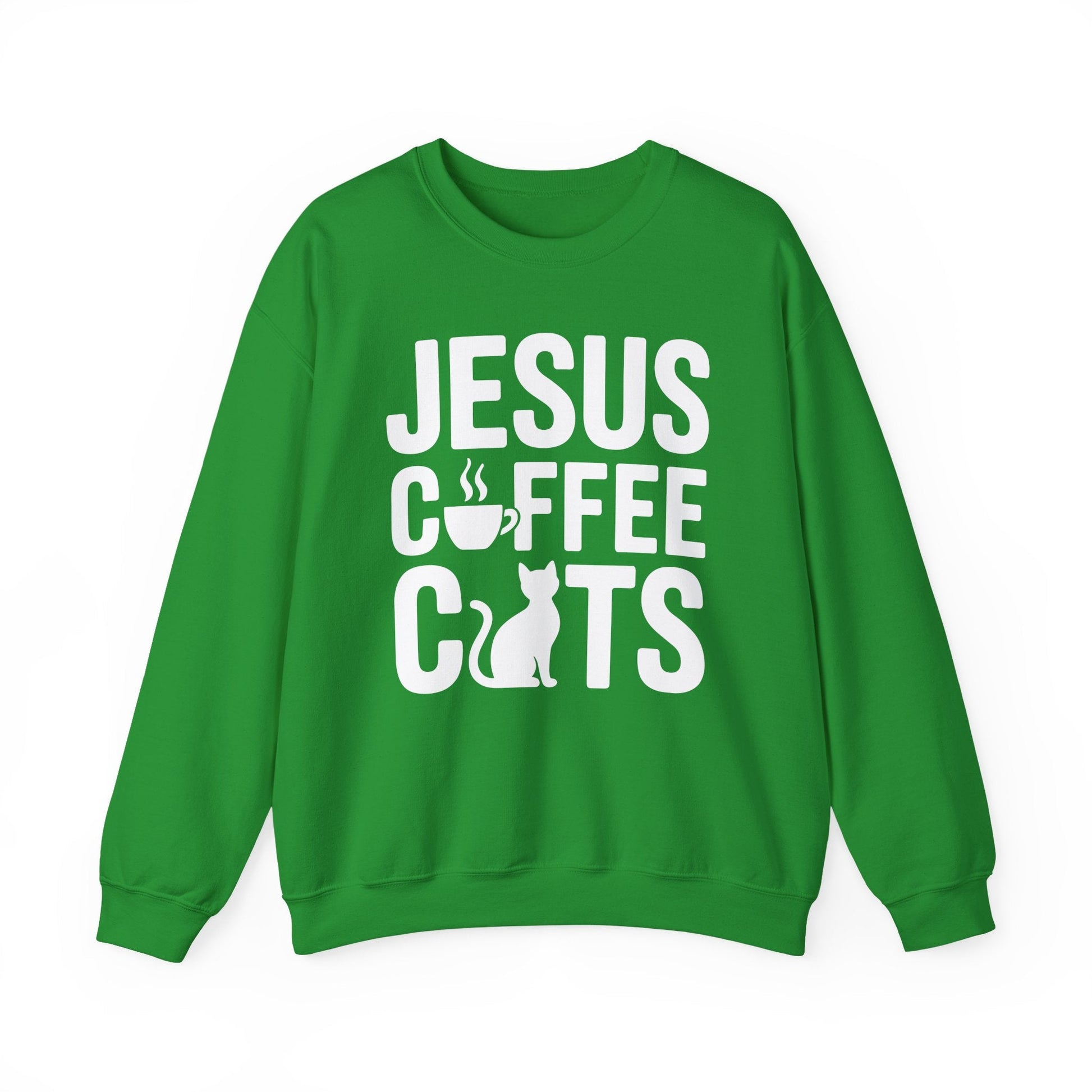 Christian Jesus, Coffee, Cats - Religous Cat Caffeine Lover Sweatshirt