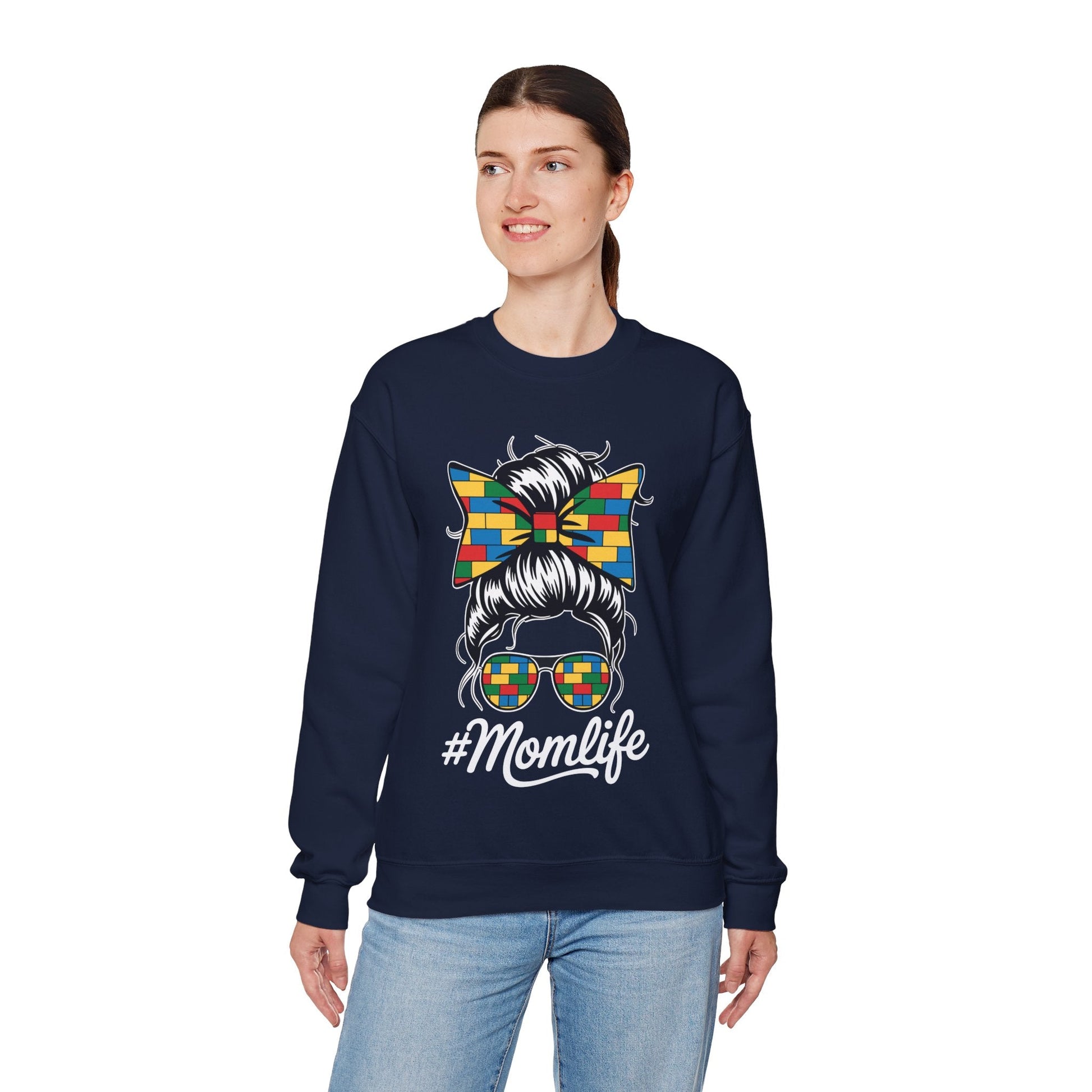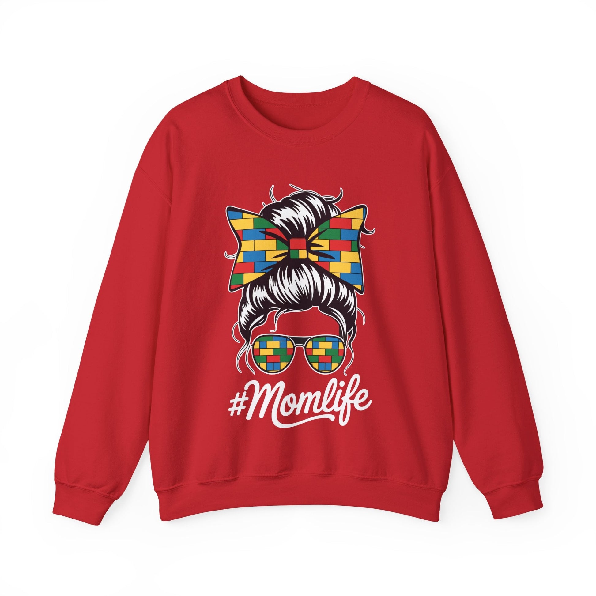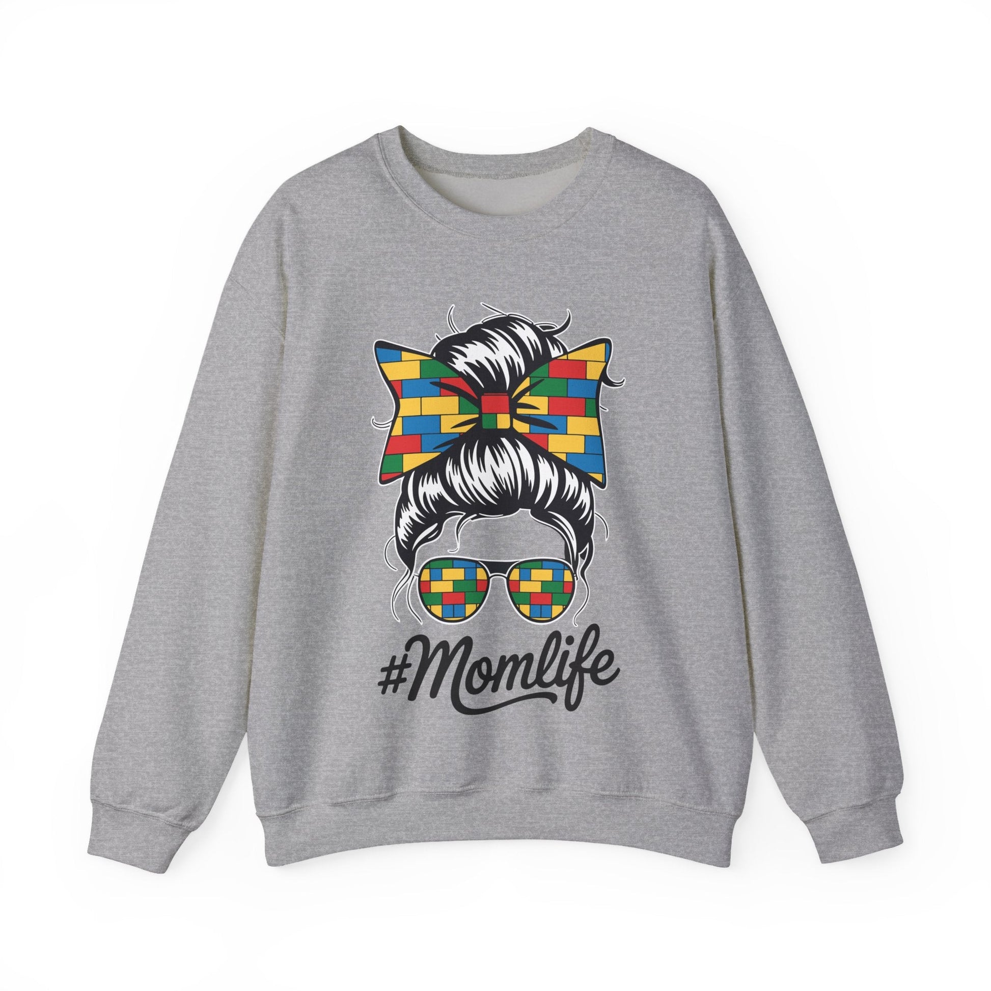 Building Block Messy Bun Mom Life Master Builder Mothers Day Sweatshirt