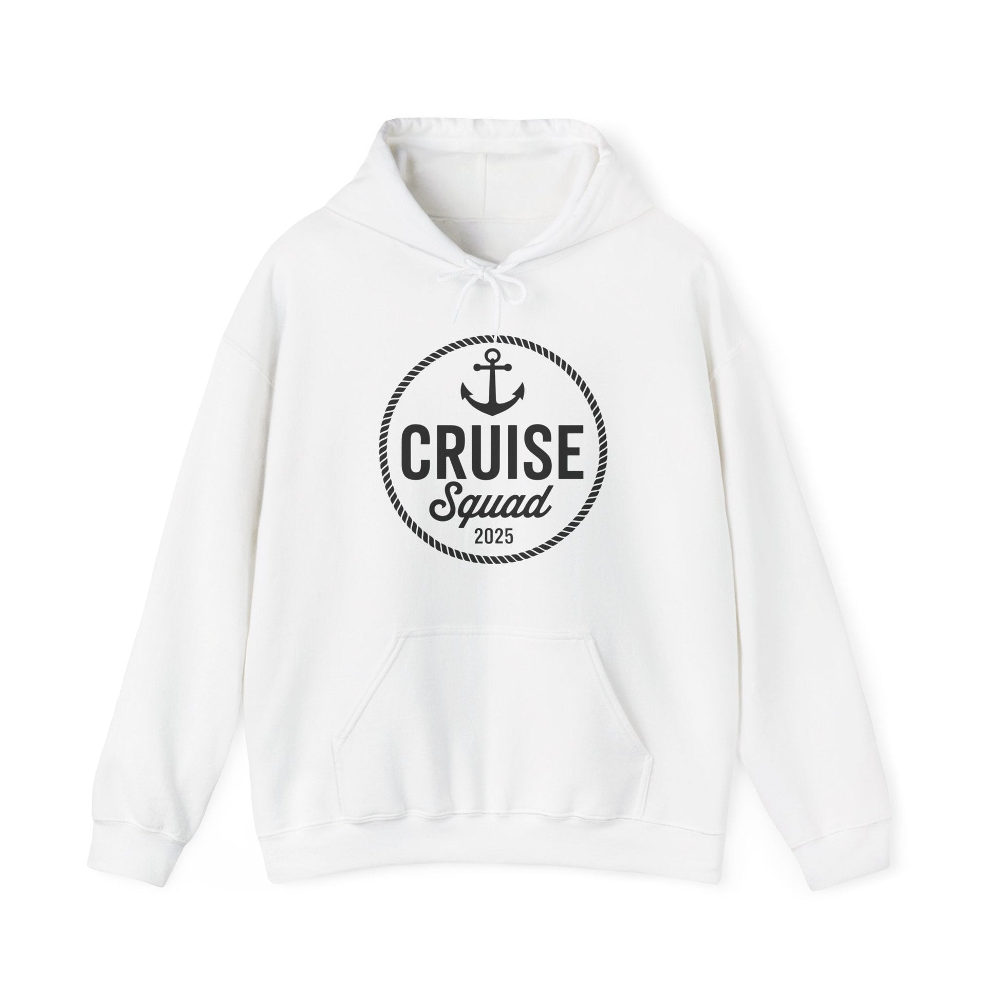Stay cozy and stylish with this Family Cruise Squad 2025 Summer Vacation Matching Hoodie. Perfect for a family vacation or cruise, this unisex hoodie features a kangaroo pouch pocket, adjustable hood, and comfortable cotton-polyester blend. Ideal for adults looking for a warm and trendy outfit for their summer getaway.