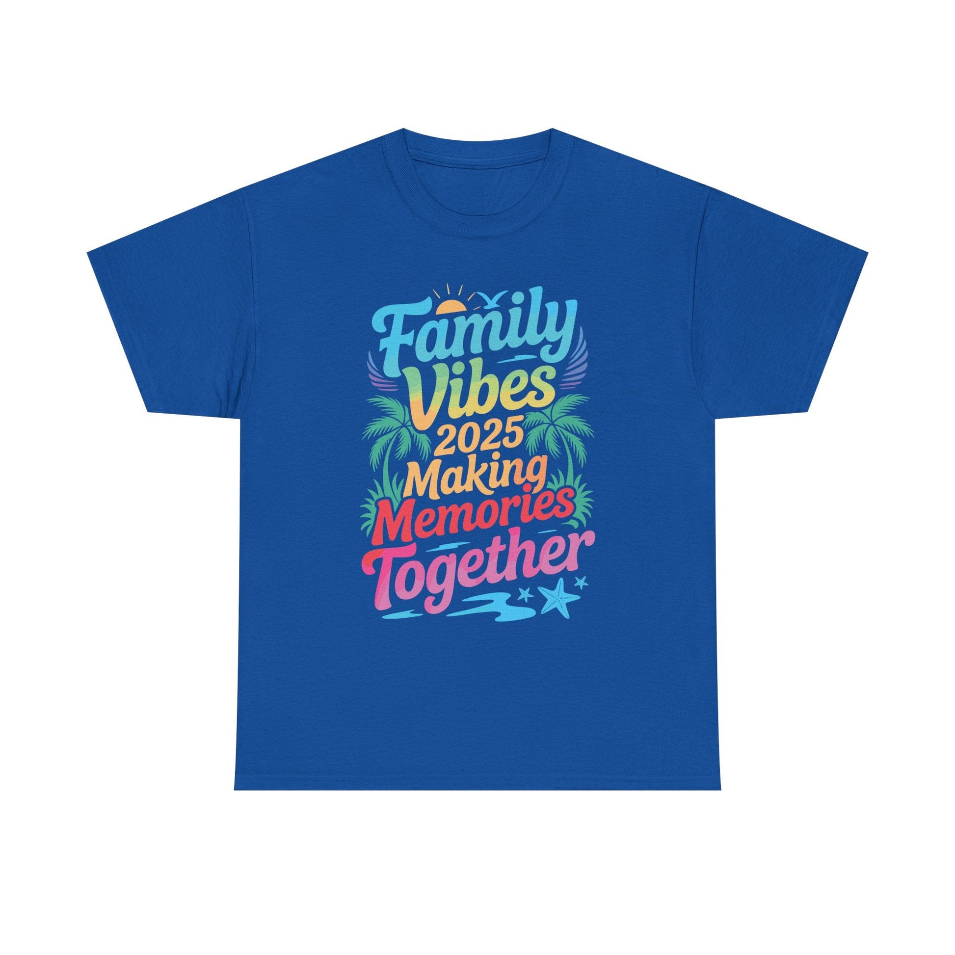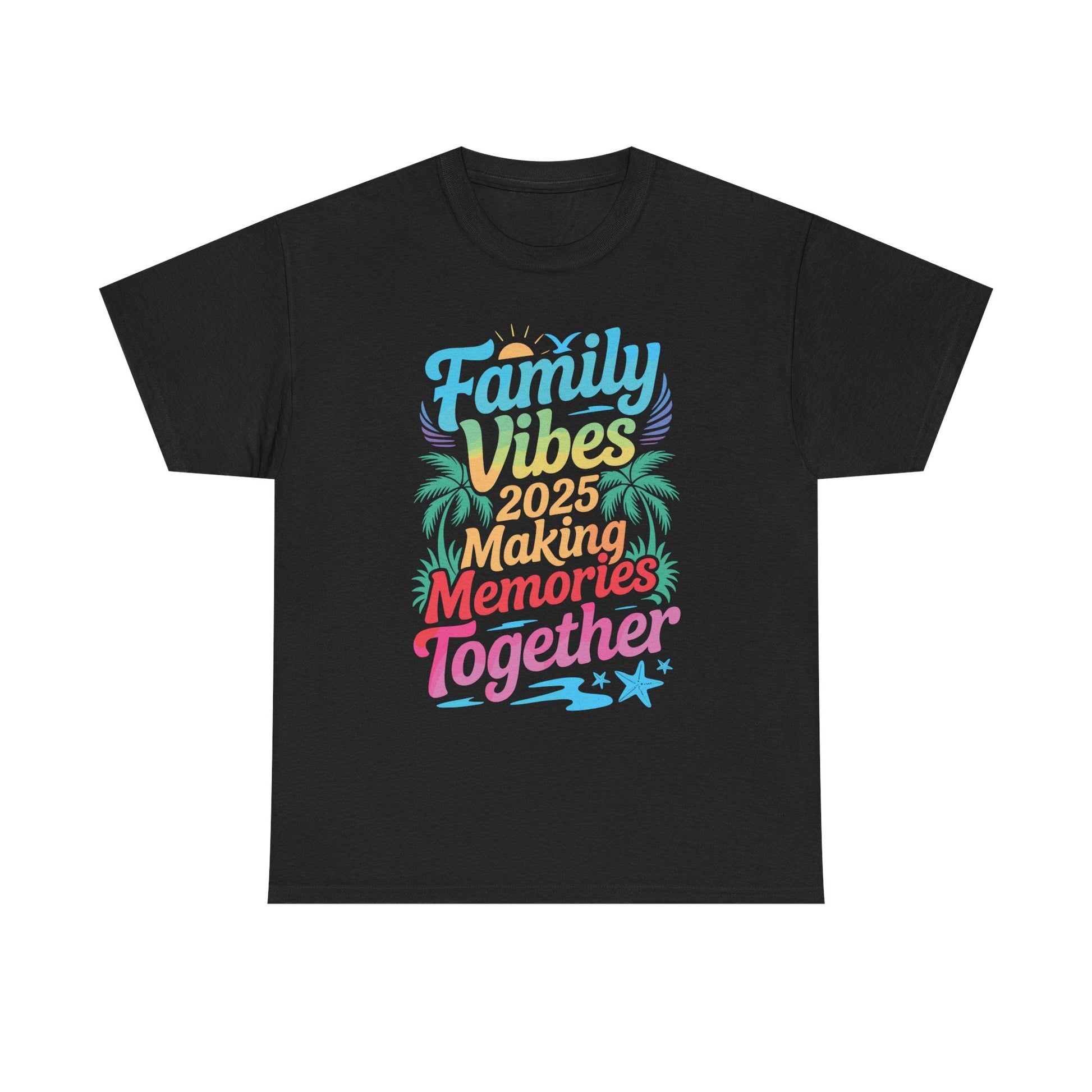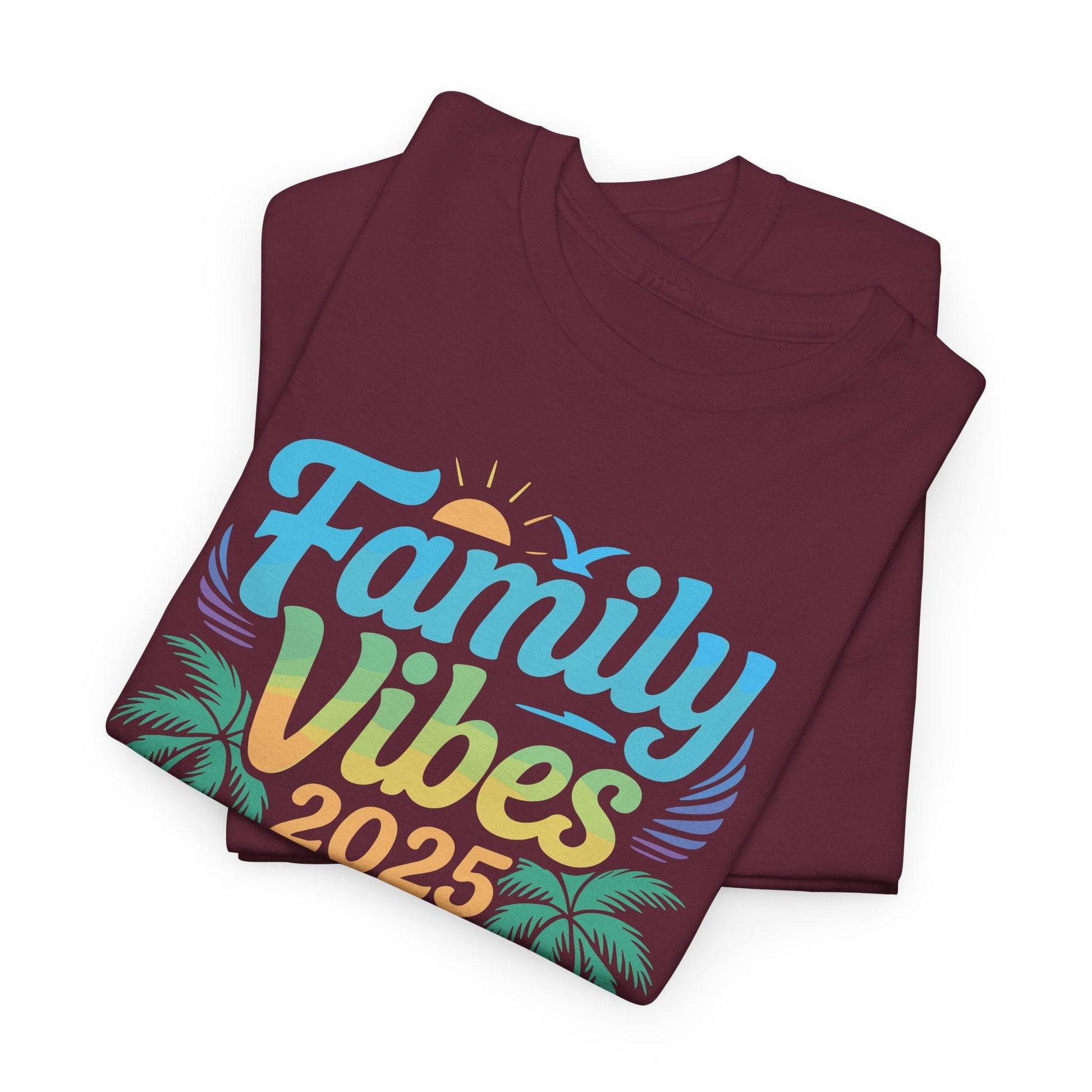 Eye-Catching “Family 2025 Vibes” Design That Pops: Featuring playful fonts and vacation-themed graphics, it’s a conversation starter and a keepsake rolled into one.