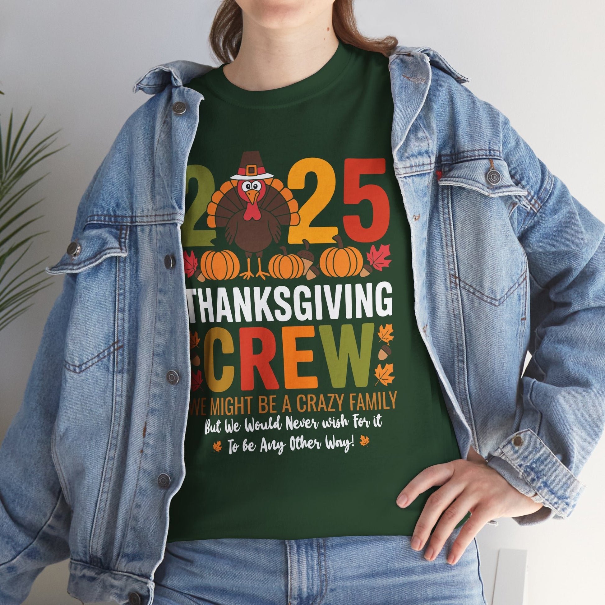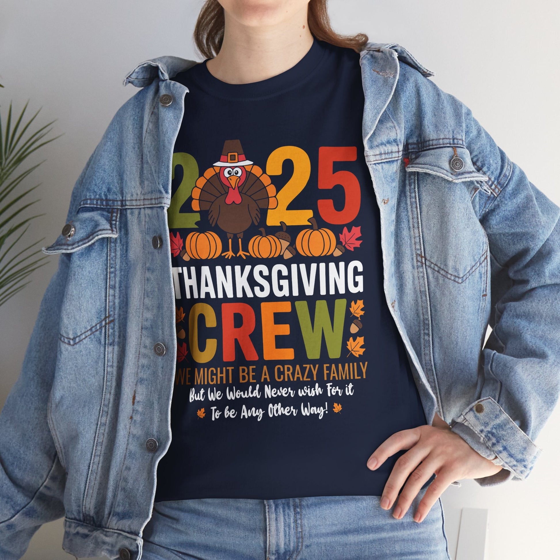 This Family Thanksgiving 2025 Thanksgiving Crew Turkey Matching T-Shirt gives off a festive and cozy vibe, perfect for the Thanksgiving celebration. It is relevant to families looking to match outfits for the holiday gathering.