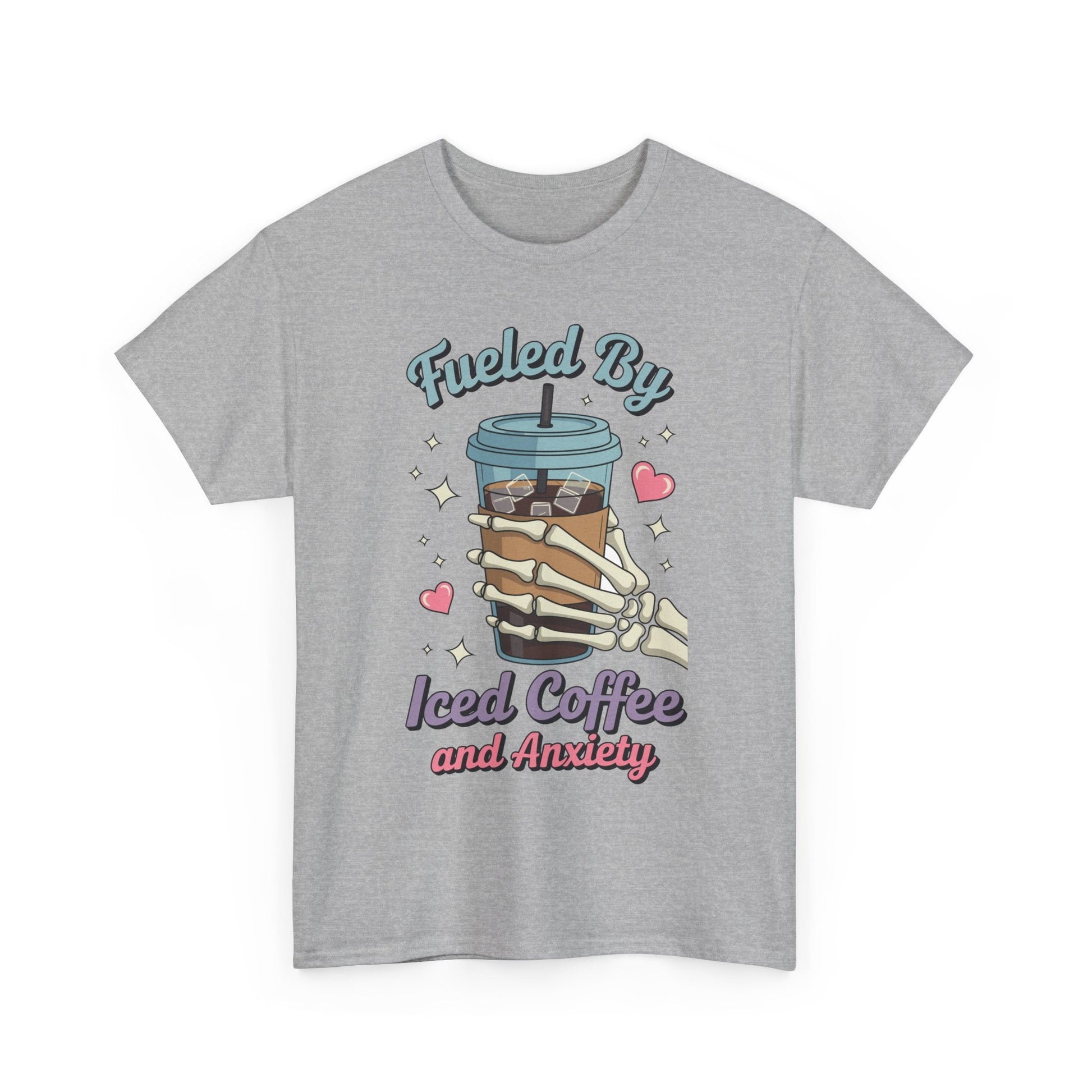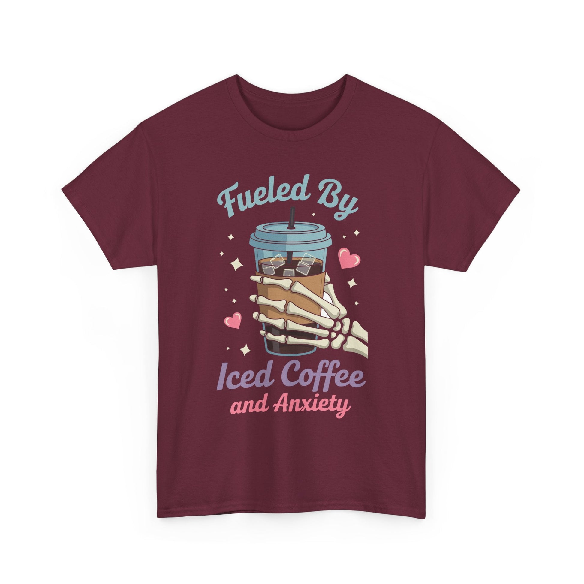 Fueled by Iced Coffee and Anxiety Funny Coffee Lover T-Shirt