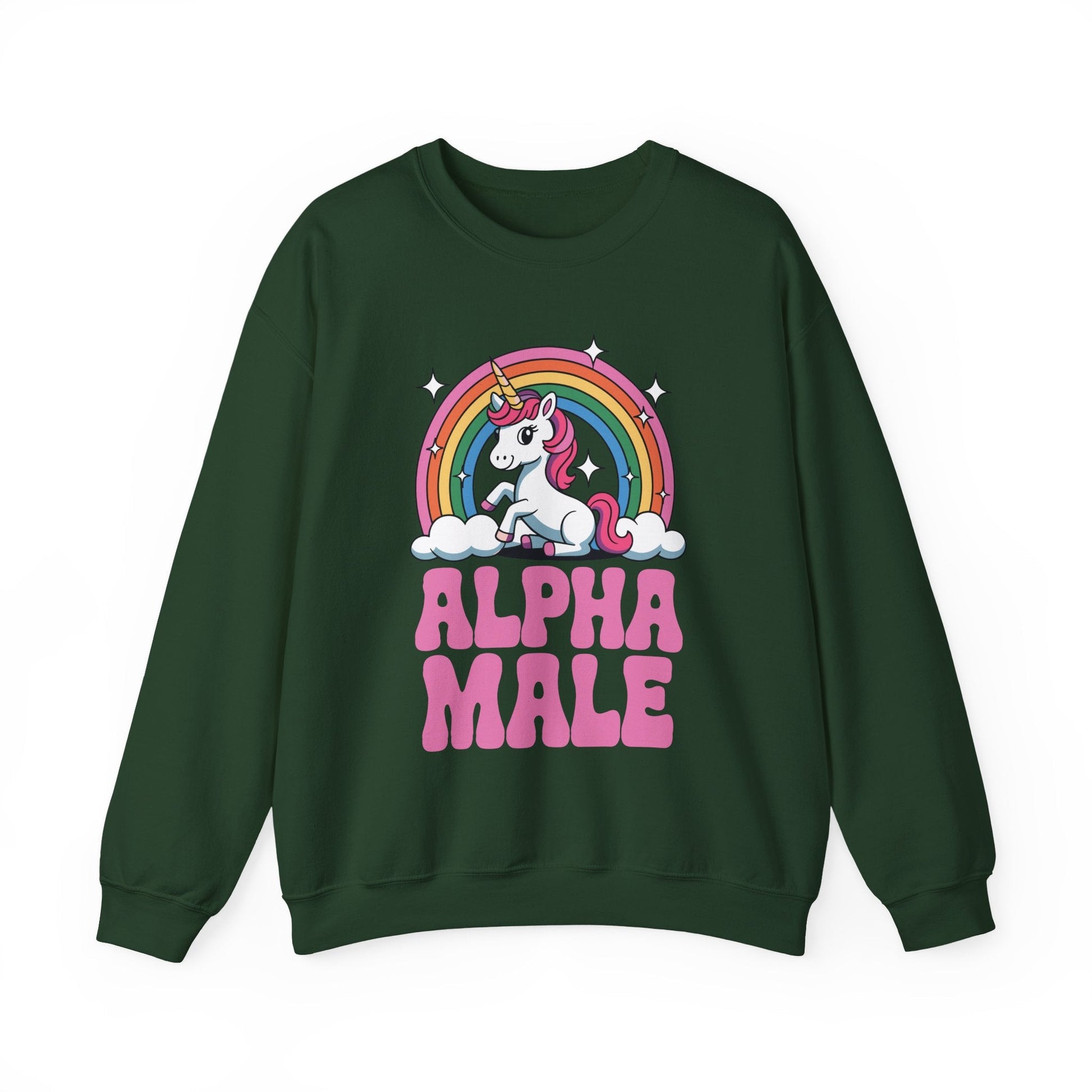 - Features a bold unicorn graphic with “Alpha Male” text that flips macho stereotypes into hilarious, ironic fashion