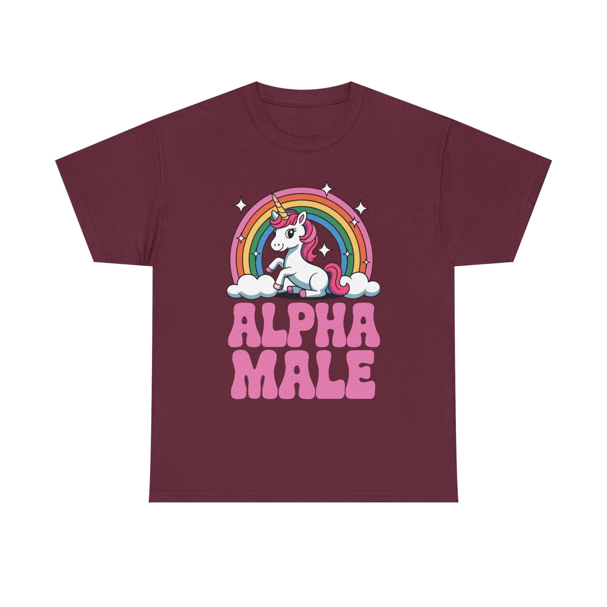 Cringe-Worthy “Alpha Male Unicorn” Design: Features a mythical beast with a rainbow horn and bold text that mocks macho stereotypes with playful sarcasm. Perfect for Gen Z, meme lovers, and anyone who lives for ironic fashion.