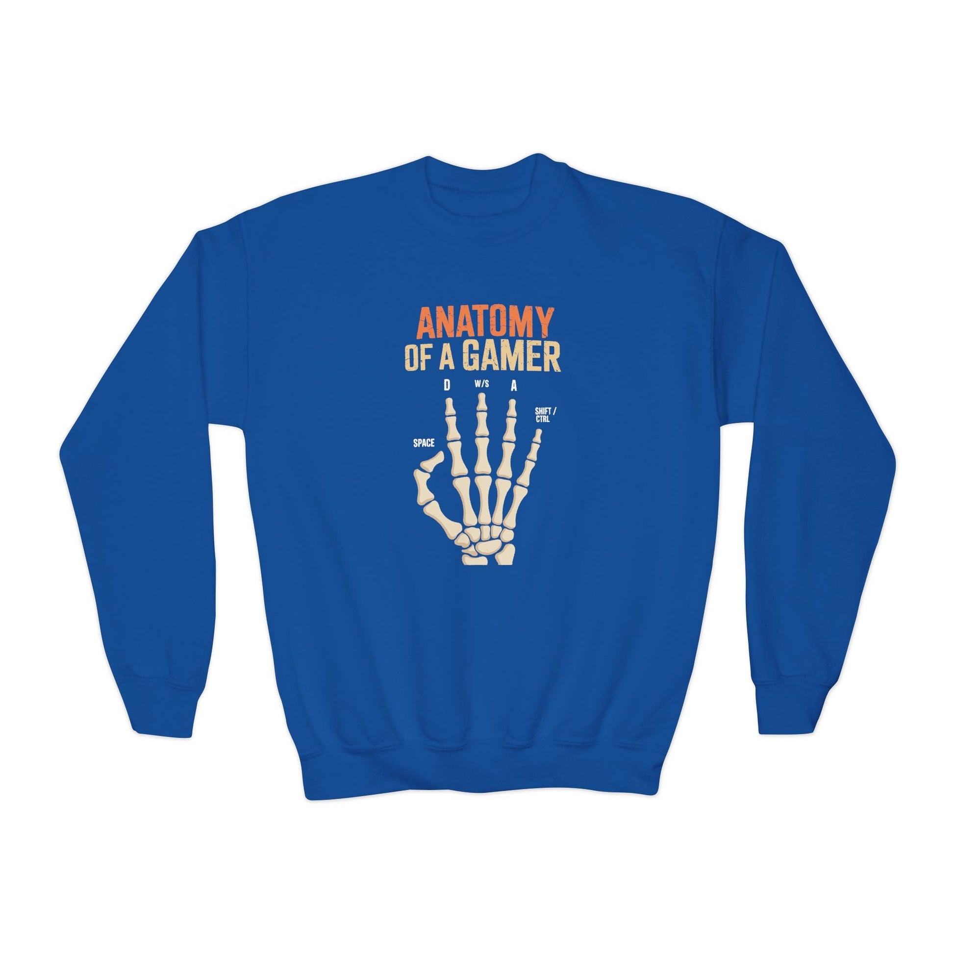 This Funny Anatomy Of A Gamer Skeleton Hand design sweatshirt is perfect for boys, kids, and teens who love gaming. It gives off a fun and playful vibe, making it a great addition to any young gamer's wardrobe. Ideal for birthdays, holidays, and everyday wear.
