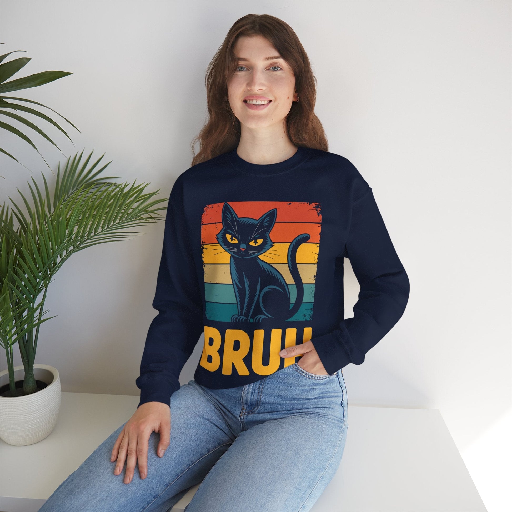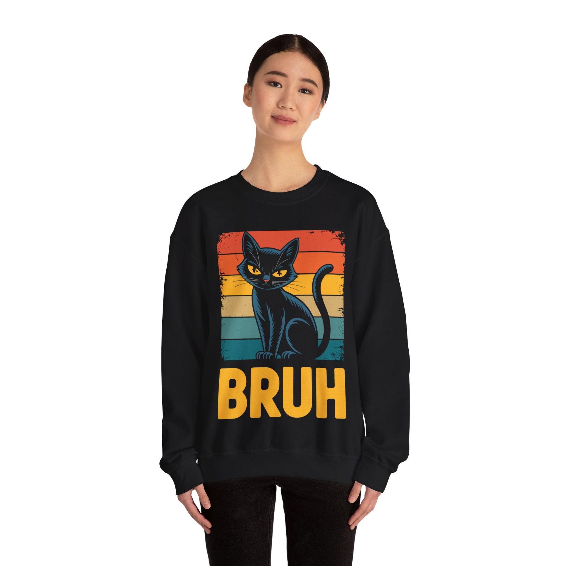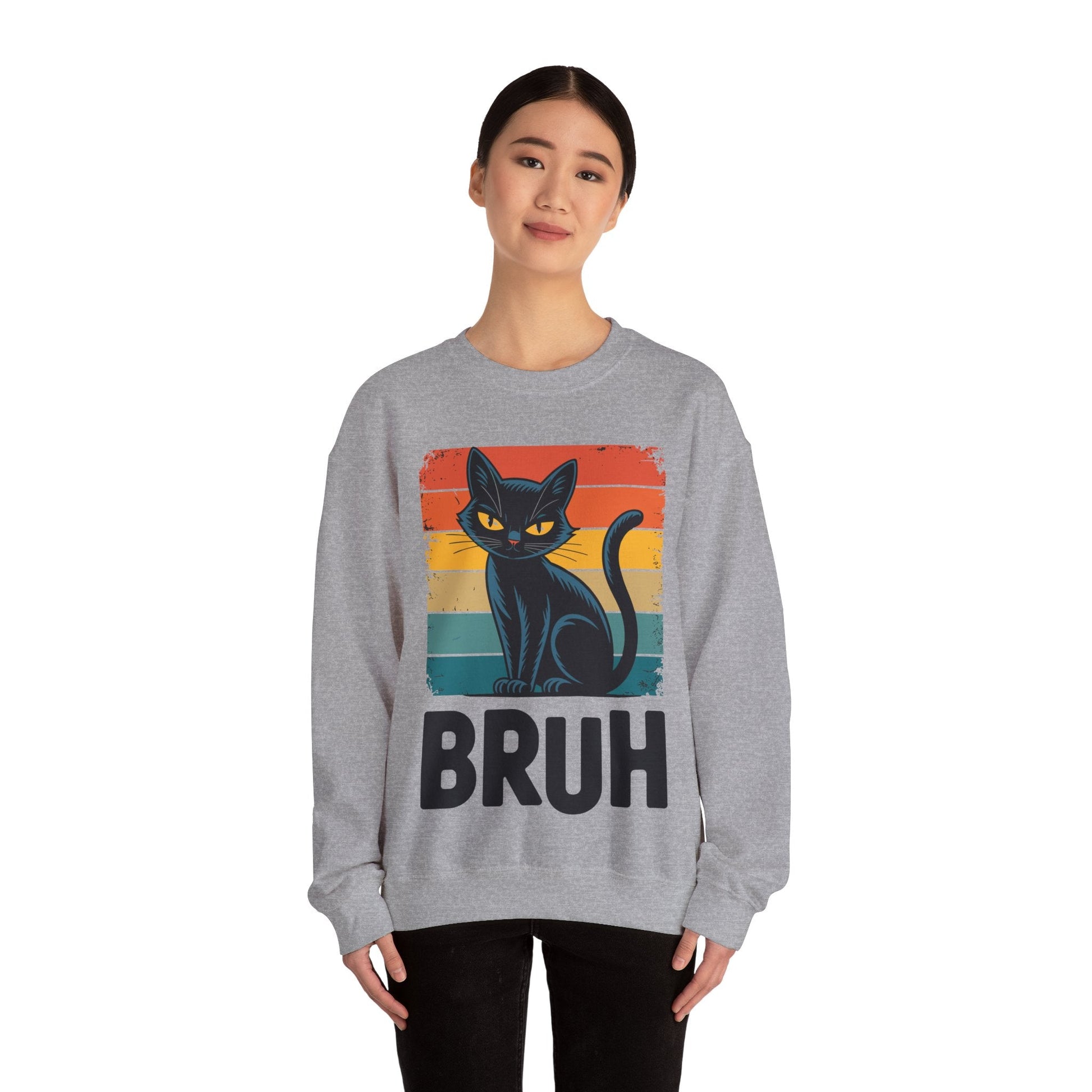 Ever feel like your cat silently judges your life choices with one word: “Bruh”? This sweatshirt captures that iconic feline attitude in meme form. Whether you're a teen perfecting your eye-roll, a cat-loving adult fluent in sarcasm, or someone who just wants to stay warm while being hilarious—this pullover is your go-to for comfort and comic relief.