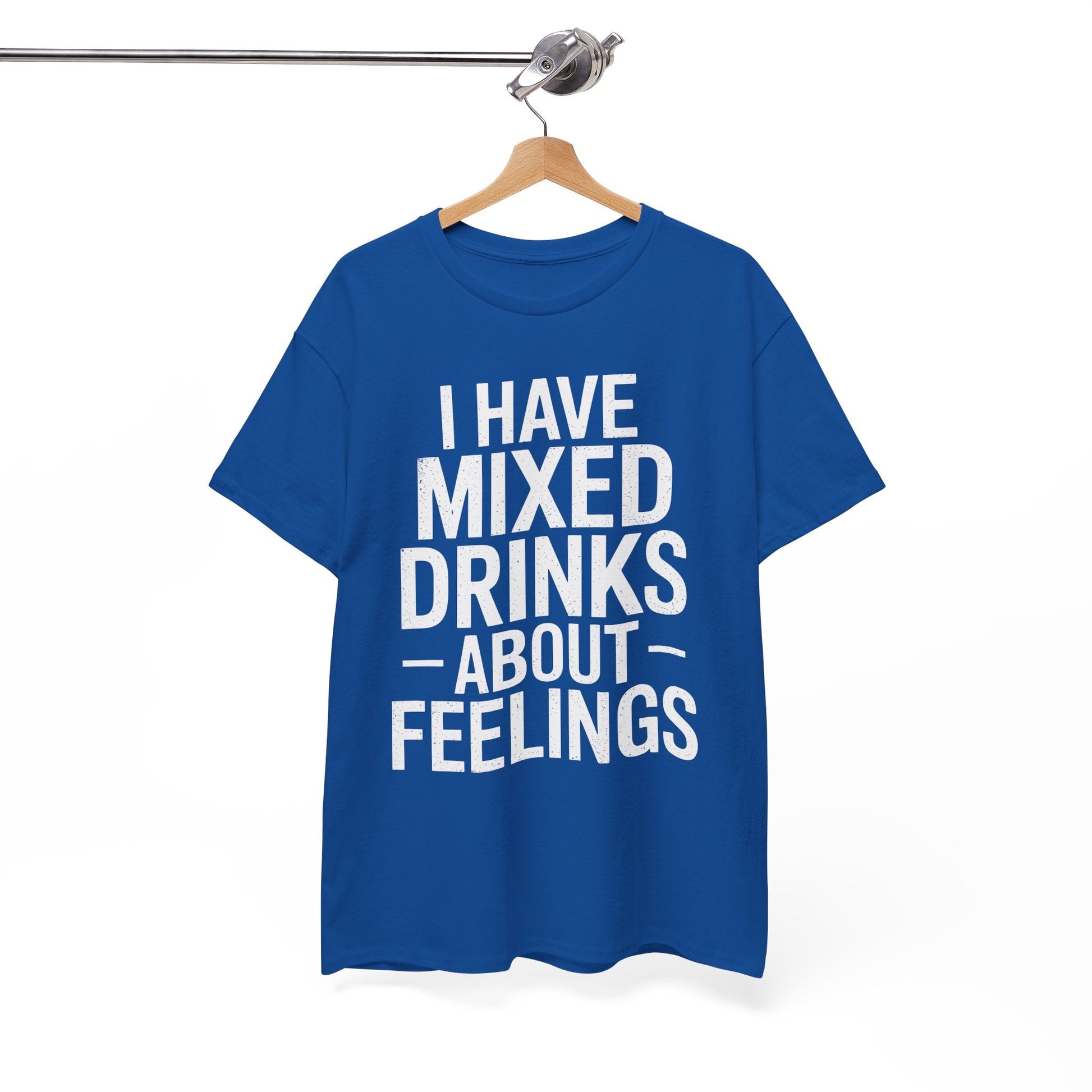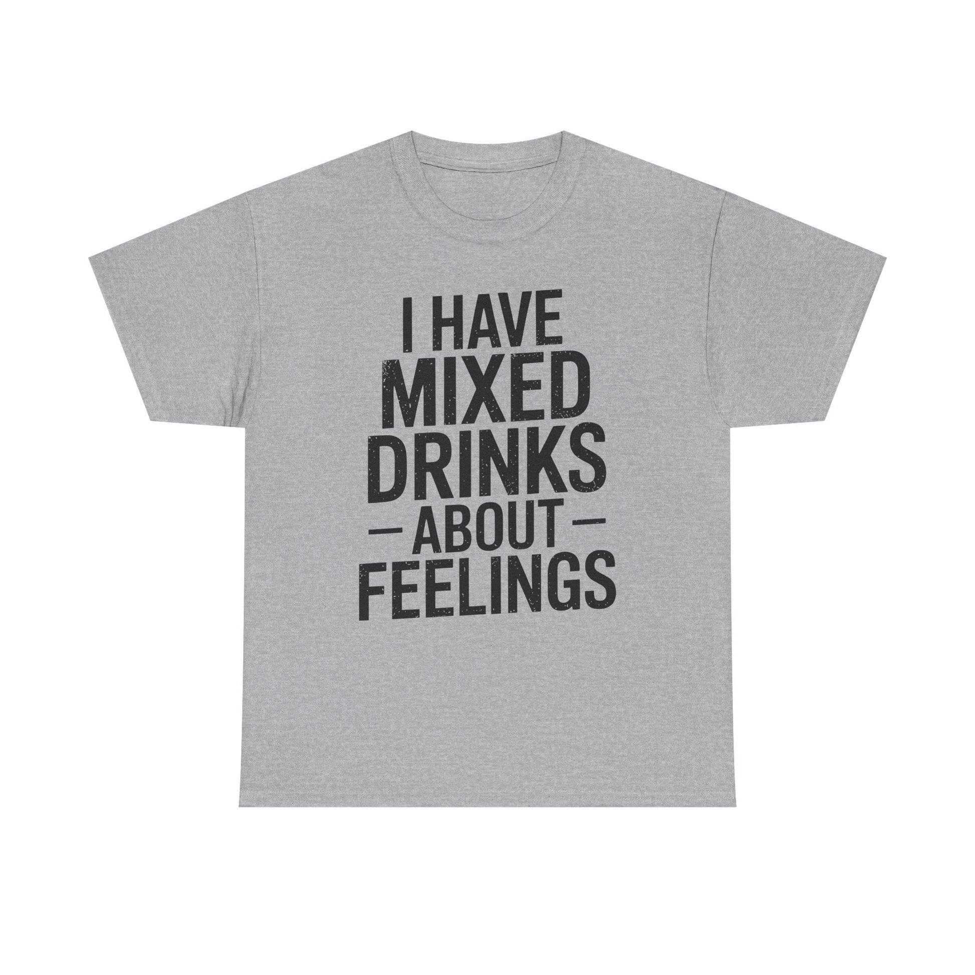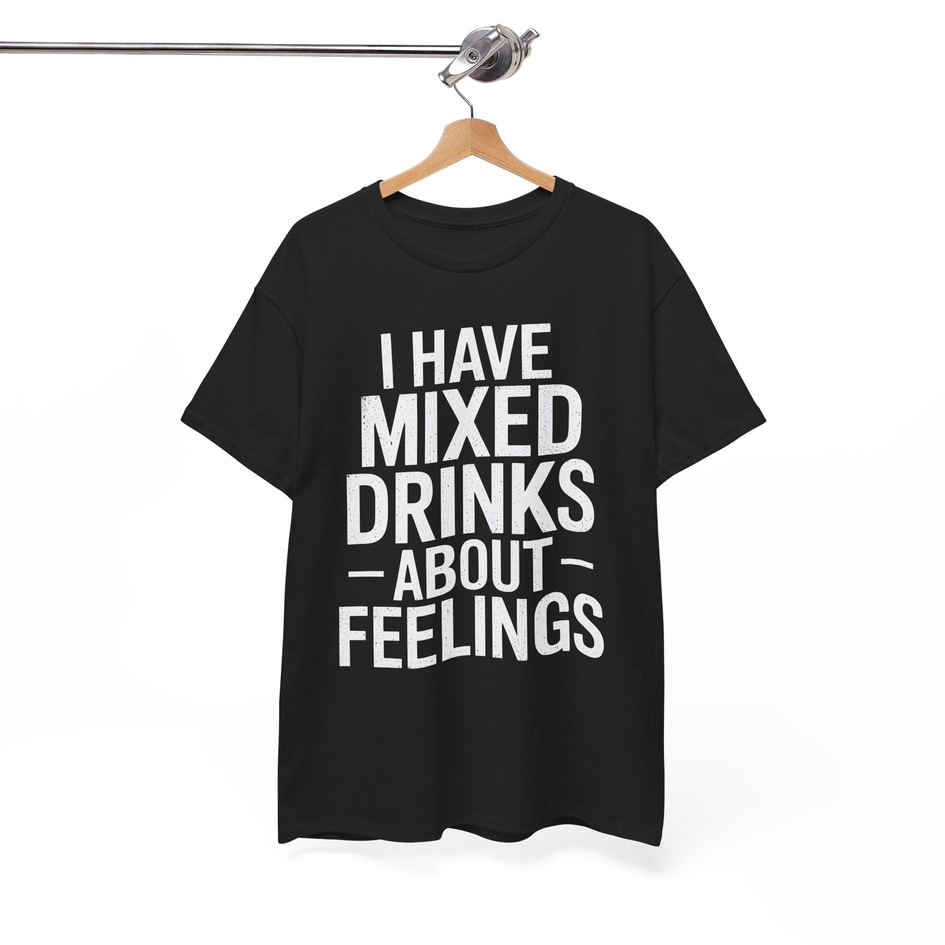 Ever feel like your emotions could use a splash of tequila? This “I Have Mixed Drinks About Feelings” t-shirt is the perfect blend of sarcasm and style for anyone who prefers cocktails over conversations. Whether you're heading to happy hour, lounging at home, or just trying to survive a Monday, this tee solves the problem of bland outfits with a punchline that’s guaranteed to get laughs and knowing nods.