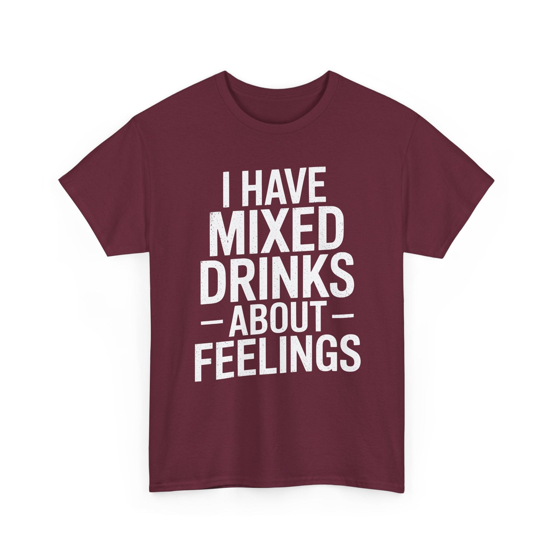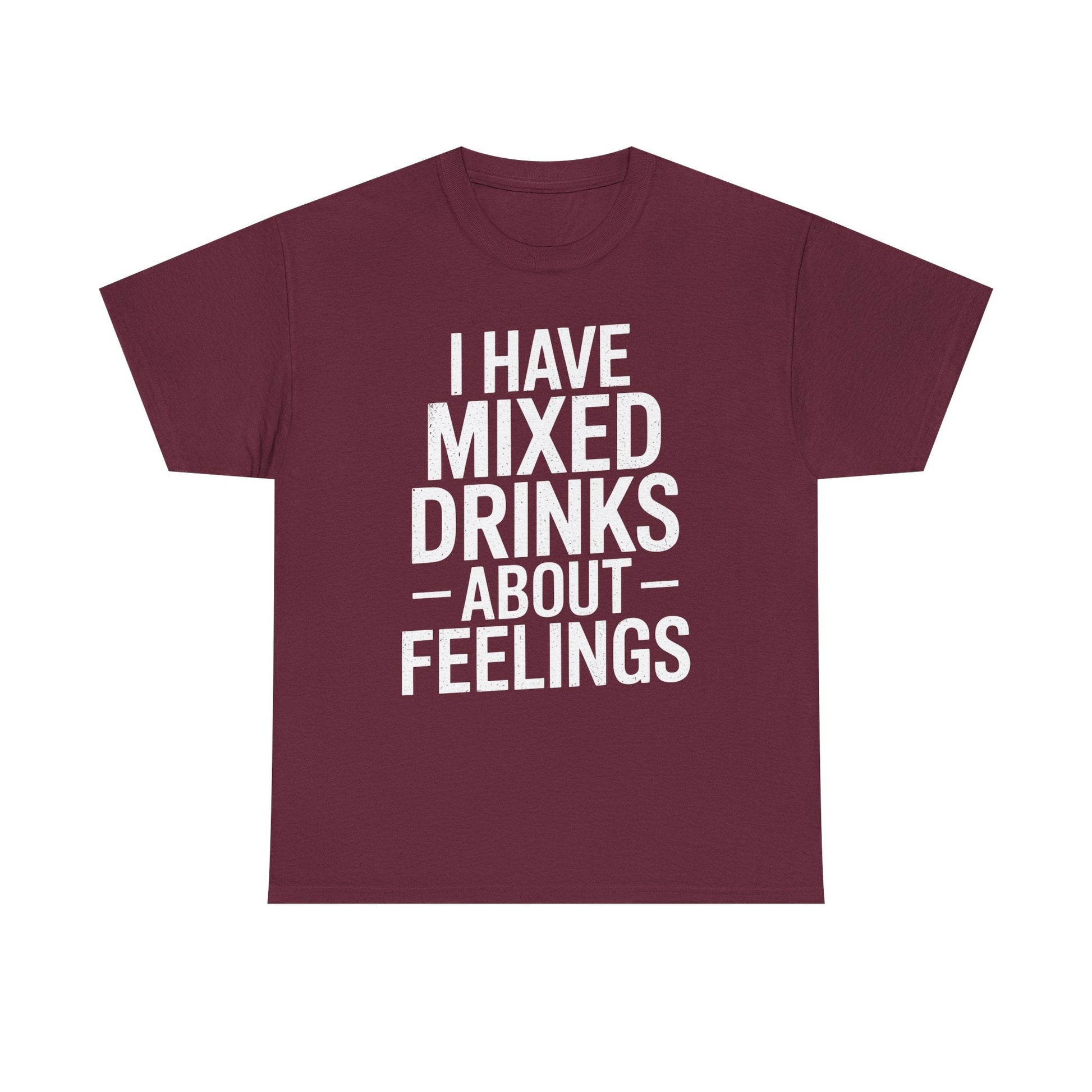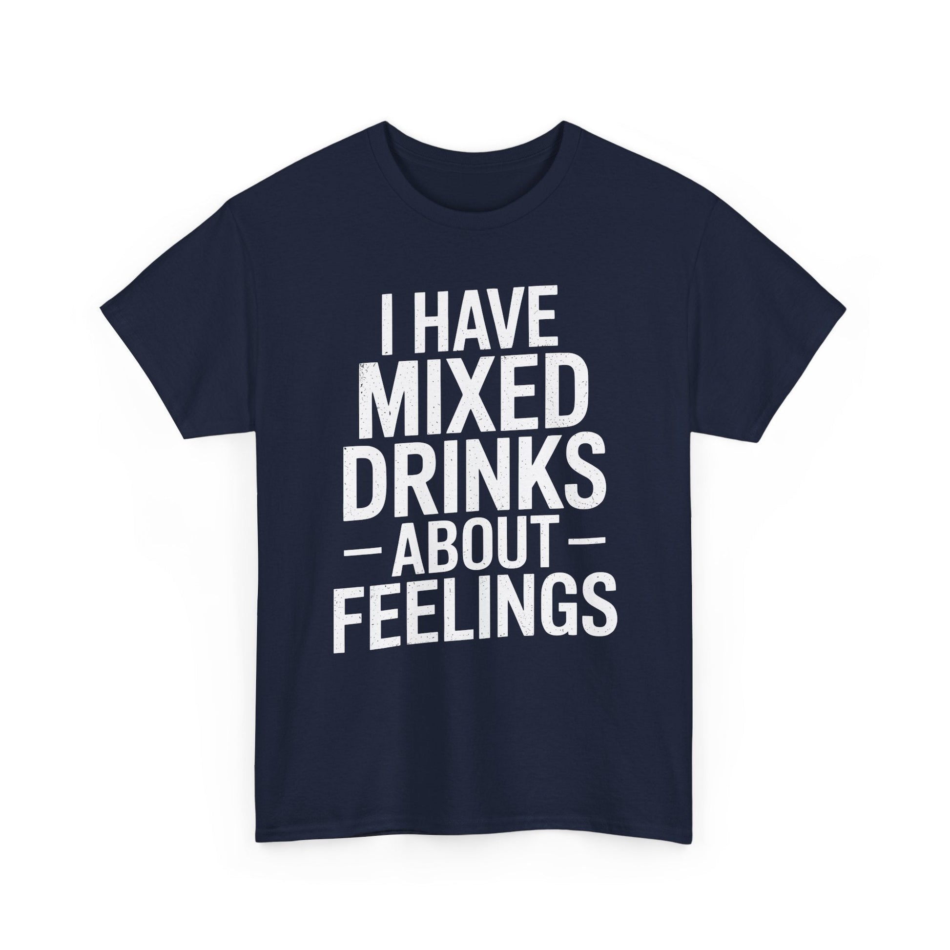Ever feel like your emotions could use a splash of tequila? This “I Have Mixed Drinks About Feelings” t-shirt is the perfect blend of sarcasm and style for anyone who prefers cocktails over conversations. Whether you're heading to happy hour, lounging at home, or just trying to survive a Monday, this tee solves the problem of bland outfits with a punchline that’s guaranteed to get laughs and knowing nods.