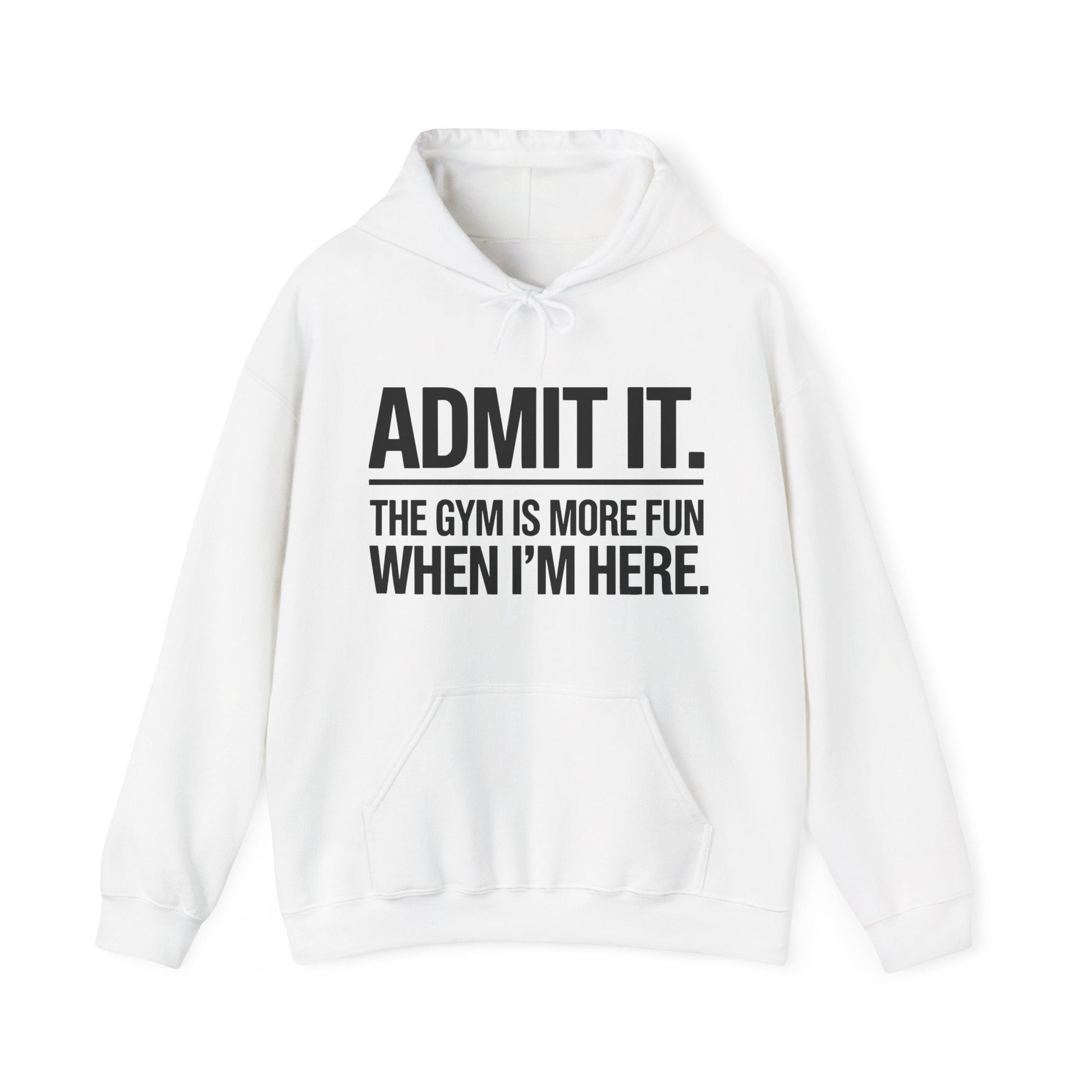 Ever notice how the gym gets louder, funnier, and just a little more chaotic when you walk in? This “Admit It. The Gym Is More Fun When I'm Here” hoodie is made for the motivators, the mood-lifters, and the ones who turn every workout into a social event. Whether you're lifting heavy or just lifting spirits, this hoodie solves the problem of dull gym wear with a design that’s confident, witty, and full of personality.