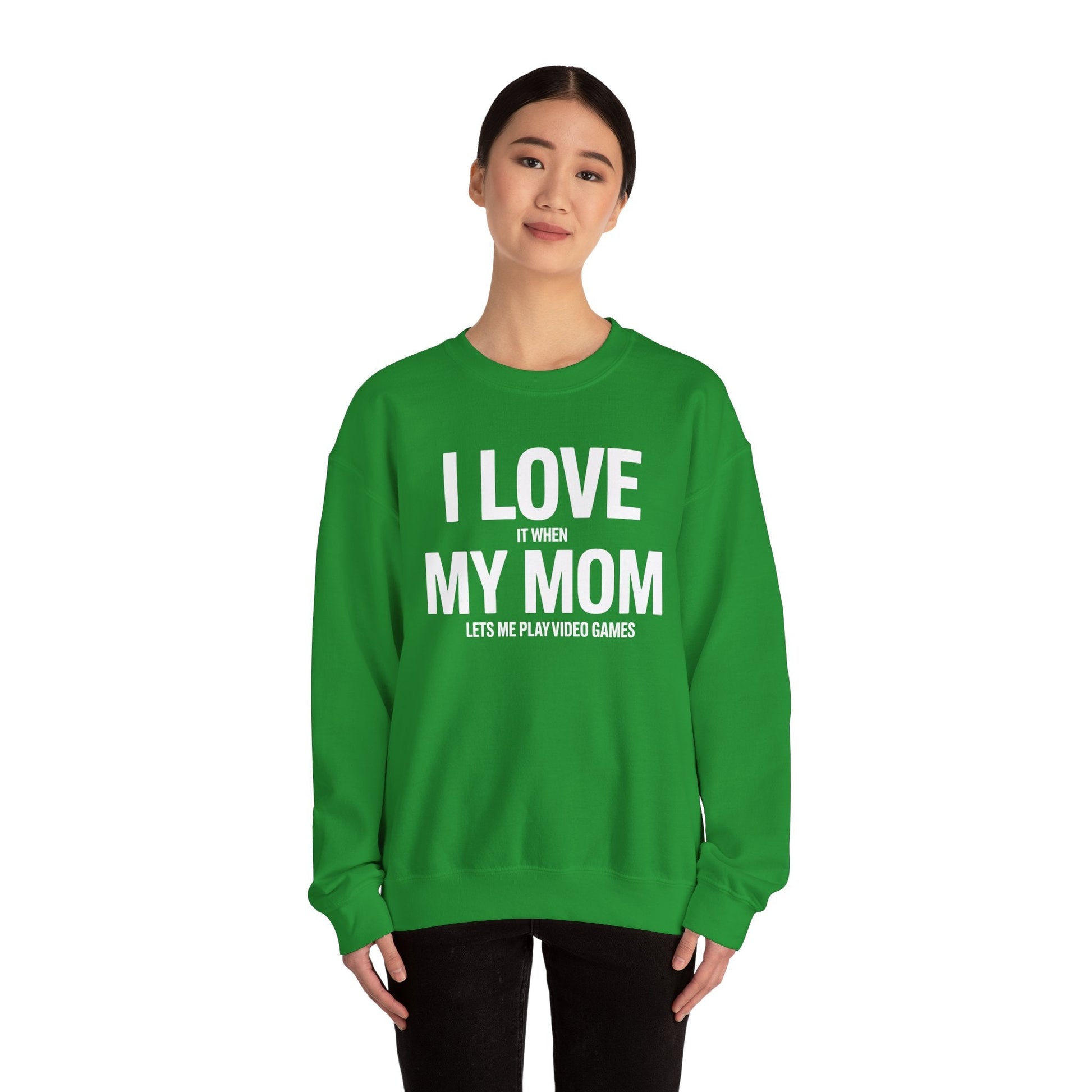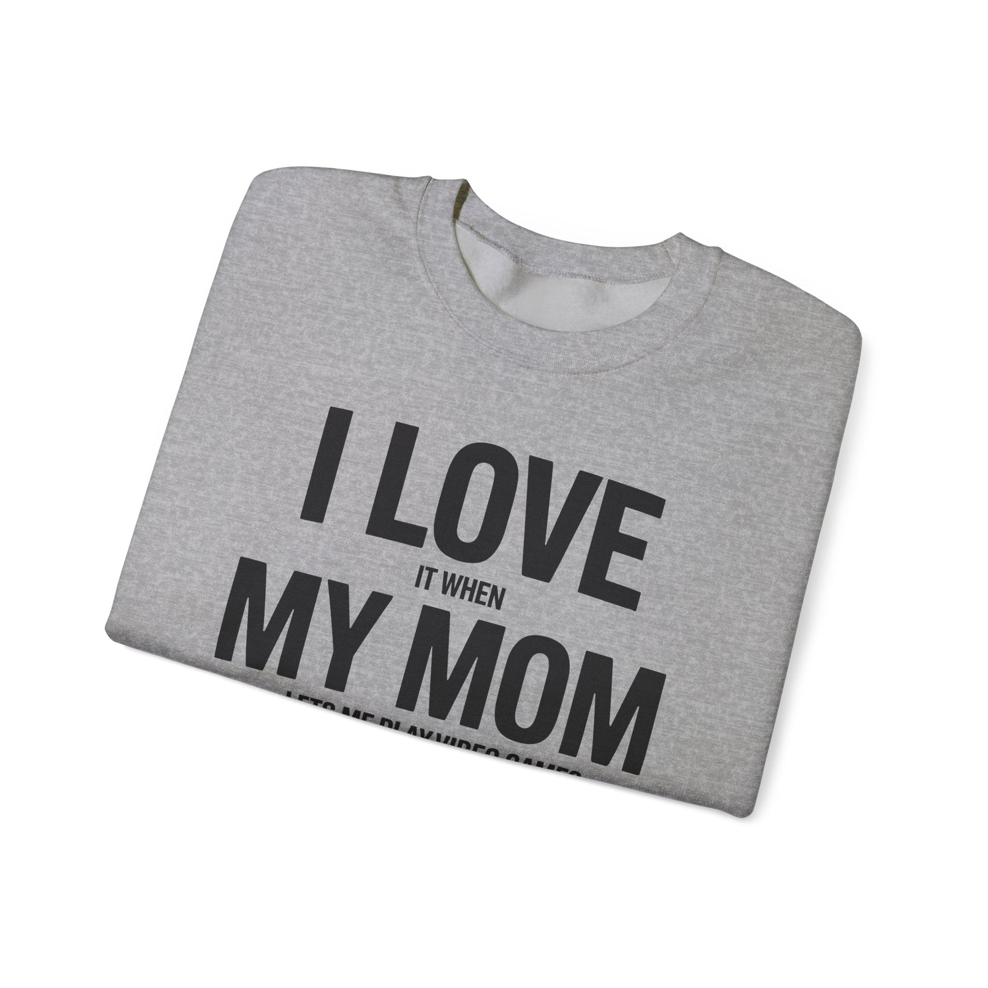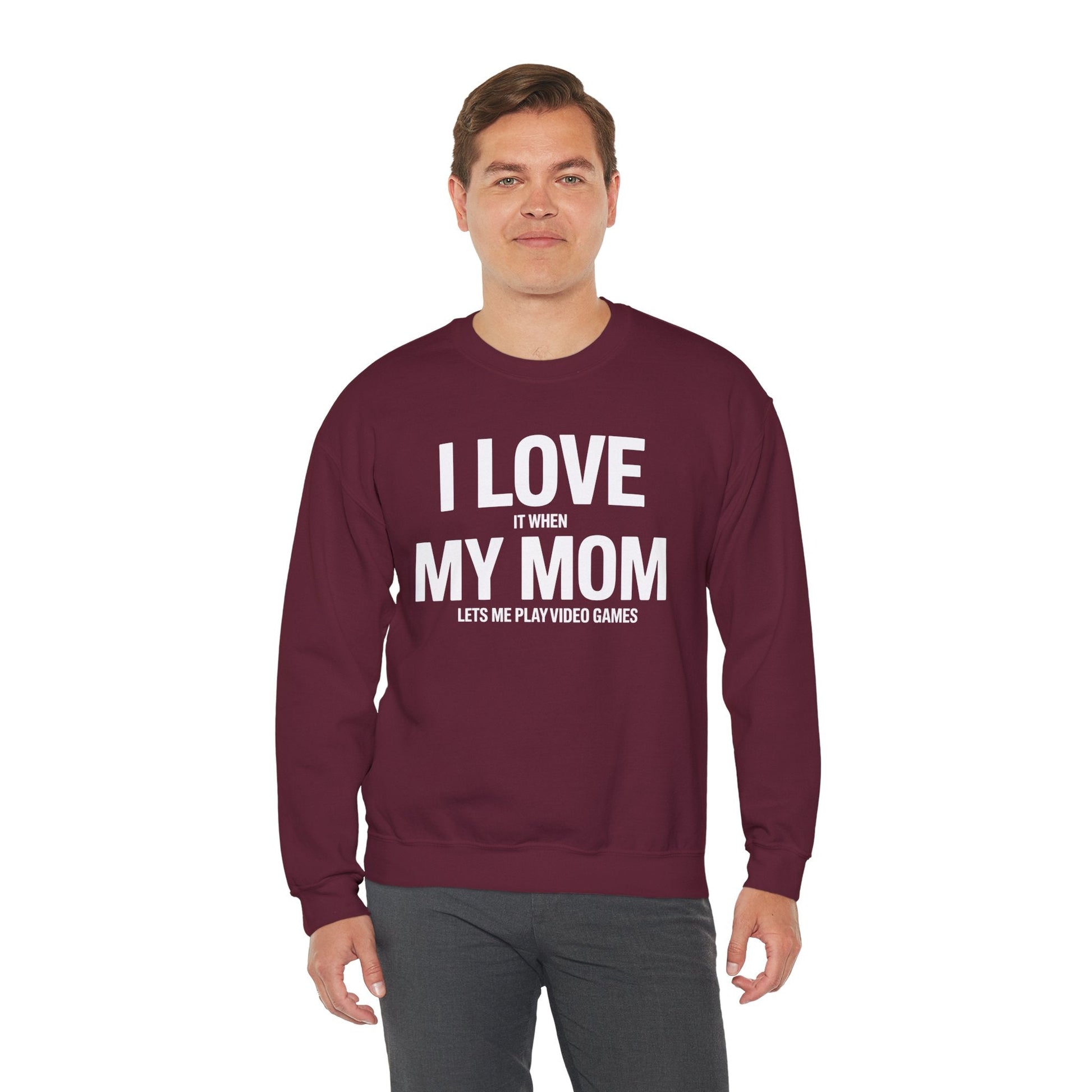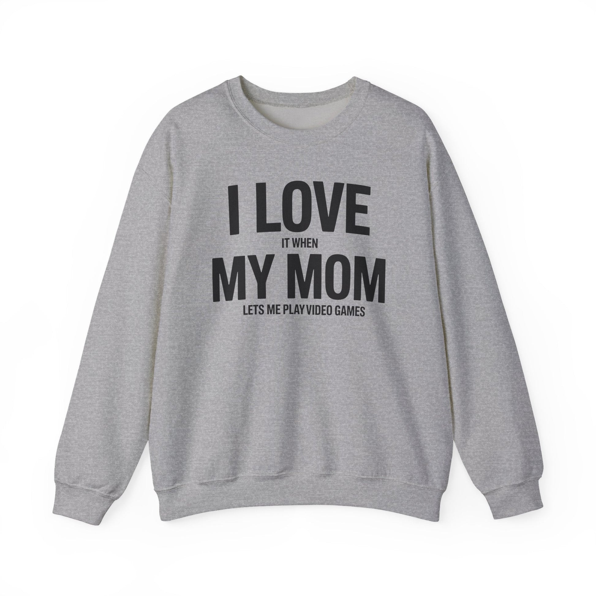 This funny 'I love my mom sarcastic video games gift' sweatshirt is perfect for anyone looking to add a touch of humor to their wardrobe. It's cozy, comfortable, and ideal for those colder months. The classic fit and crew neckline make it a versatile piece that can be dressed up or down. This sweatshirt is great for adults who enjoy witty and playful designs, and it's perfect for gifting on Mother's Day or birthdays.