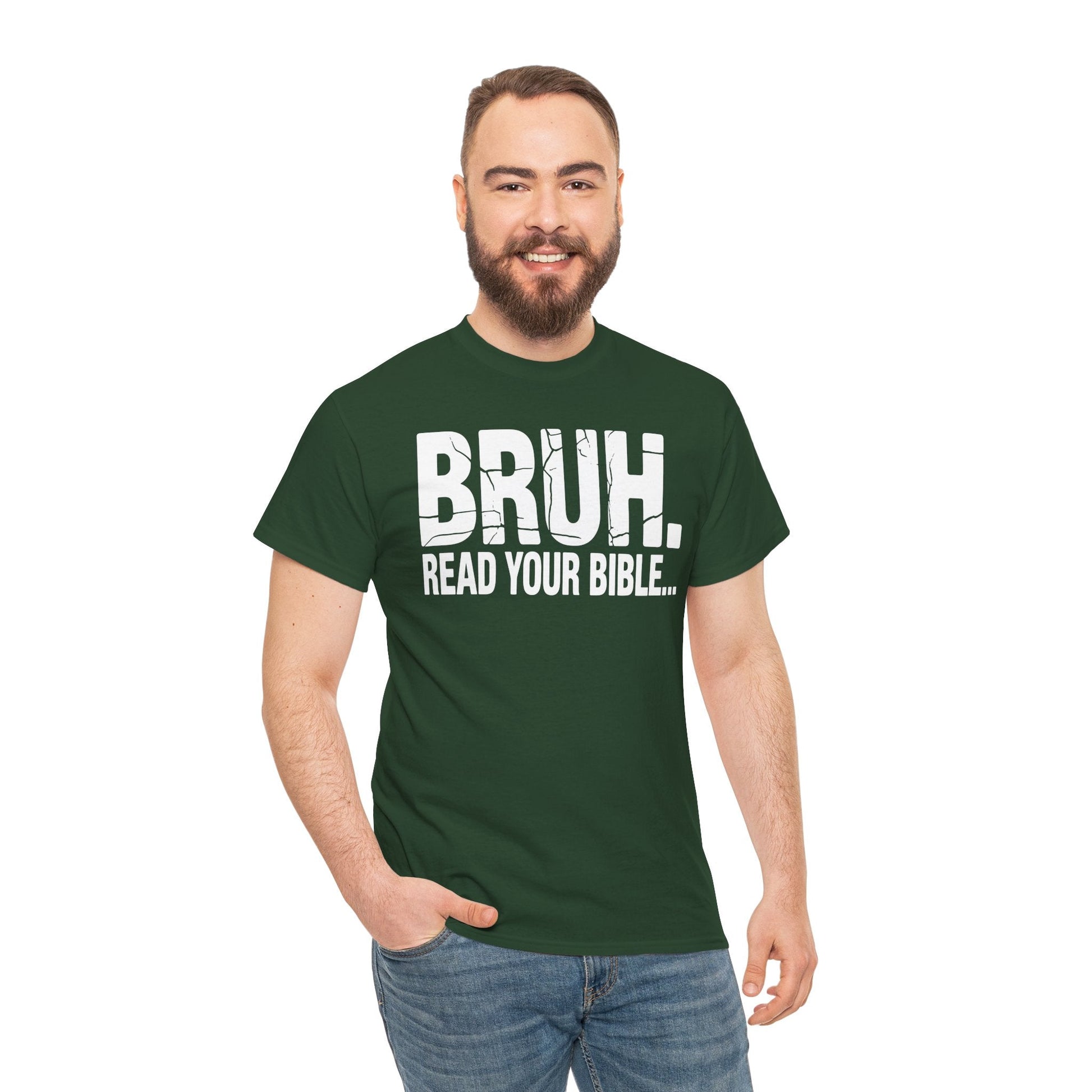 Bold Meme Graphic: Features the viral “Bruh Read Your Bible” phrase in eye-catching typography—perfect for Christians who love humor and truth in equal measure.