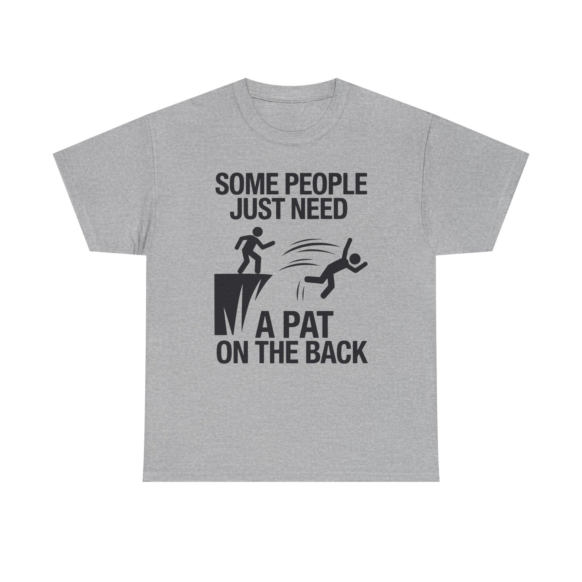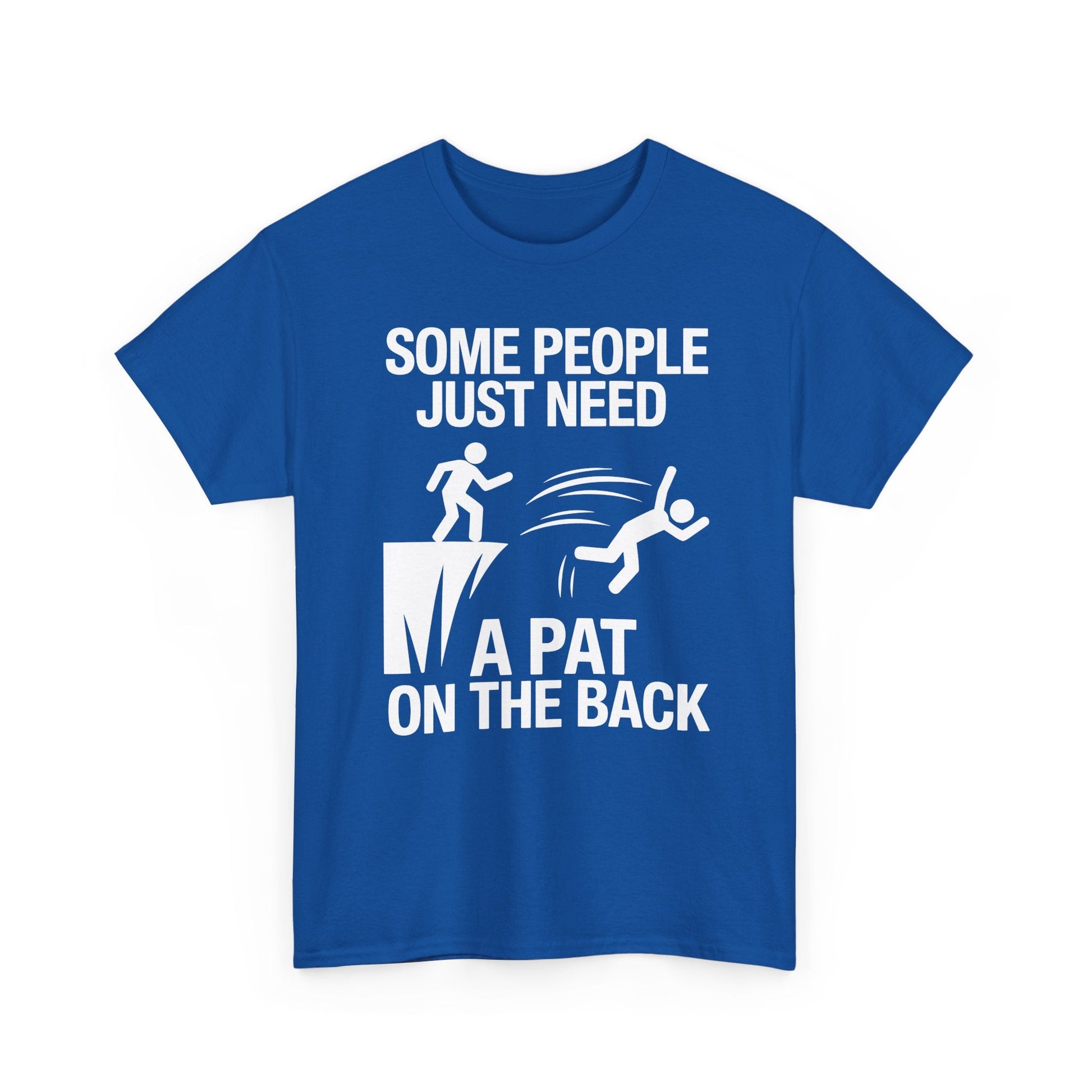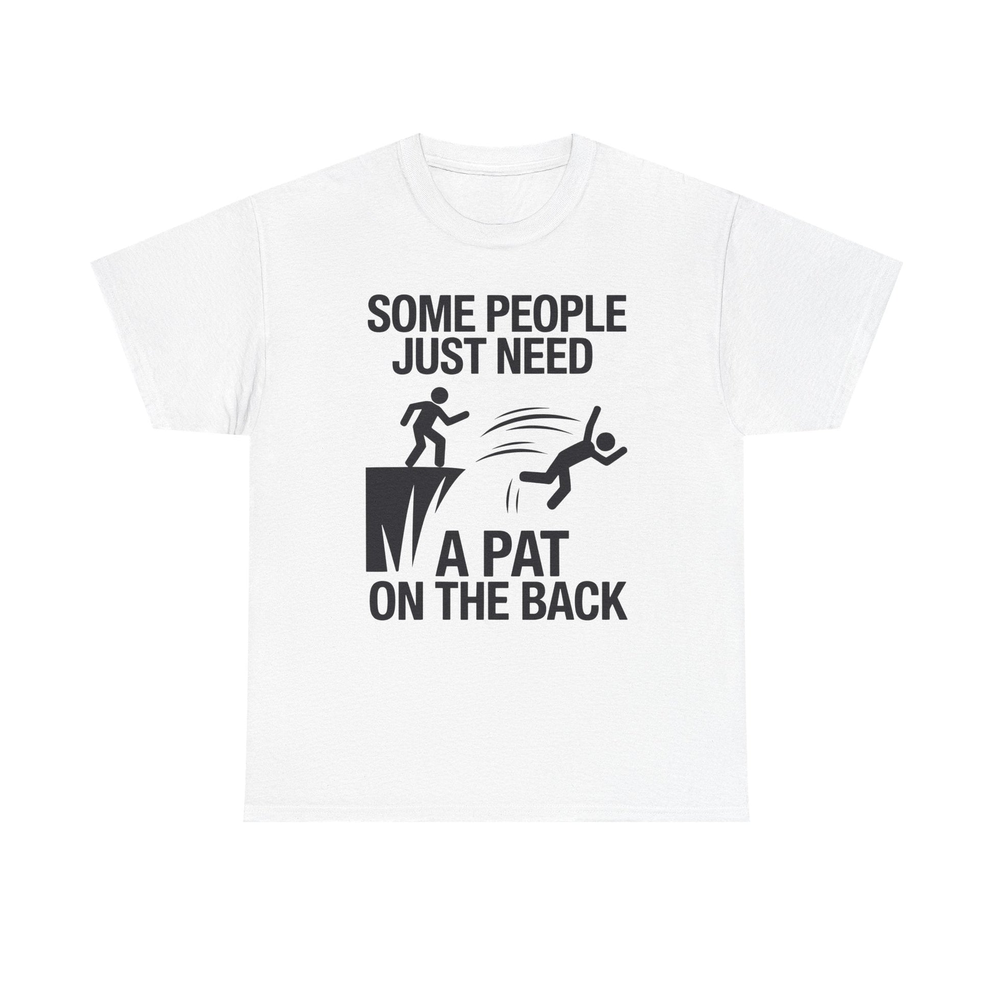 The Funny “Pat On The Back” Sarcastic T-Shirt is your wearable punchline for those moments when words just aren’t enough. Featuring a hilariously dark graphic of a literal push off a cliff, this tee is perfect for anyone who thrives on sarcasm, irony, and unapologetic humor.