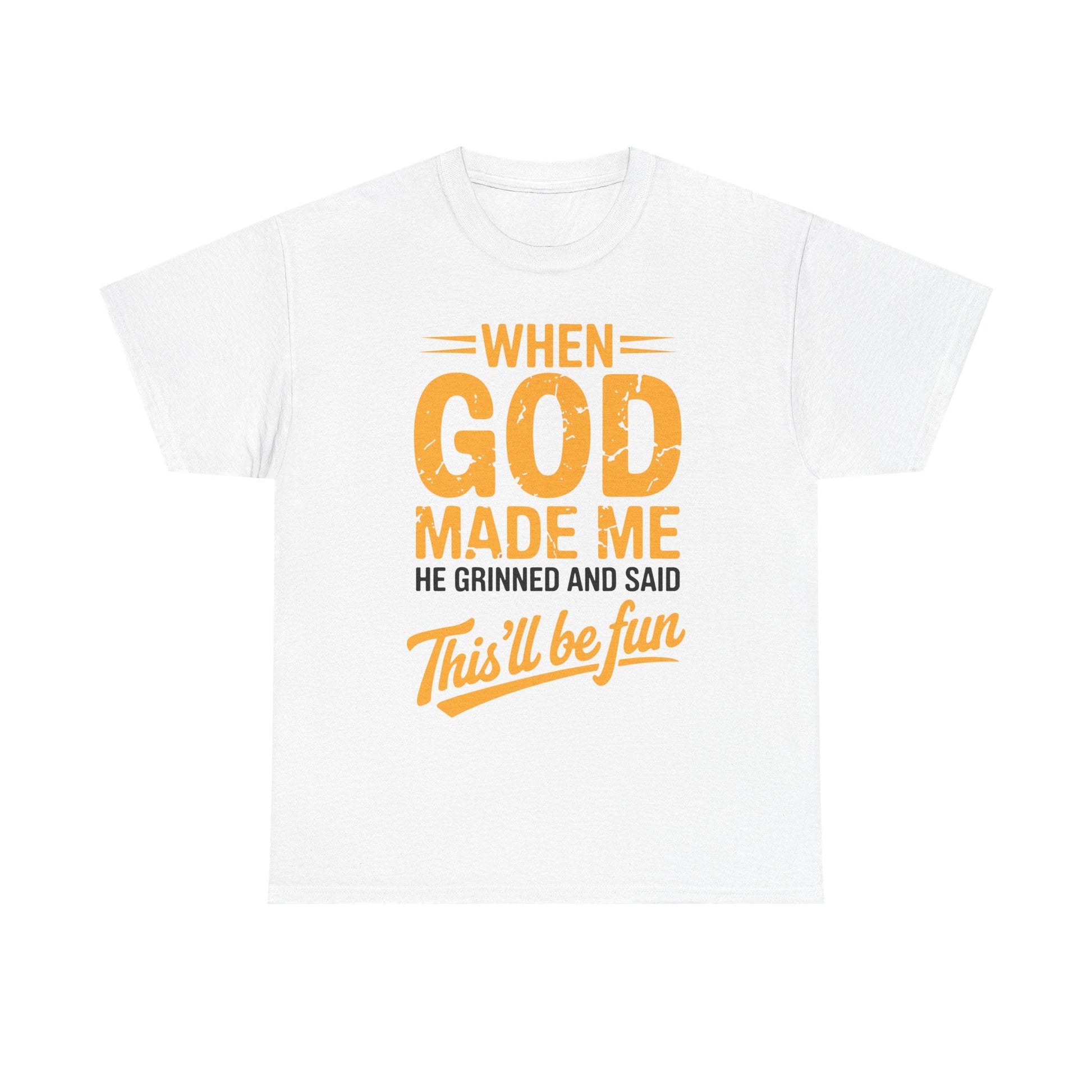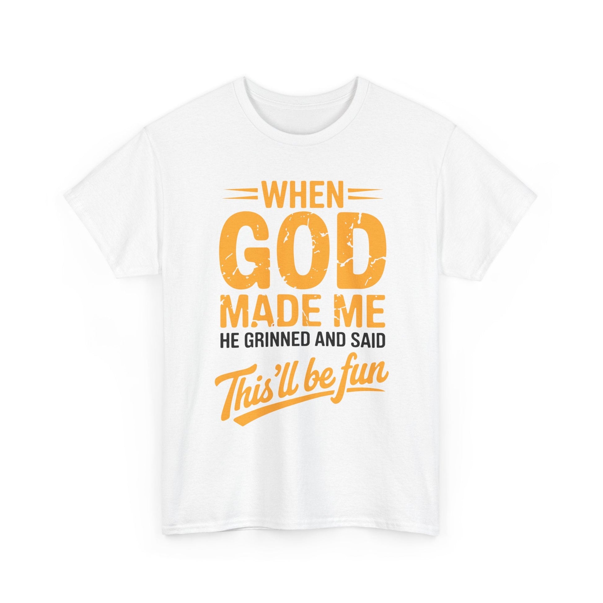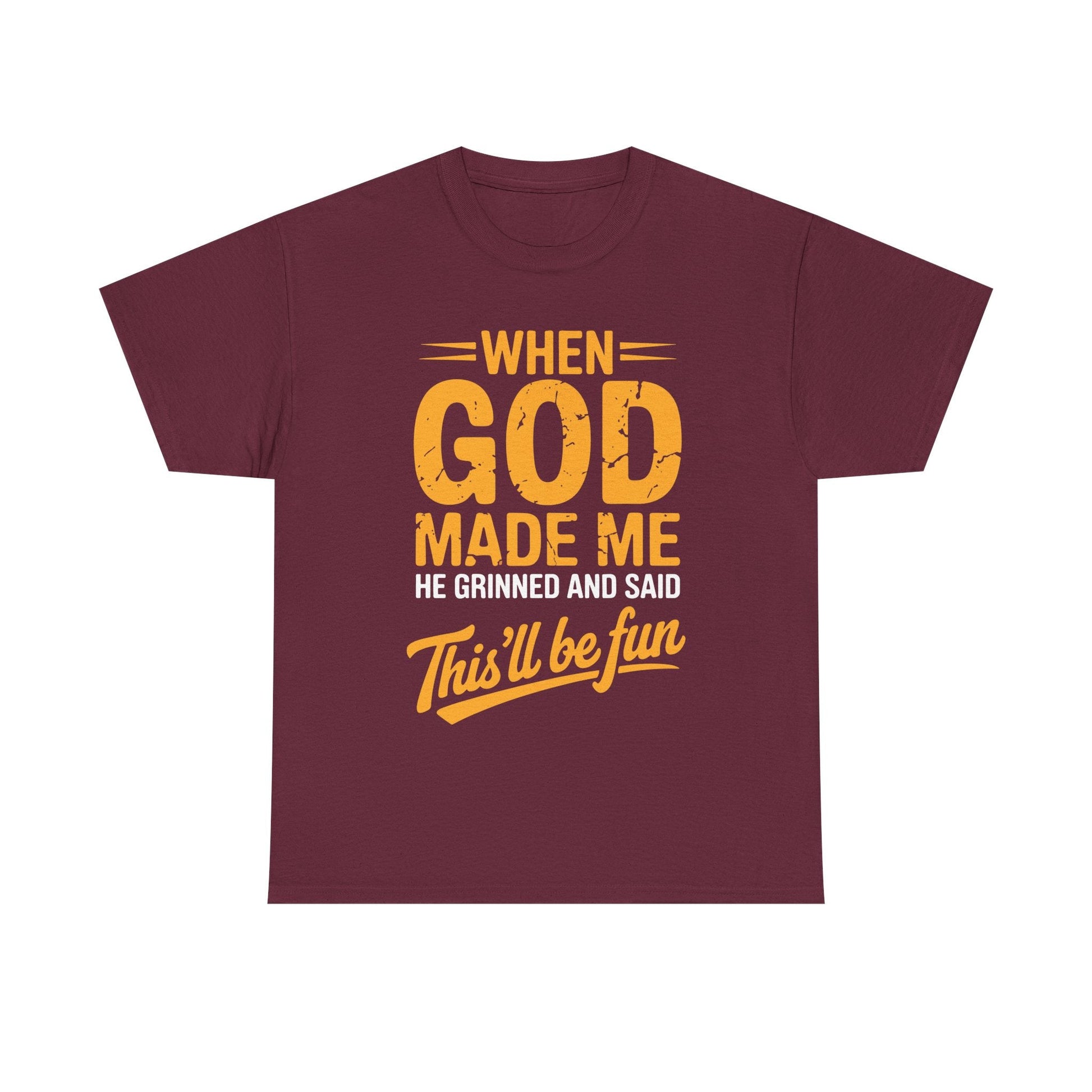Ever feel like your personality was handcrafted for mischief, laughter, and a little divine chaos? This shirt says what everyone’s been thinking: “When God made me, He said… this’ll be fun.” Whether you’re the class clown, the office jokester, or just someone who embraces their quirks, this tee is your wearable punchline.