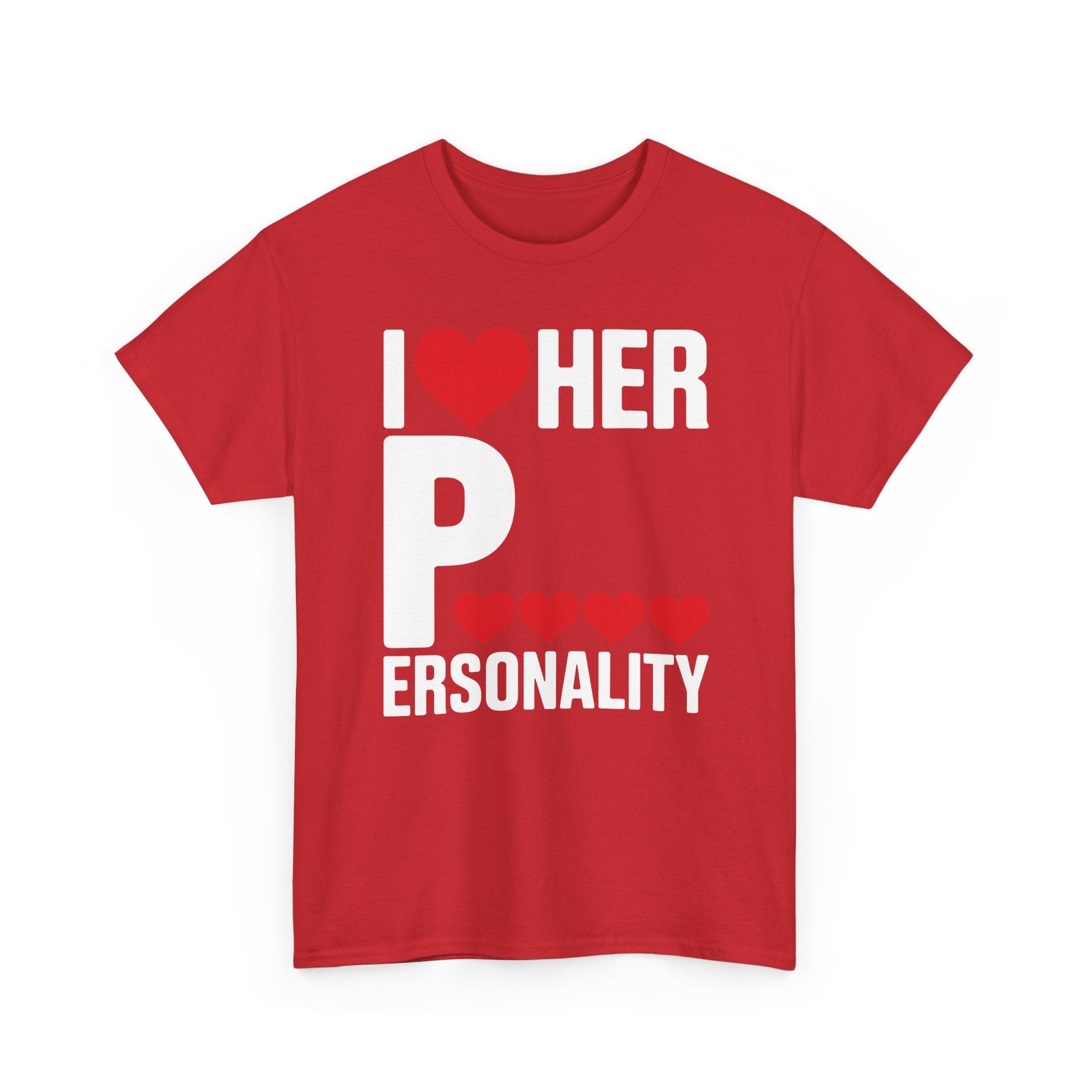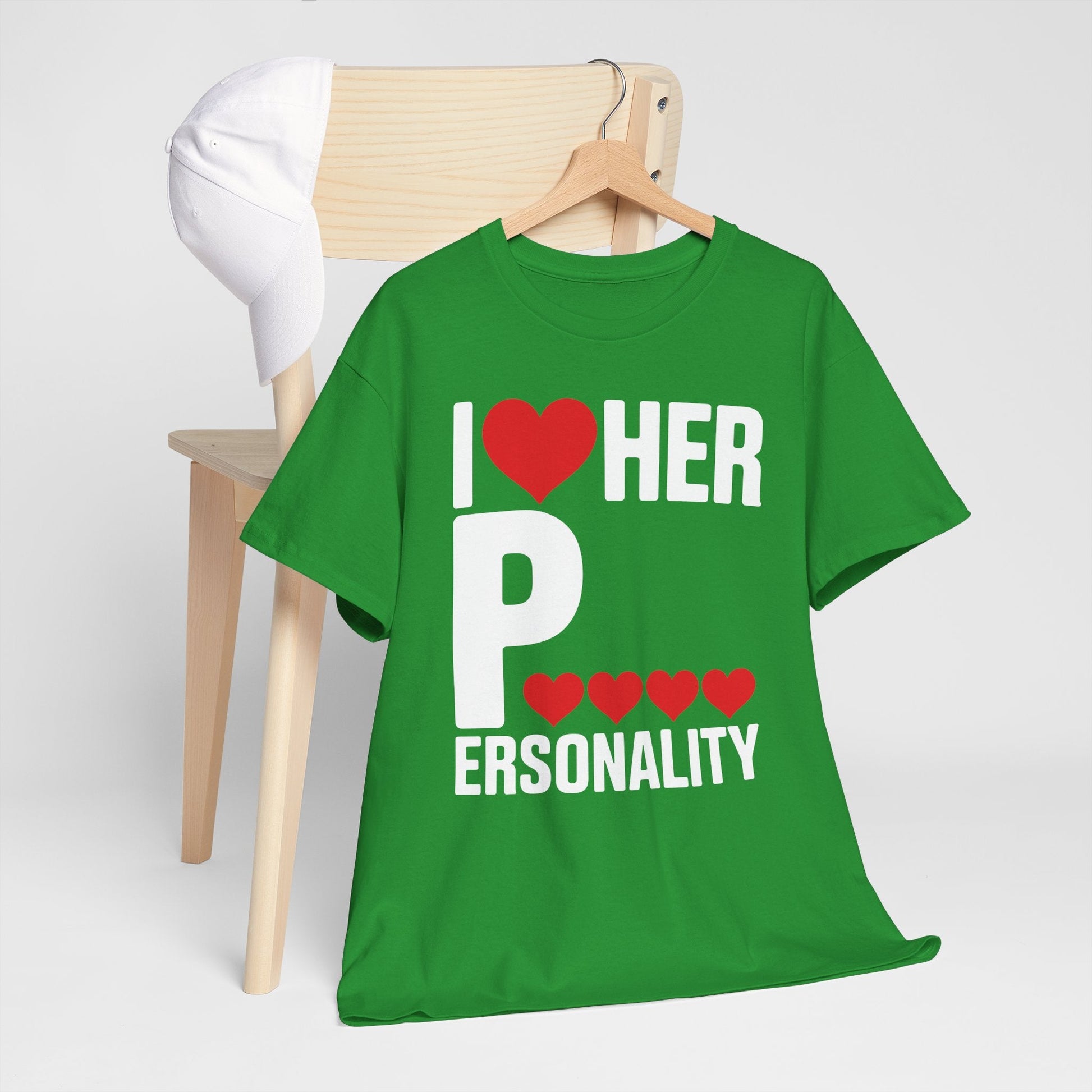 · Design: Features the phrase “I Love Her Personality” in bold, clean lettering—subtly hinting that there’s more to the story. It’s a guaranteed conversation starter.