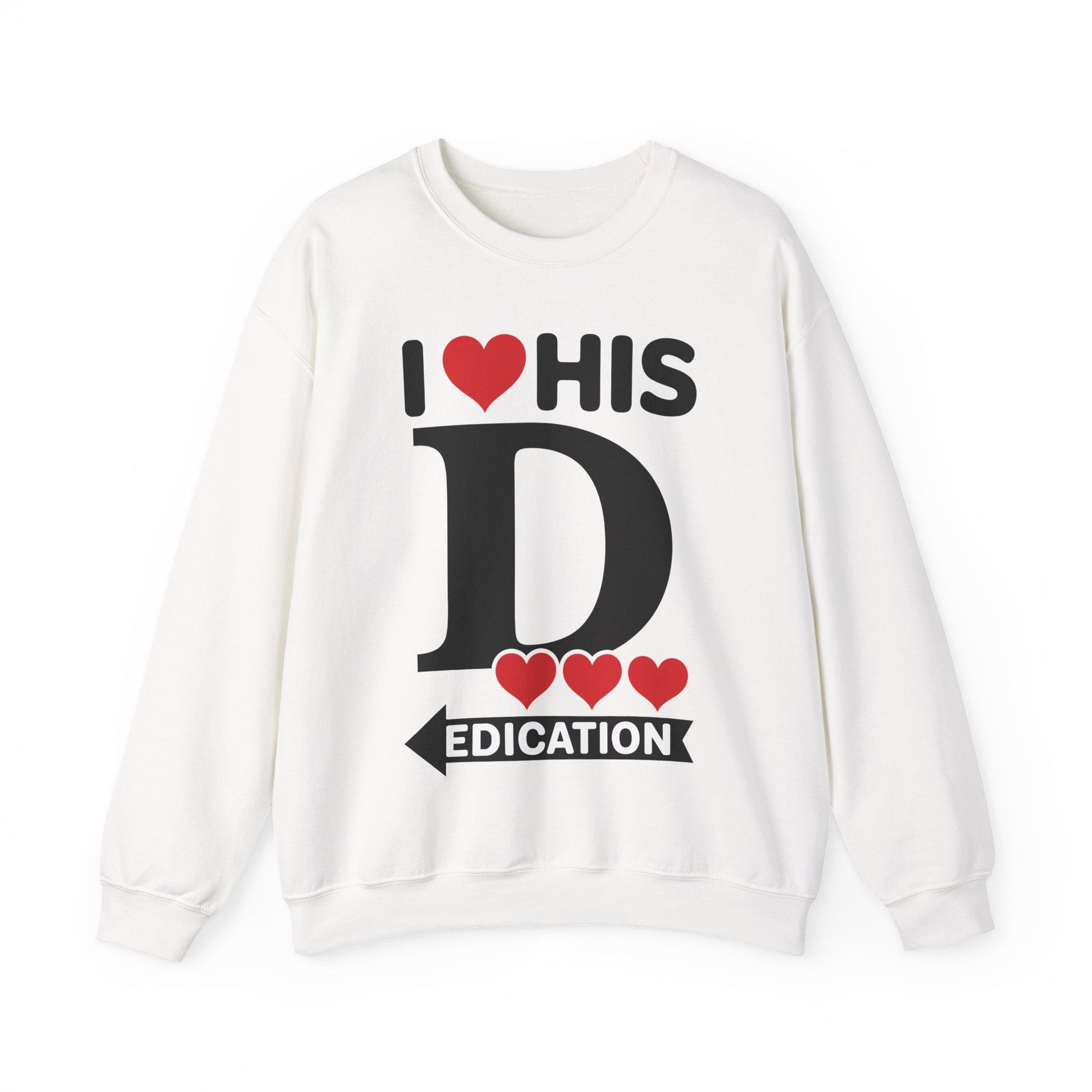· Bold & Funny Design: Features the phrase “I Love His Dedication” in clean, eye-catching lettering—subtly hinting there’s more to the story. It’s a guaranteed conversation starter and pairs perfectly with the “I Love Her Personality” sweatshirt.