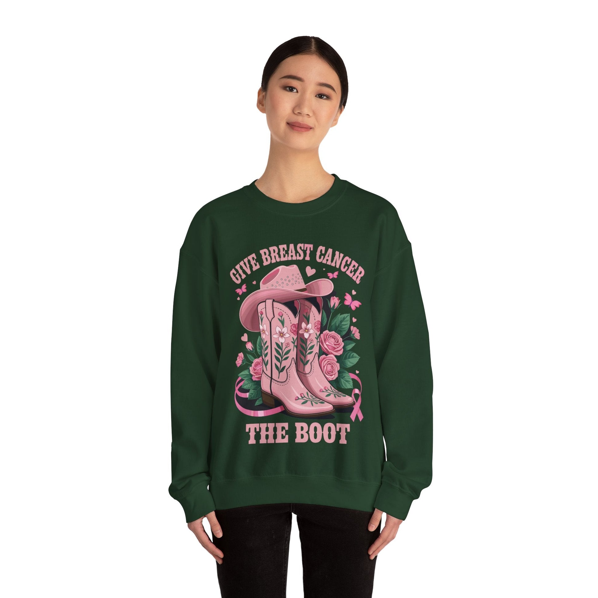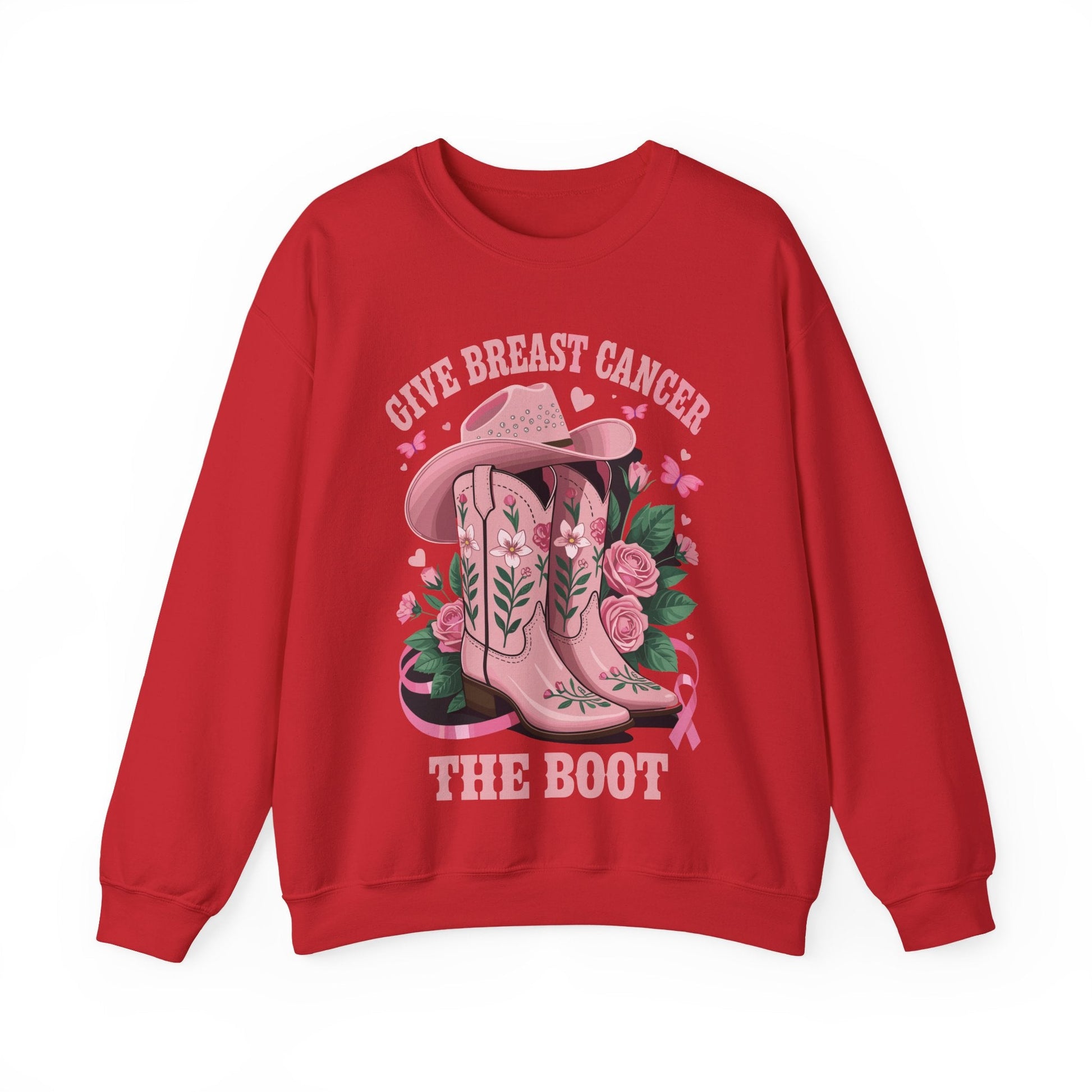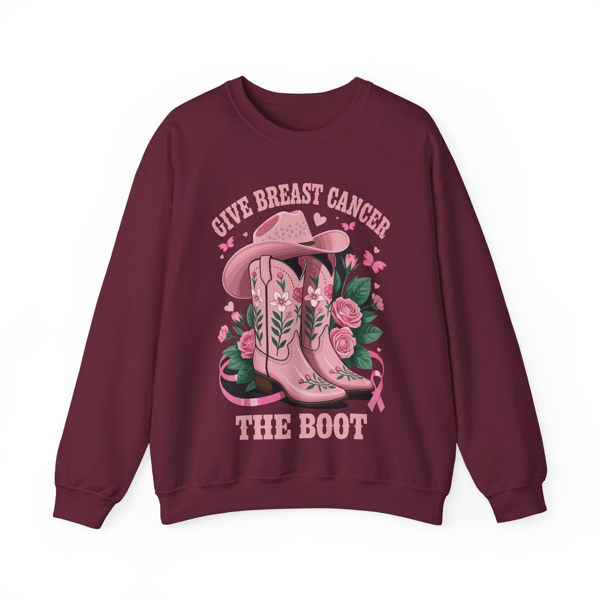 Give Breast Cancer The Boot Cowgirl Cancer Awareness Ribbon Sweatshirt