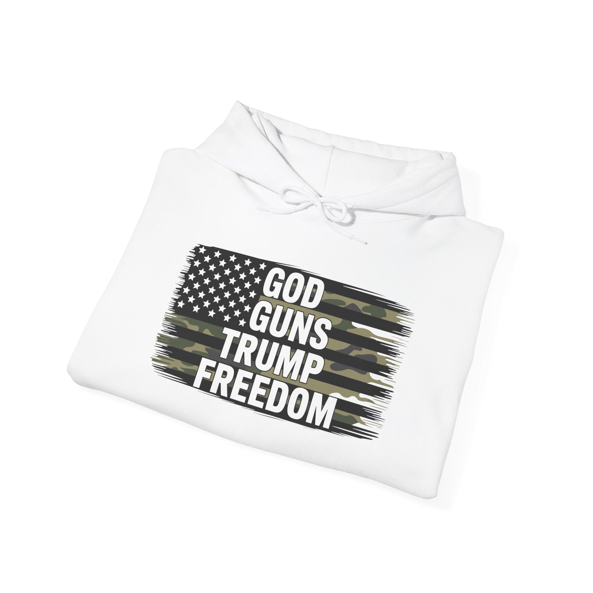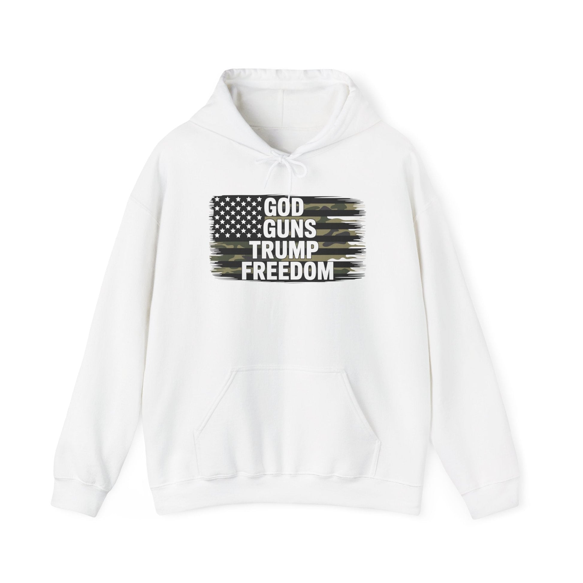 God Guns Trump Freedom Funny Camouflage Pro Gun USA Flag Hoodie