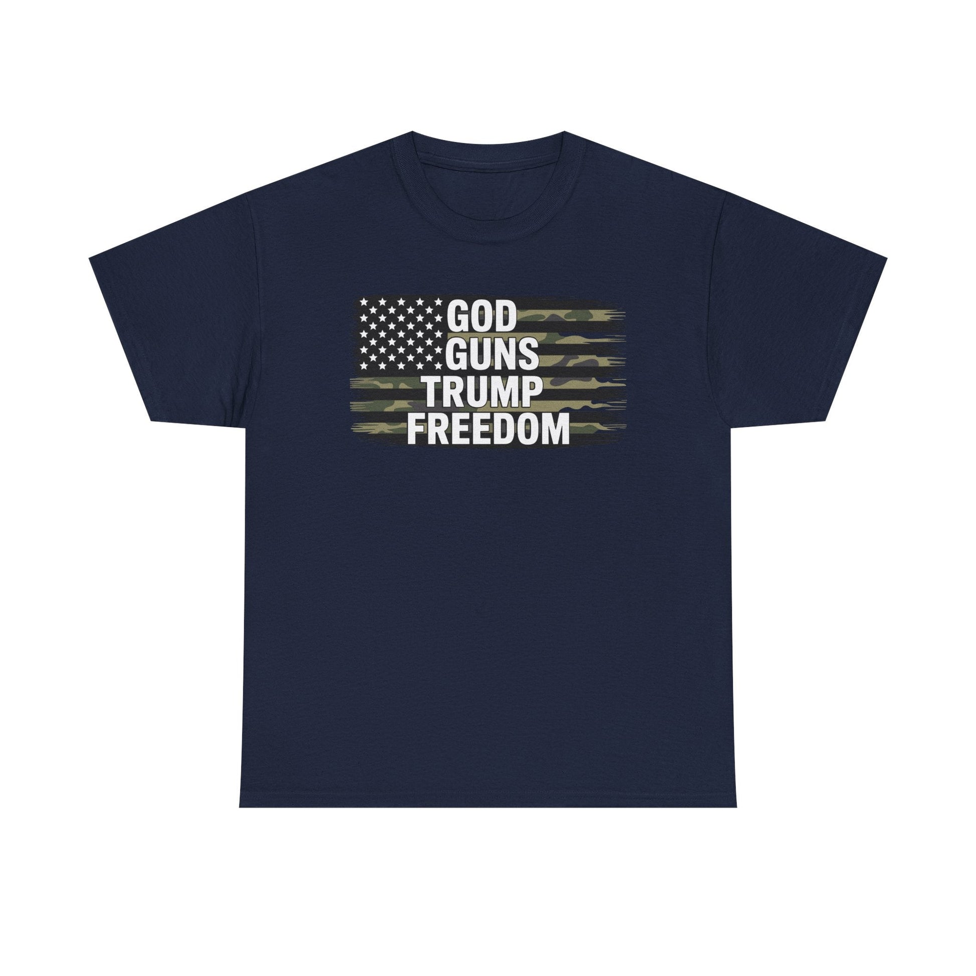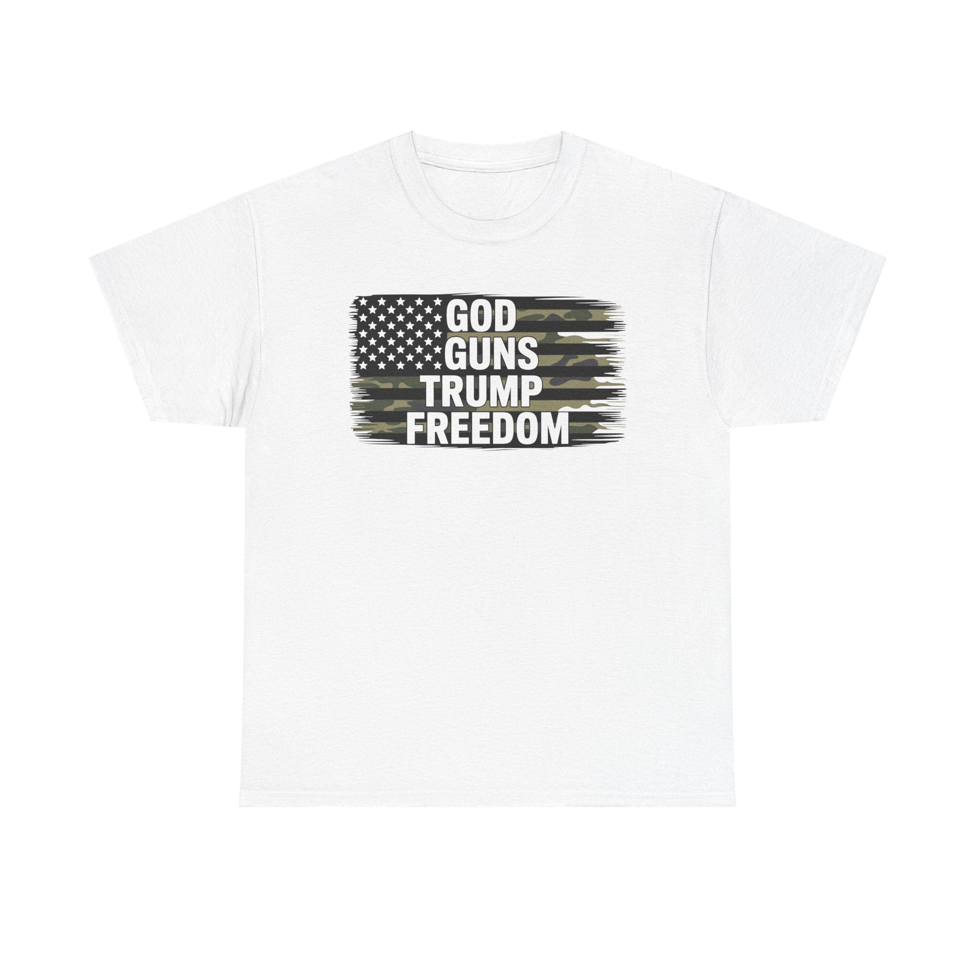God Guns Trump Freedom Funny Camouflage Pro Gun USA Flag T-Shirt