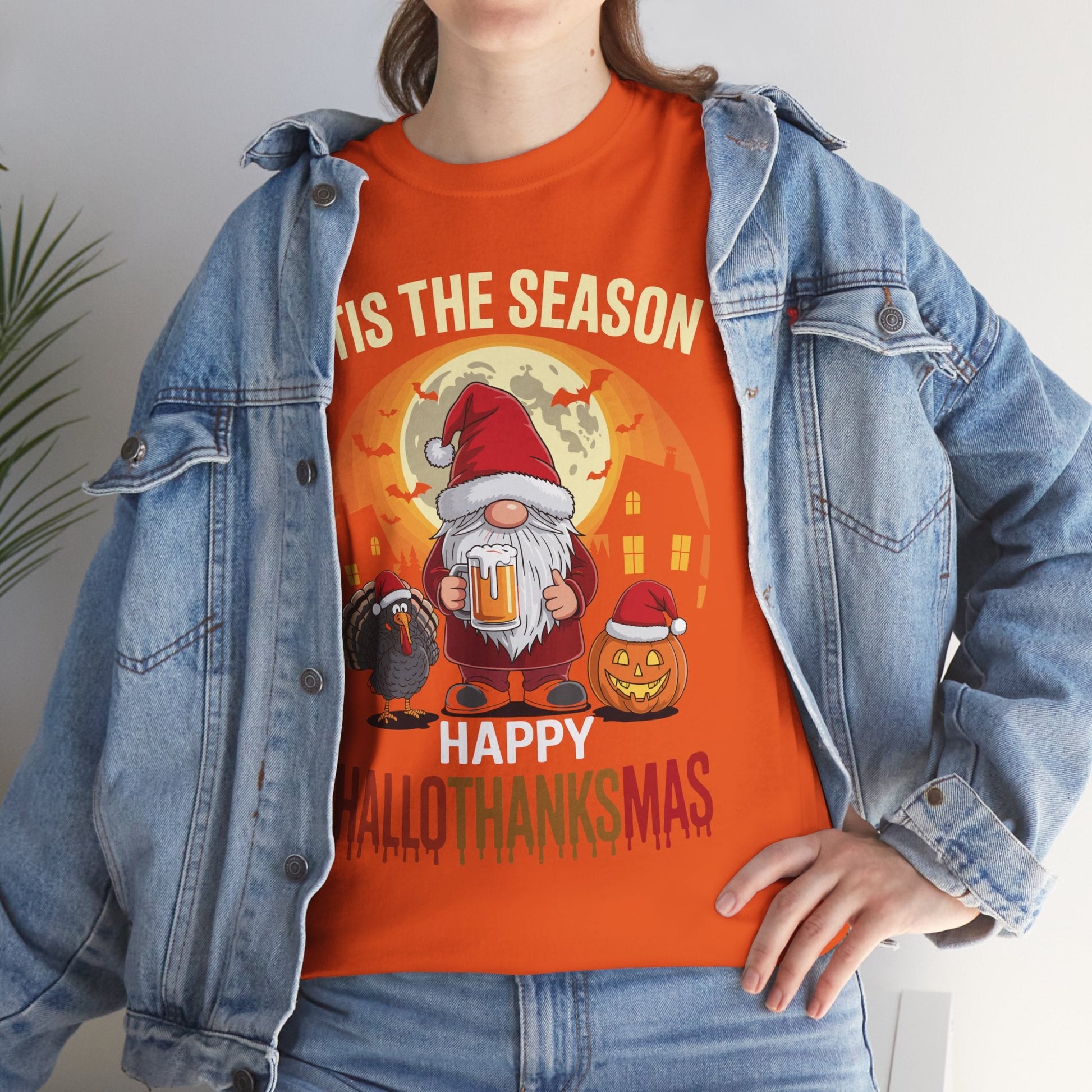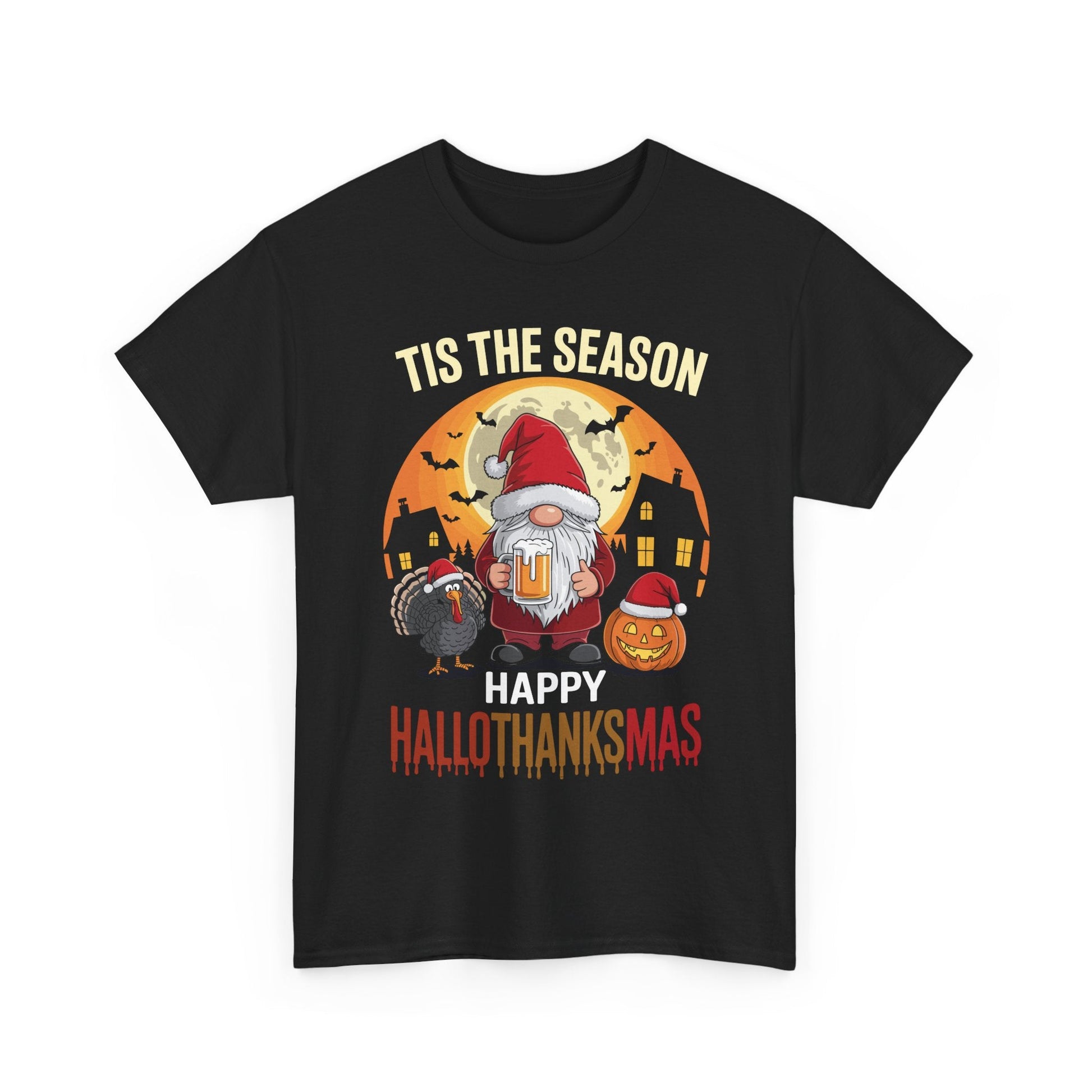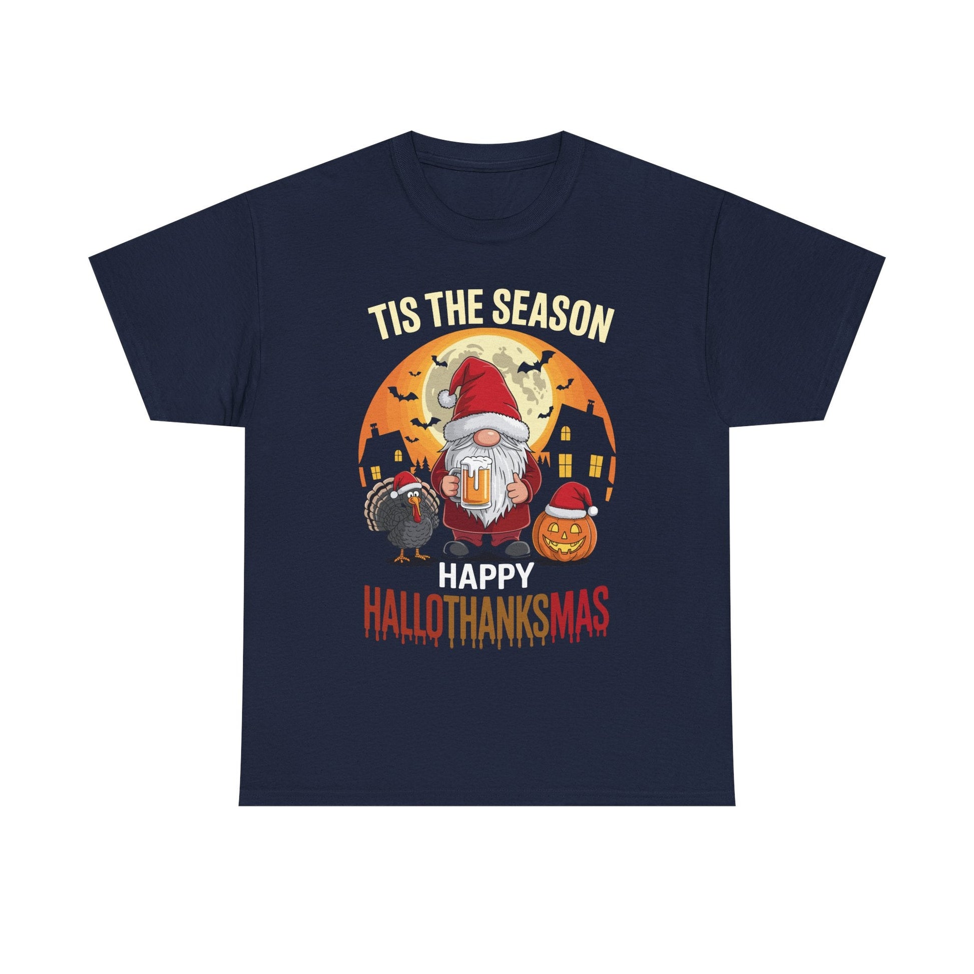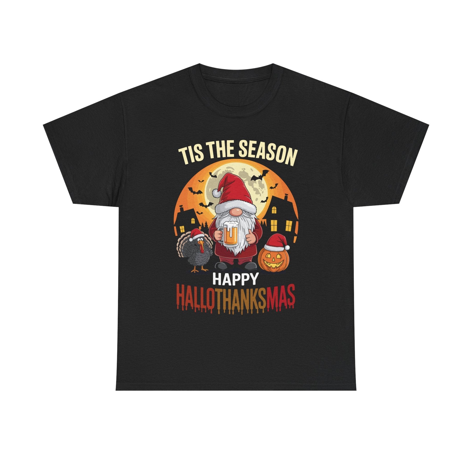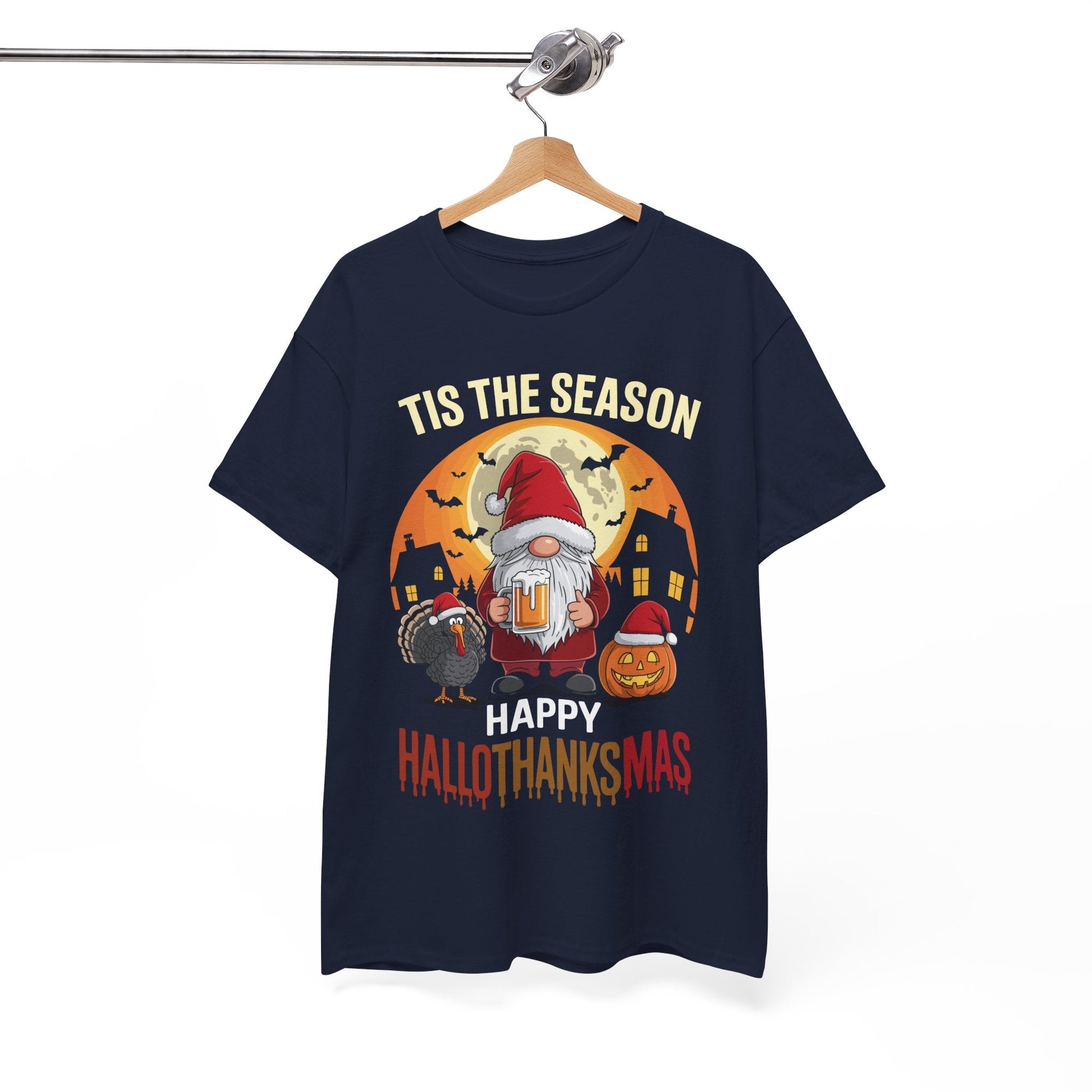 The “Happy Hallothanksmas Halloween Thanksgiving Merry Christmas” T-Shirt is more than just a seasonal outfit—it’s a hilarious solution to the holiday mashup dilemma. Whether you're attending a fall gathering, a holiday party, or just want to spark conversation at the dinner table, this tee solves the problem of switching outfits for every occasion with one clever design that celebrates them all.