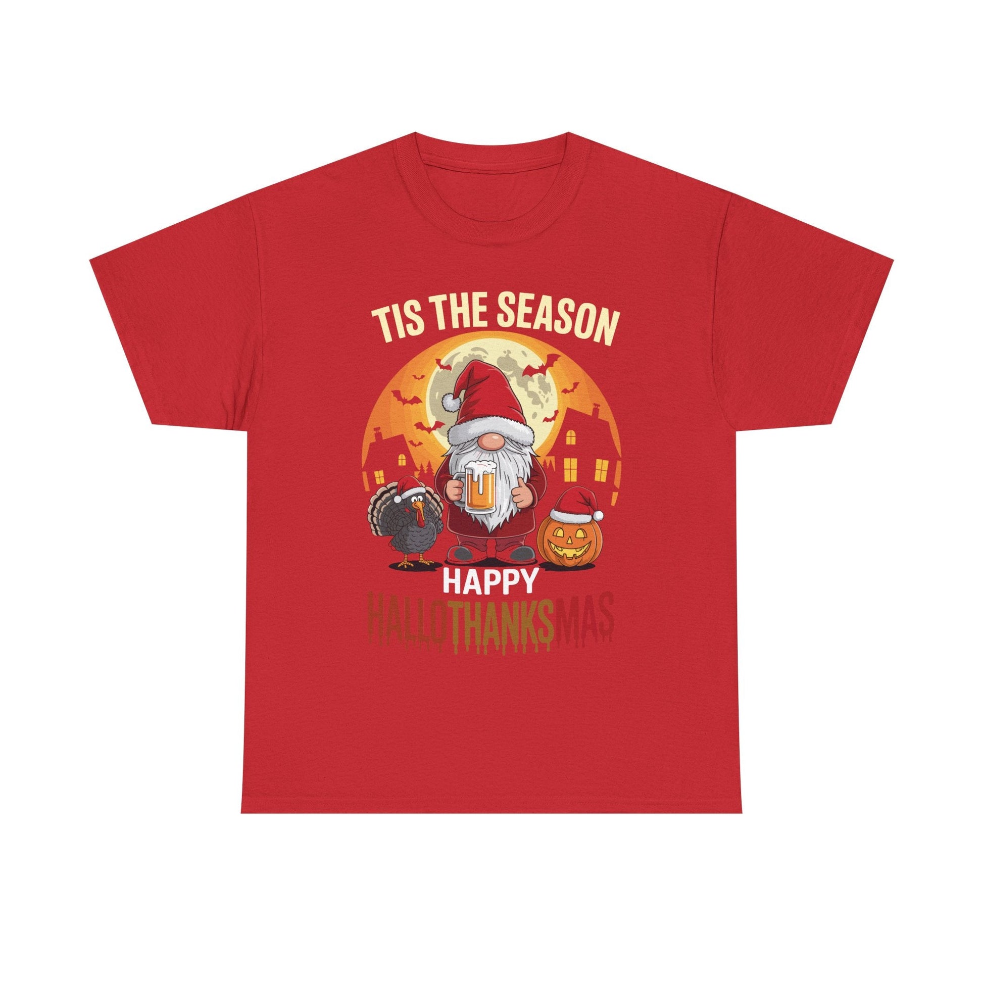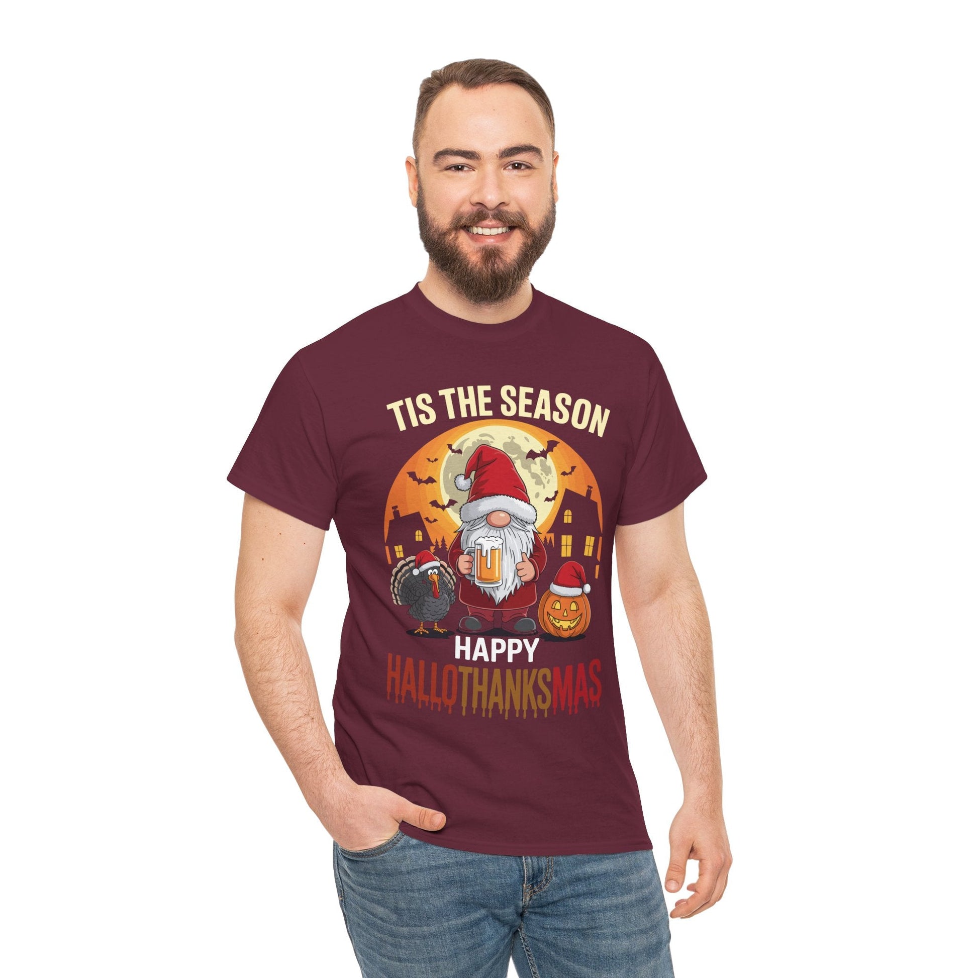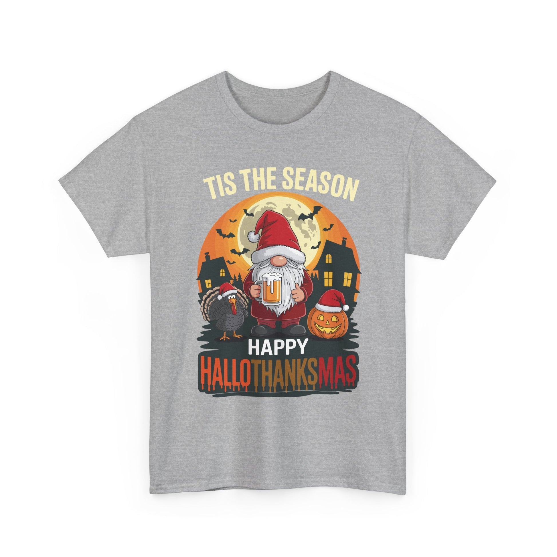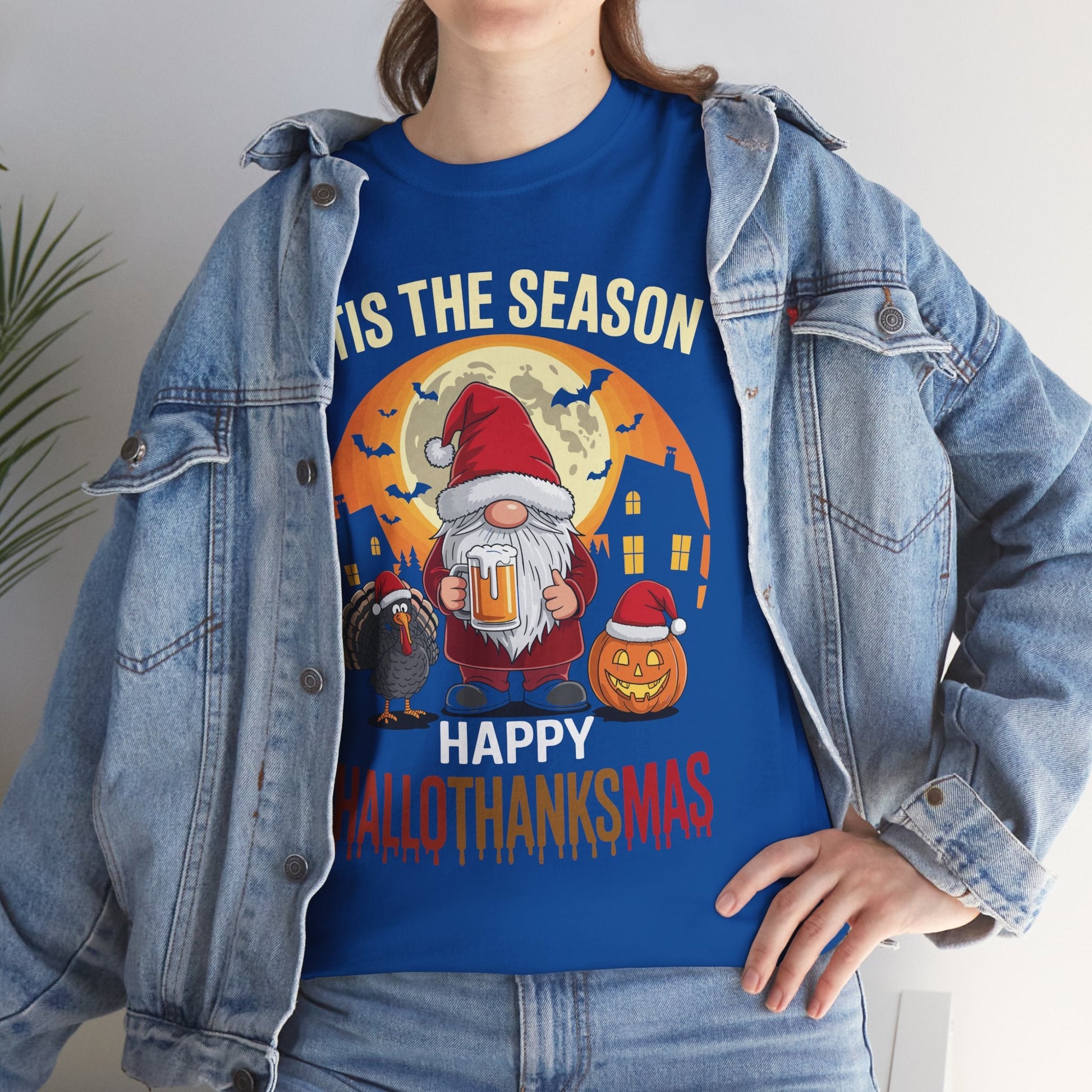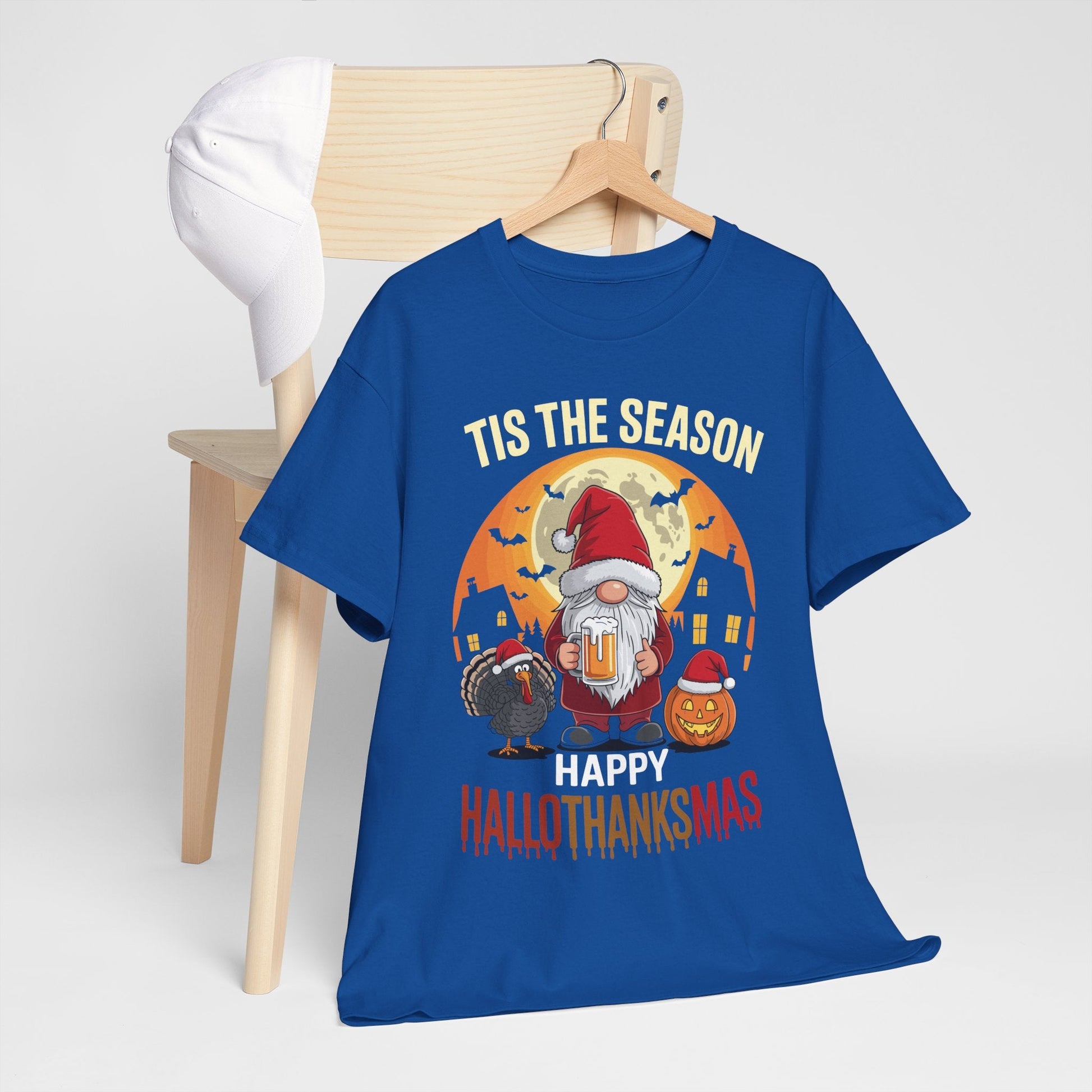 The “Happy Hallothanksmas Halloween Thanksgiving Merry Christmas” T-Shirt is more than just a seasonal outfit—it’s a hilarious solution to the holiday mashup dilemma. Whether you're attending a fall gathering, a holiday party, or just want to spark conversation at the dinner table, this tee solves the problem of switching outfits for every occasion with one clever design that celebrates them all.
