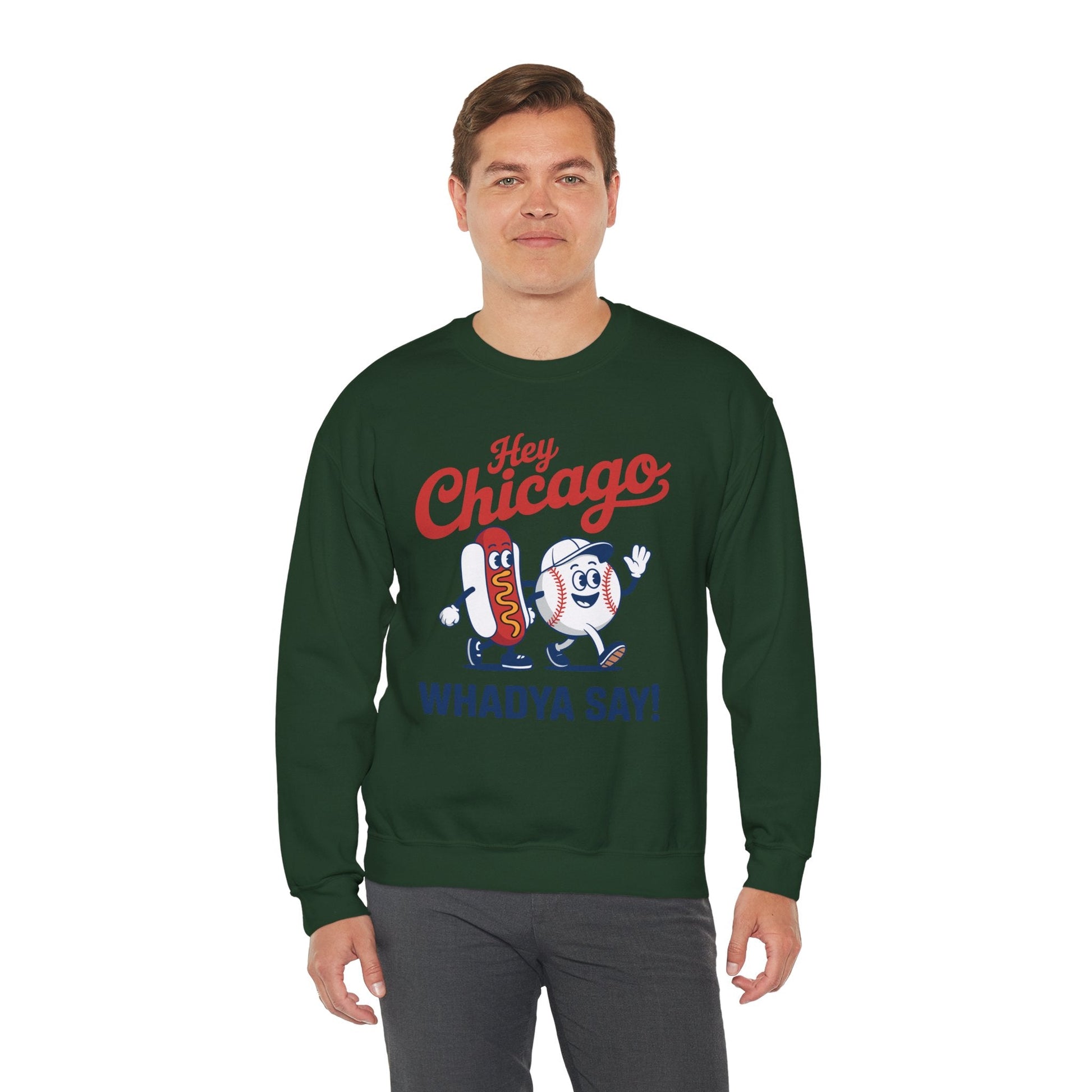 Hey Chicago Whadya Say Baseball and Hot Dog 4th of July Men Women Sweatshirt