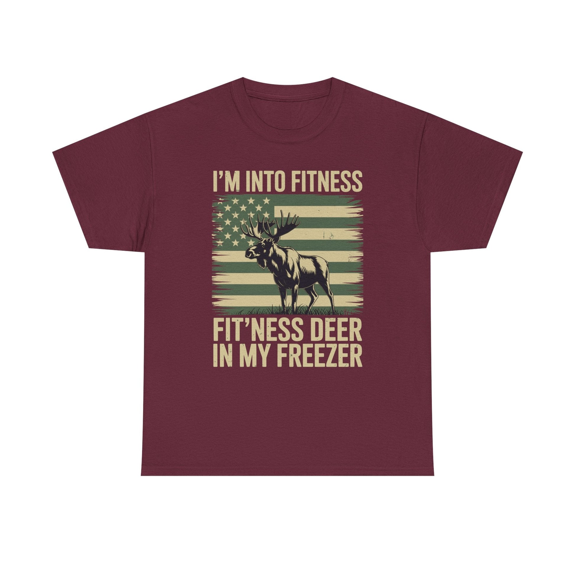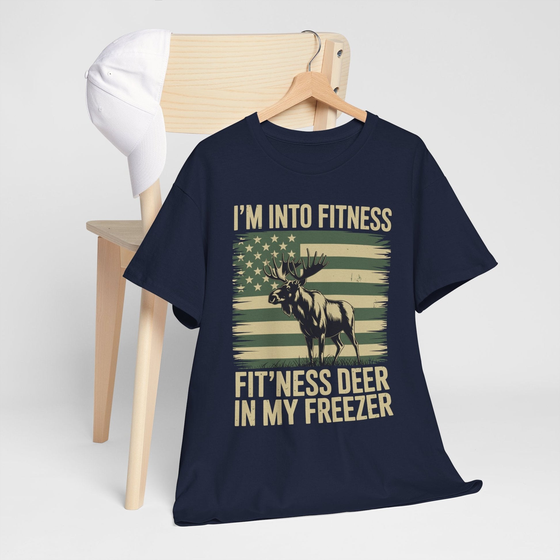 Is your idea of fitness dragging a buck to the truck? This “I’m Into Fitness—Fit’ness Deer In My Freezer” t-shirt is made for hunters who know that cardio happens in the woods and gains come from game. Whether you're gearing up for deer season or just want to flex your outdoor lifestyle, this tee solves the problem of bland hunting apparel with humor, pride, and rugged personality.