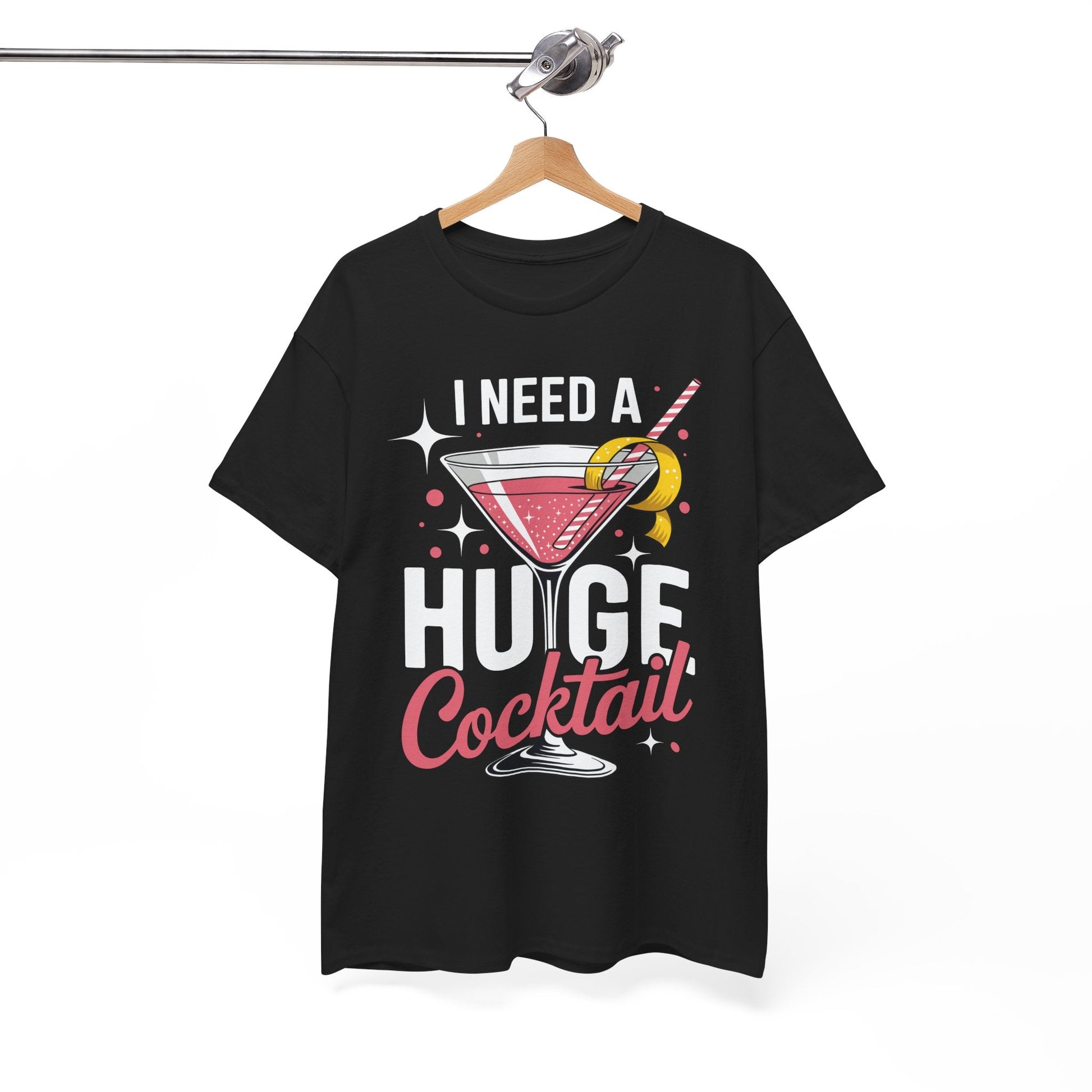 · Hilarious Graphic Design: Features the bold “I Need a Huge COCKtail” quote that’s guaranteed to spark laughs and double takes—perfect for parties, bars, or casual hangouts.