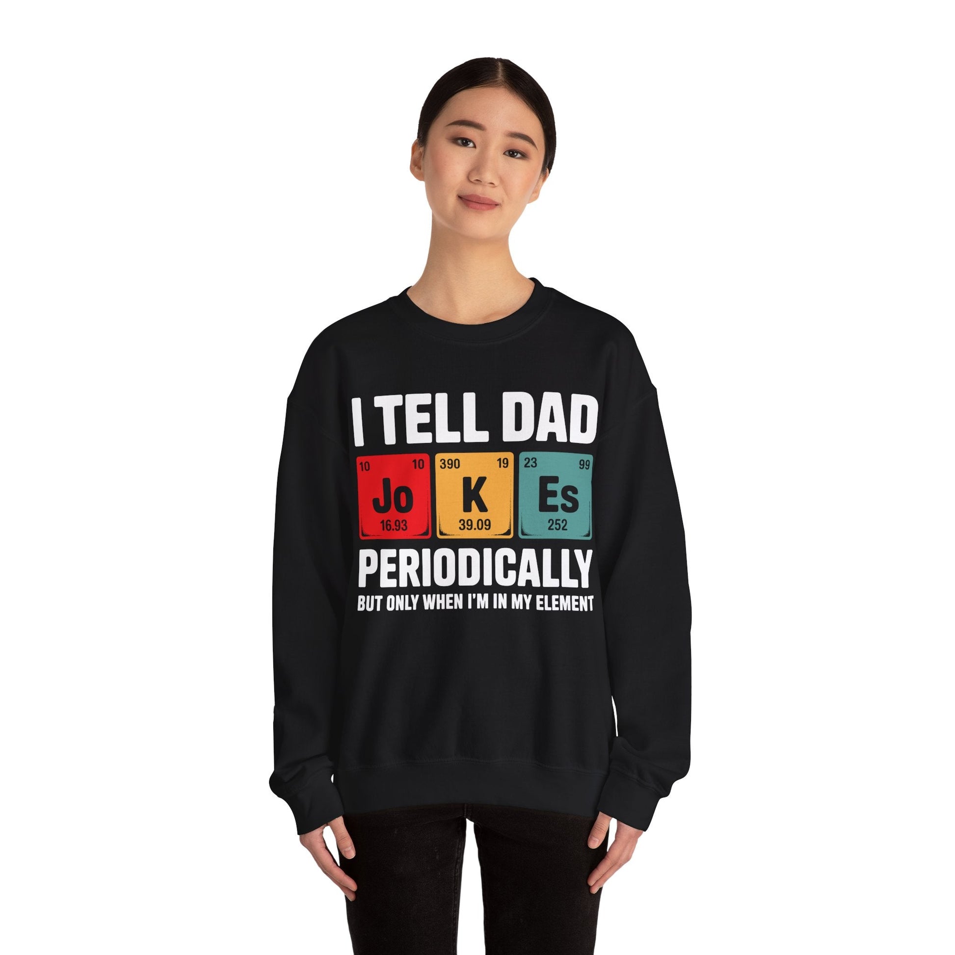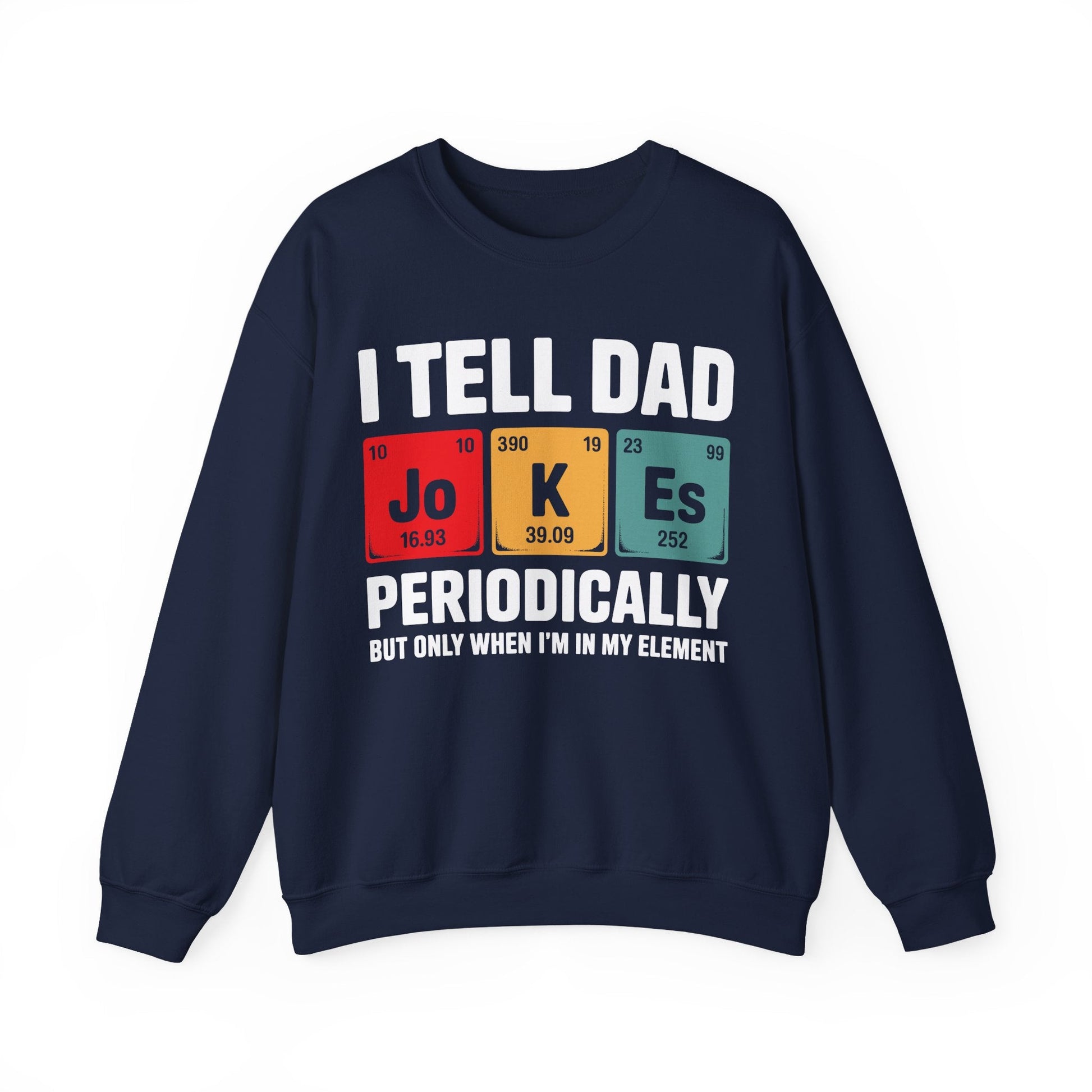 Celebrate dad's love for science and sarcasm with our "I Tell Dad Jokes Periodically" Vintage Element Sweatshirt, the perfect Father's Day gift for science lovers, chemistry teachers, nerdy dads, and pun enthusiasts alike. This funny periodic table dad joke sweatshirt blends humor, geek culture, and retro vintage style in one cozy, comfortable top. Ideal for Father's Day, birthdays, or just because, this funny science sweatshirt is a conversation starter that keeps dad warm and stylish while embracing his inner nerd. Whether he's cracking cheesy jokes or teaching you the periodic elements, this Father’s Day dad joke sweatshirt is the ultimate gift for smart, hilarious fathers.