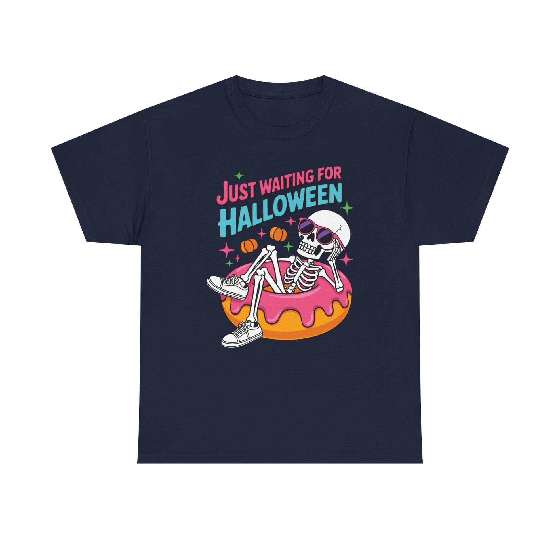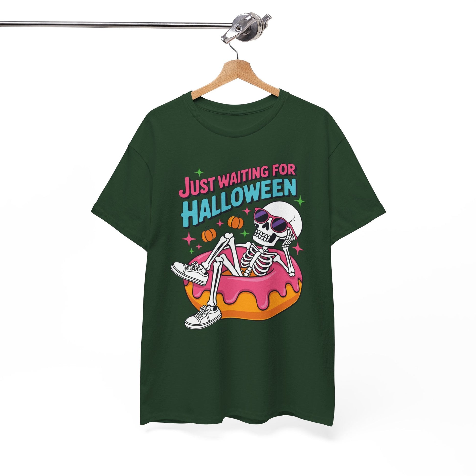 The “Just Waiting For Halloween Skeleton Donut Summerween Vibes” T-Shirt is more than quirky fashion—it’s a hilarious mashup of spooky season and summer cravings. Whether you're counting down to Halloween, obsessed with donuts, or just love ironic humor, this tee solves the problem of boring seasonal wear with a design that’s bold, weird, and unapologetically fun.