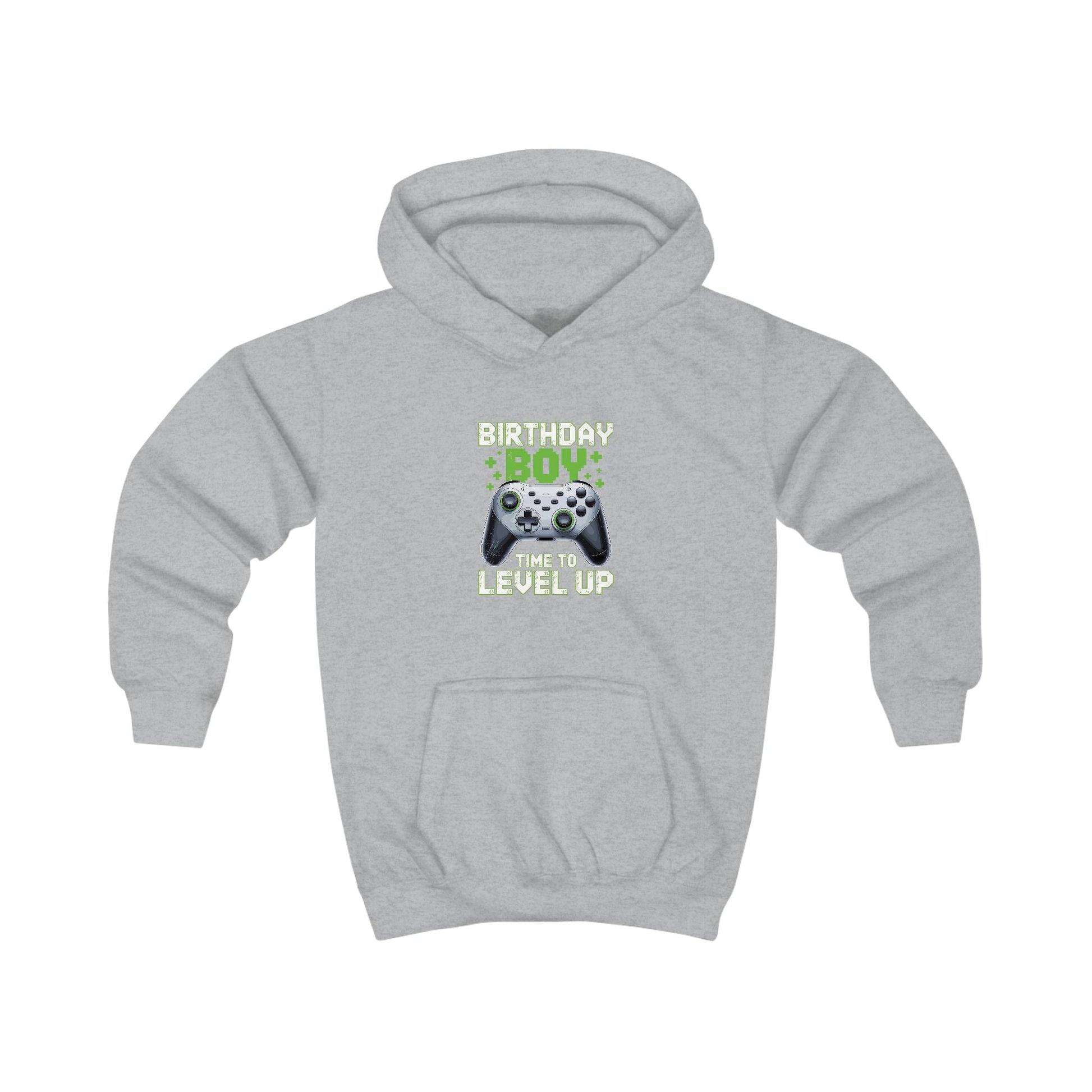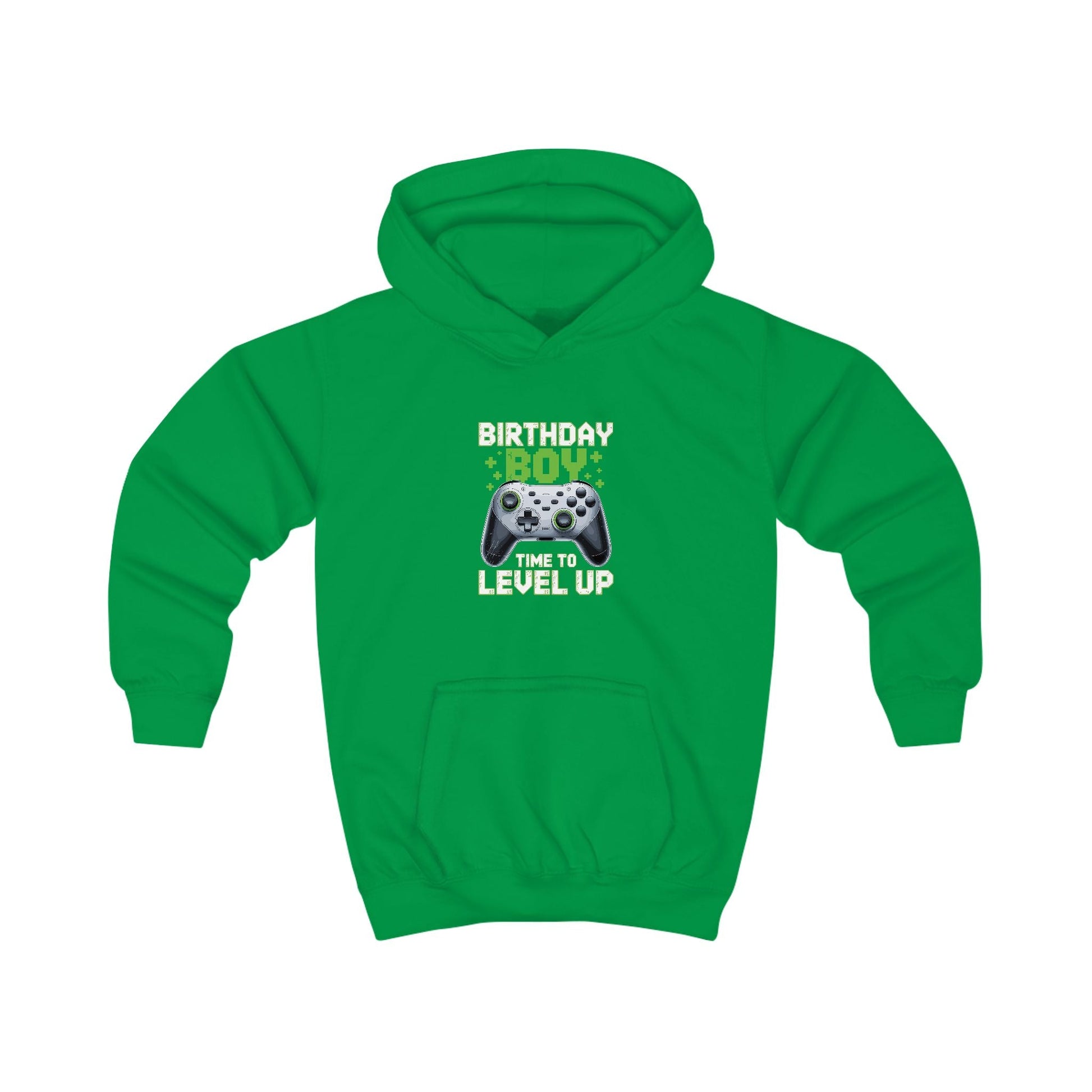 Level Up Birthday Boy Video Game Hoodie is a fun and stylish kids hoodie perfect for any little gamer celebrating a birthday. The design gives off a playful and energetic vibe, making it a great gift for young video game enthusiasts. This hoodie is ideal for birthdays, gaming parties, and casual everyday wear for kids.