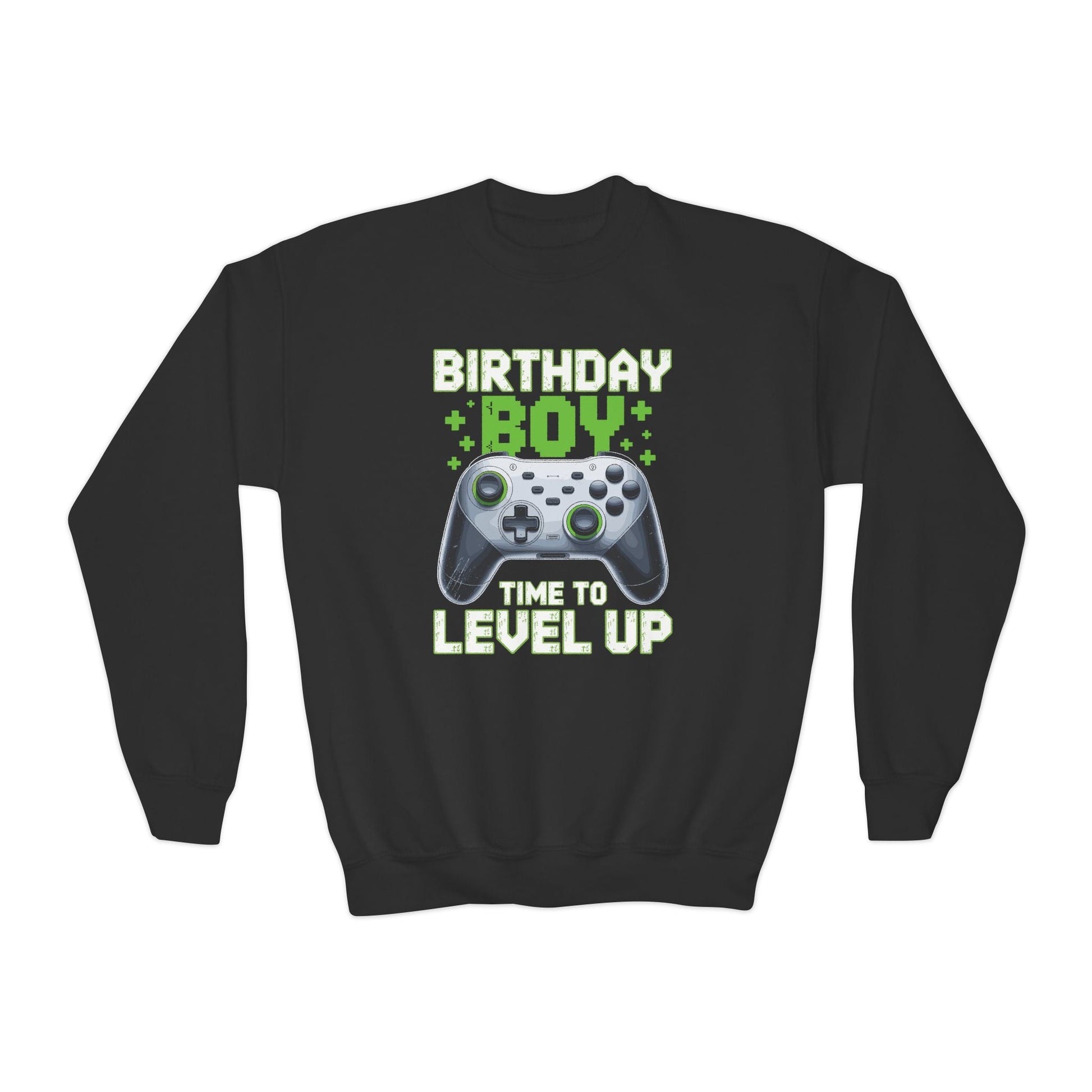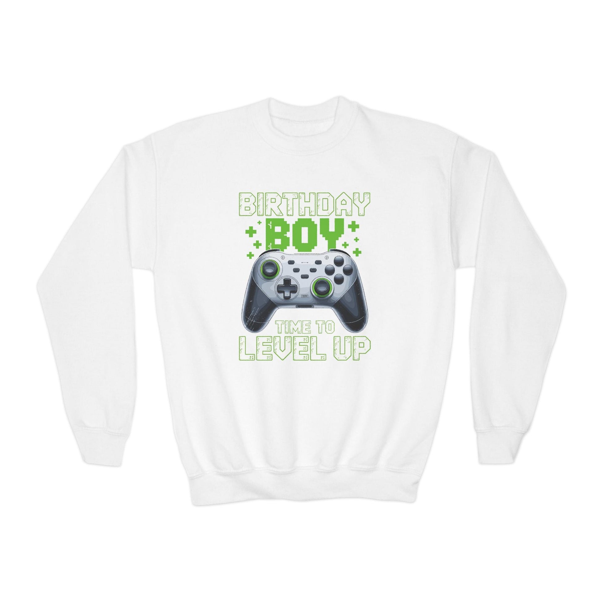 This Level Up Birthday Boy video game sweatshirt is perfect for young gamers celebrating their special day. The cozy and stylish design creates a fun and festive vibe, making it a great addition to a birthday outfit. Target audience includes kids and children's birthday celebrations.
