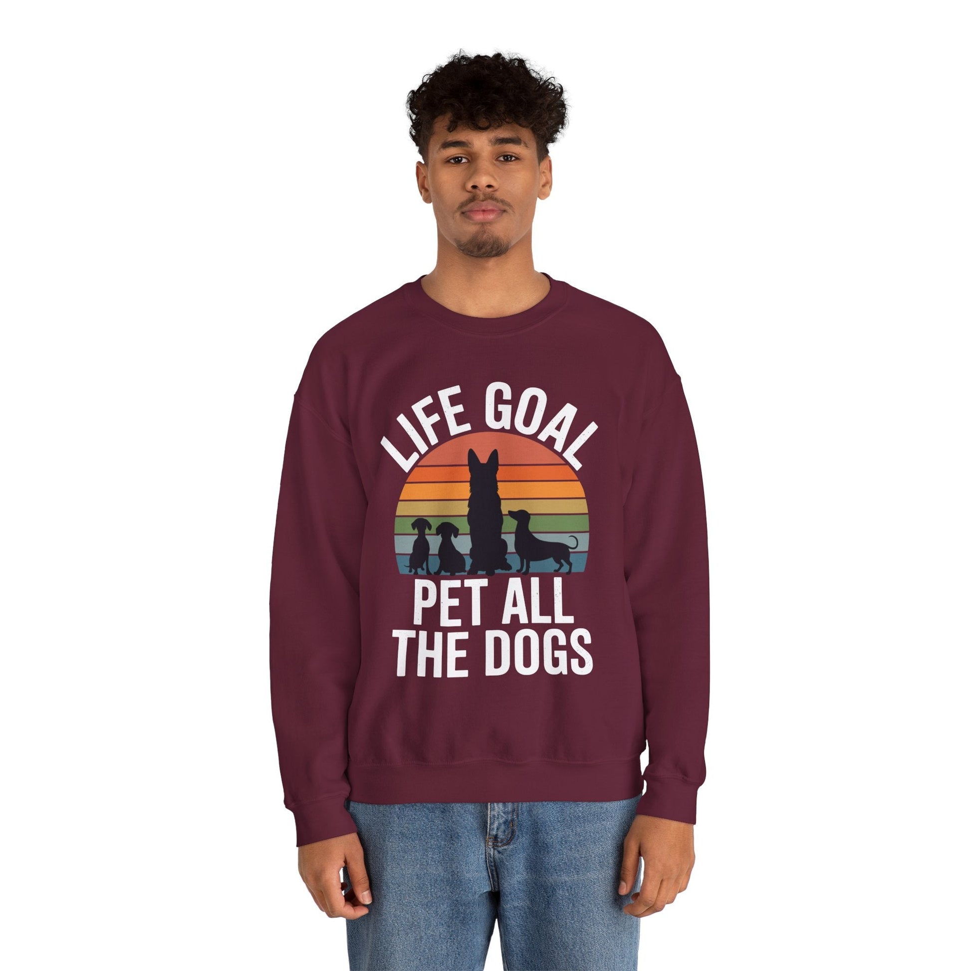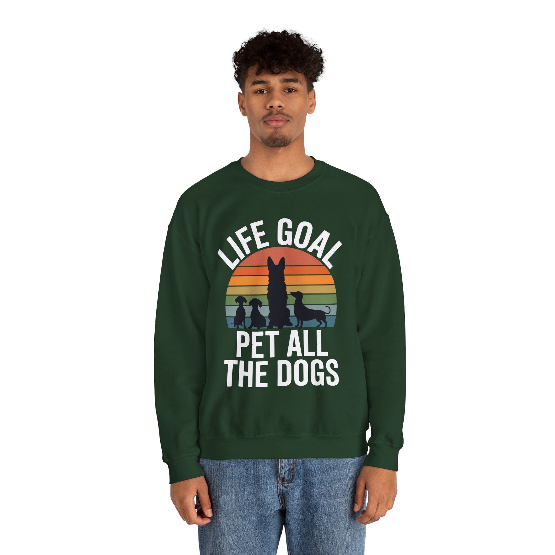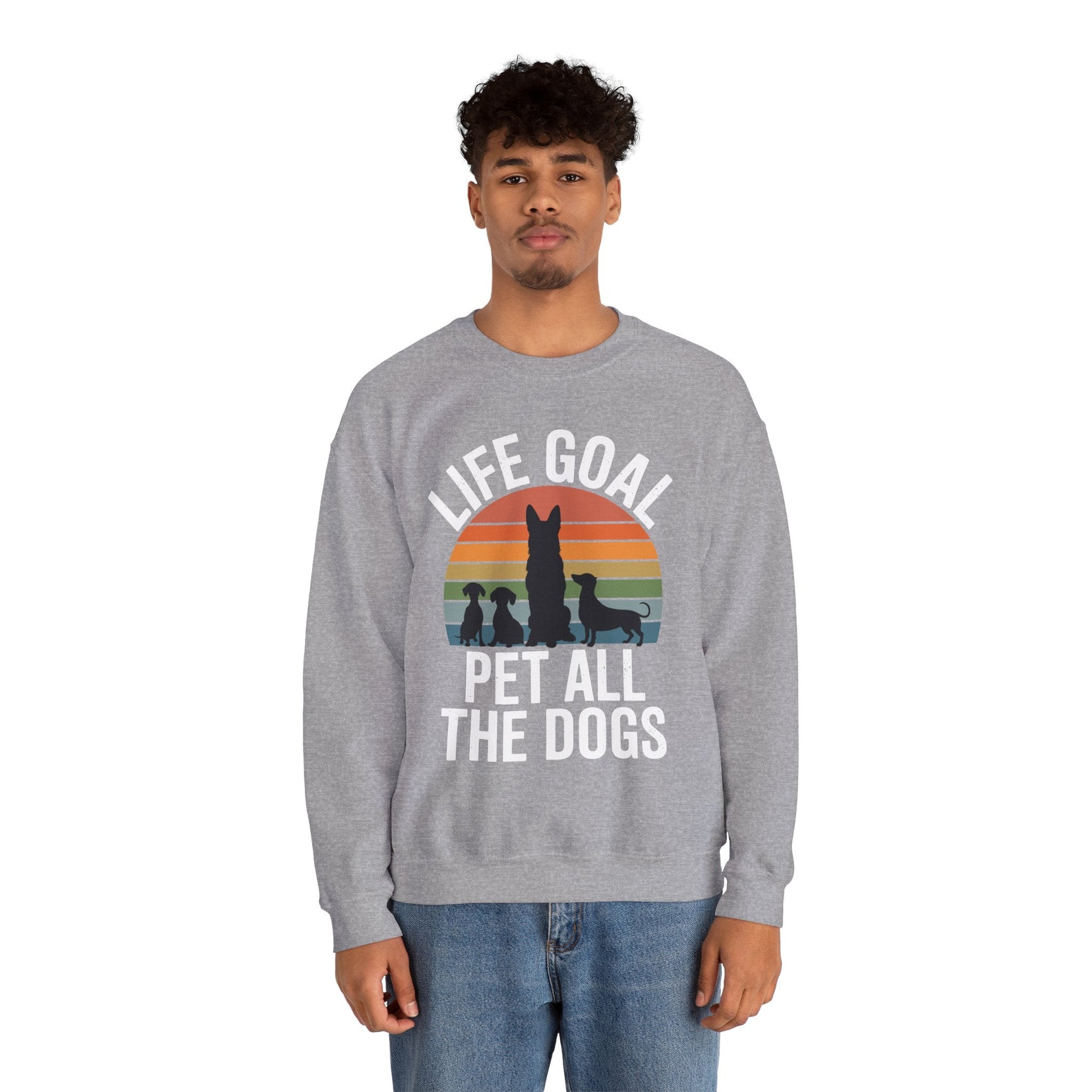 The “Life Goal Pet All The Dogs” Sweatshirt is more than cozy apparel—it’s a declaration for every dog lover who treats tail wags like therapy. Whether you're walking through the park, volunteering at a shelter, or just dreaming of your next furry encounter, this sweatshirt solves the problem of bland fashion by turning your passion into a warm, witty statement.
