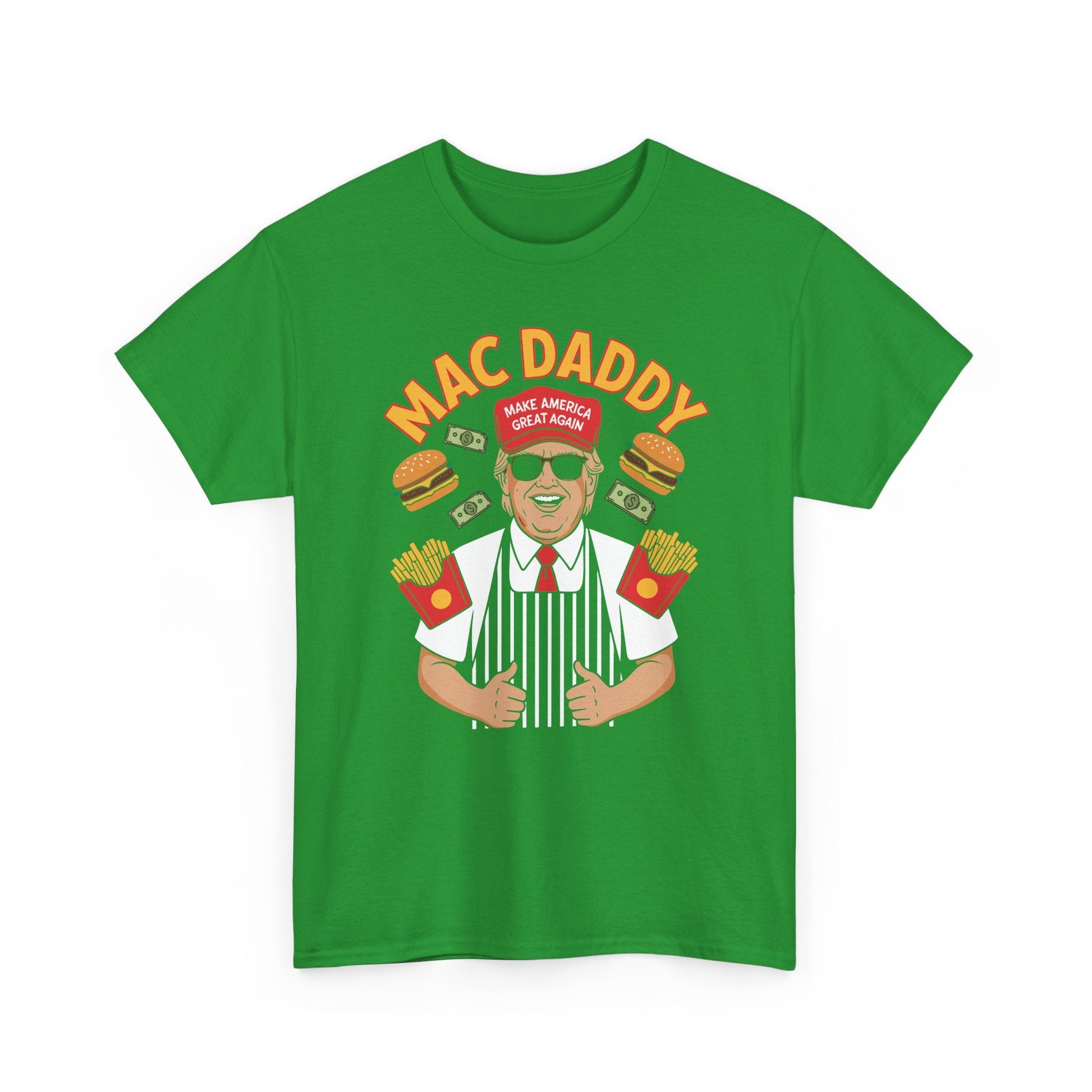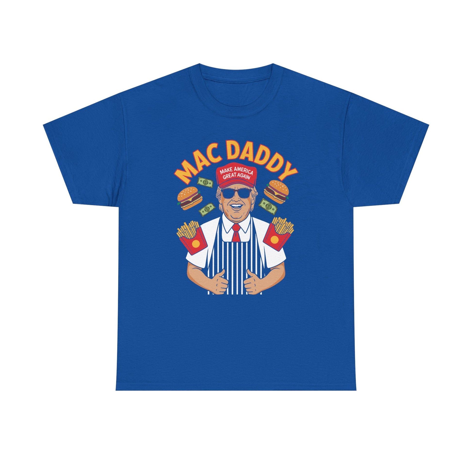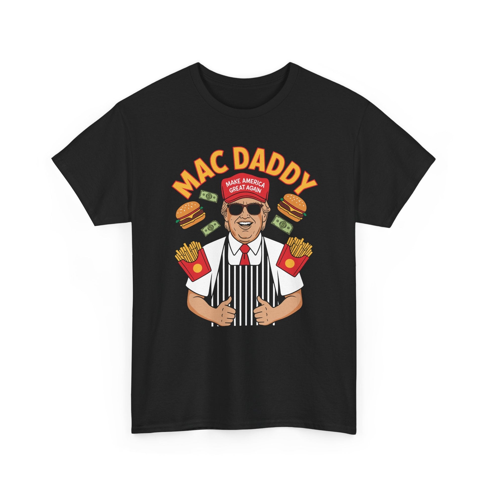 This Mac Daddy Make America Great Again T-shirt exudes a patriotic and bold vibe, perfect for those who want to make a statement. It is relevant for Fourth of July celebrations, political events, and patriotic holidays. The classic fit and comfortable fabric make it suitable for adults looking for a versatile and eye-catching wardrobe piece.