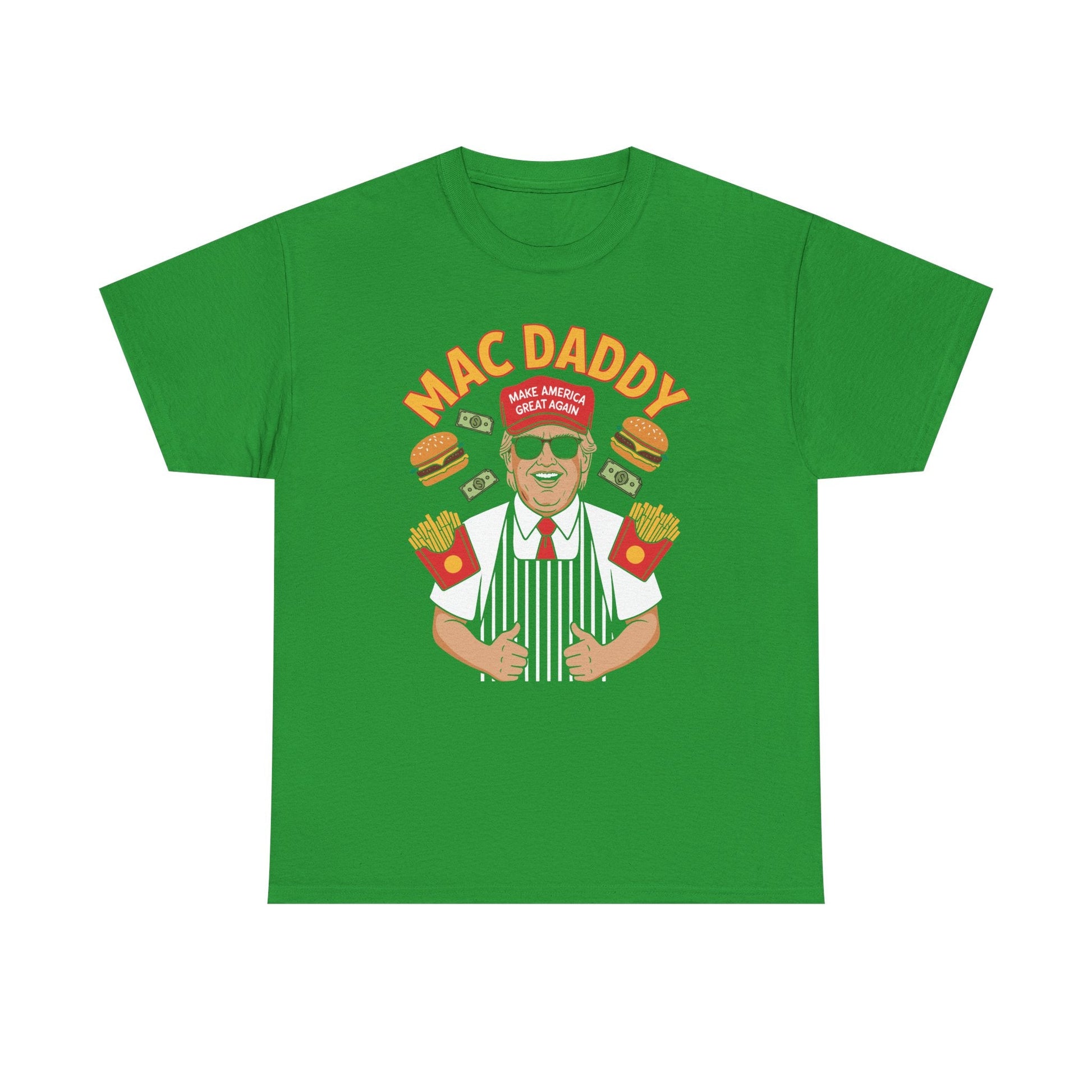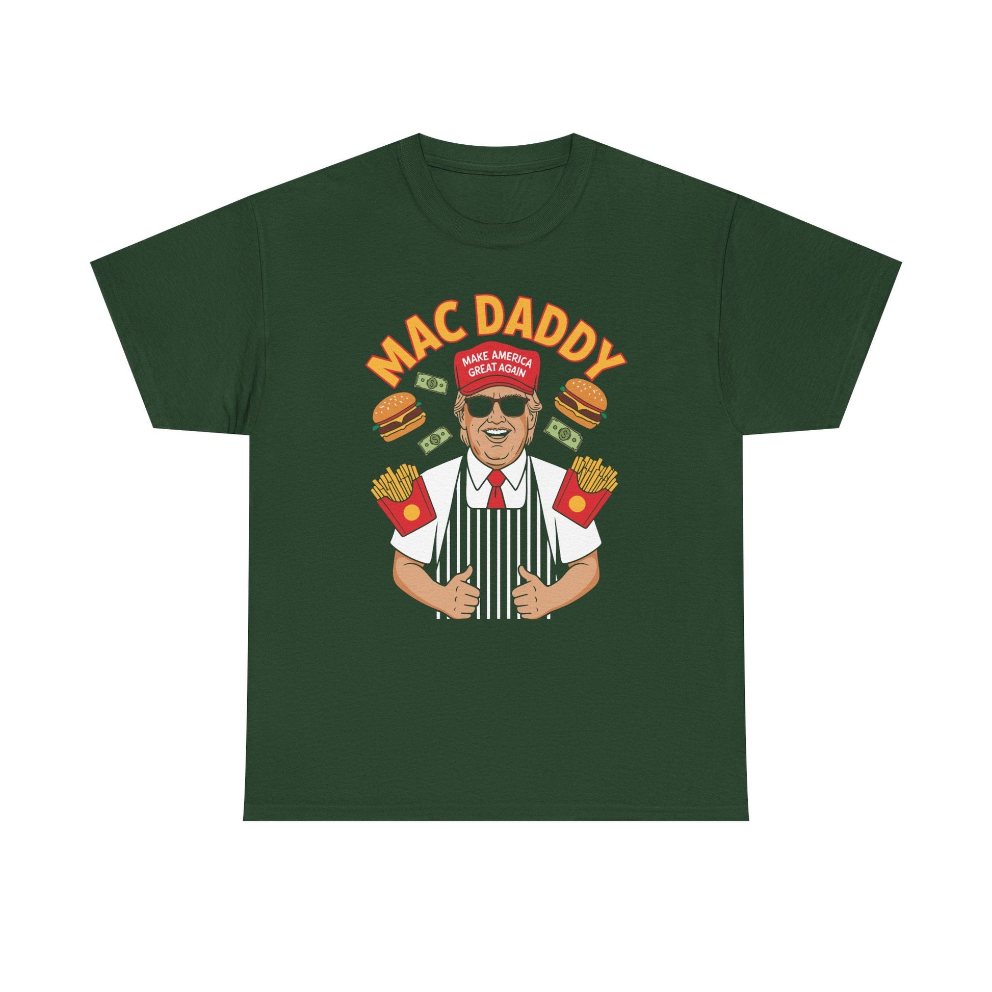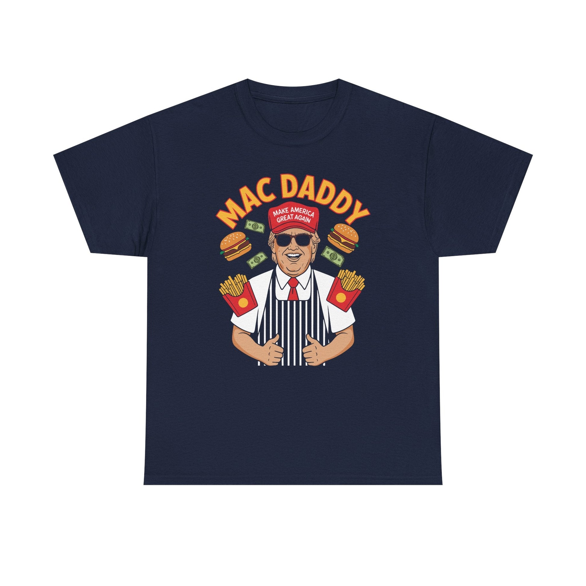 This Mac Daddy Make America Great Again T-shirt exudes a patriotic and bold vibe, perfect for those who want to make a statement. It is relevant for Fourth of July celebrations, political events, and patriotic holidays. The classic fit and comfortable fabric make it suitable for adults looking for a versatile and eye-catching wardrobe piece.