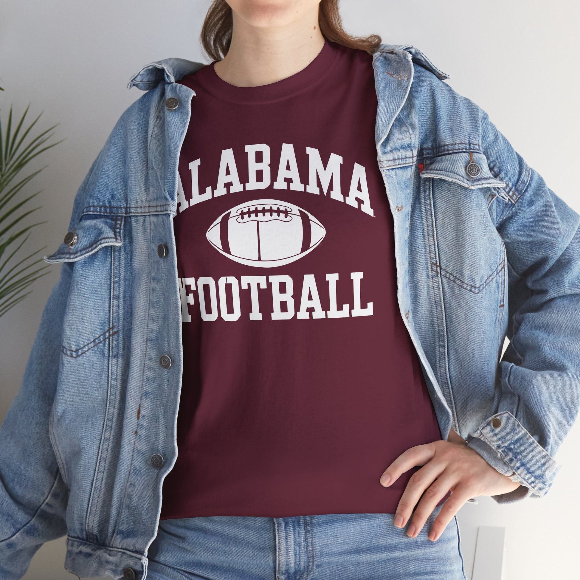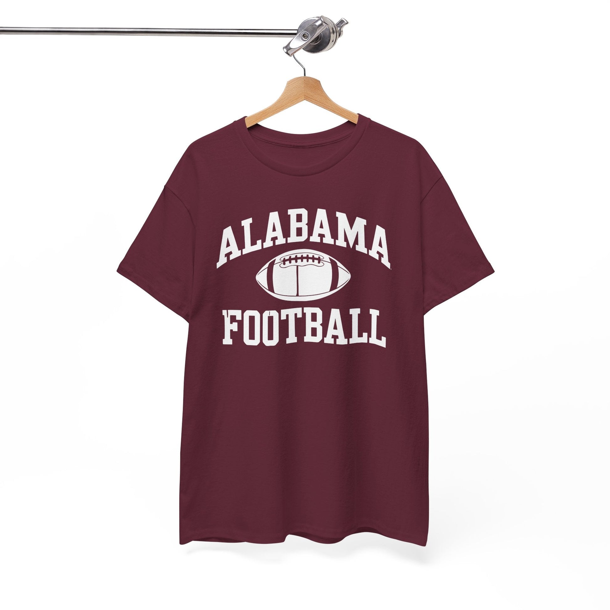 · Vintage Distressed Graphic Design: Features classic football laces and bold “Alabama Football” text with a weathered finish—perfect for fans who love old-school grit and modern pride