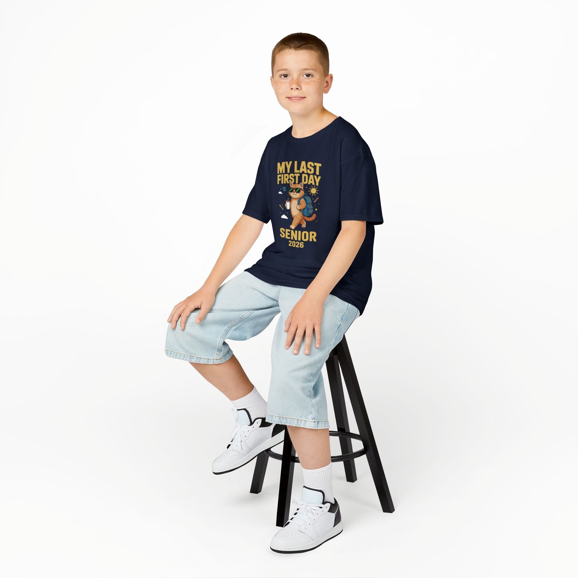 This 'My Last First Day Senior 2026 Cat Back to School Cool Class' T-Shirt is a perfect way for kids to start the school year with style. The design gives off a cool and fun vibe, making it ideal for young students heading back to school. It is relevant for back-to-school season and any school-related occasion.