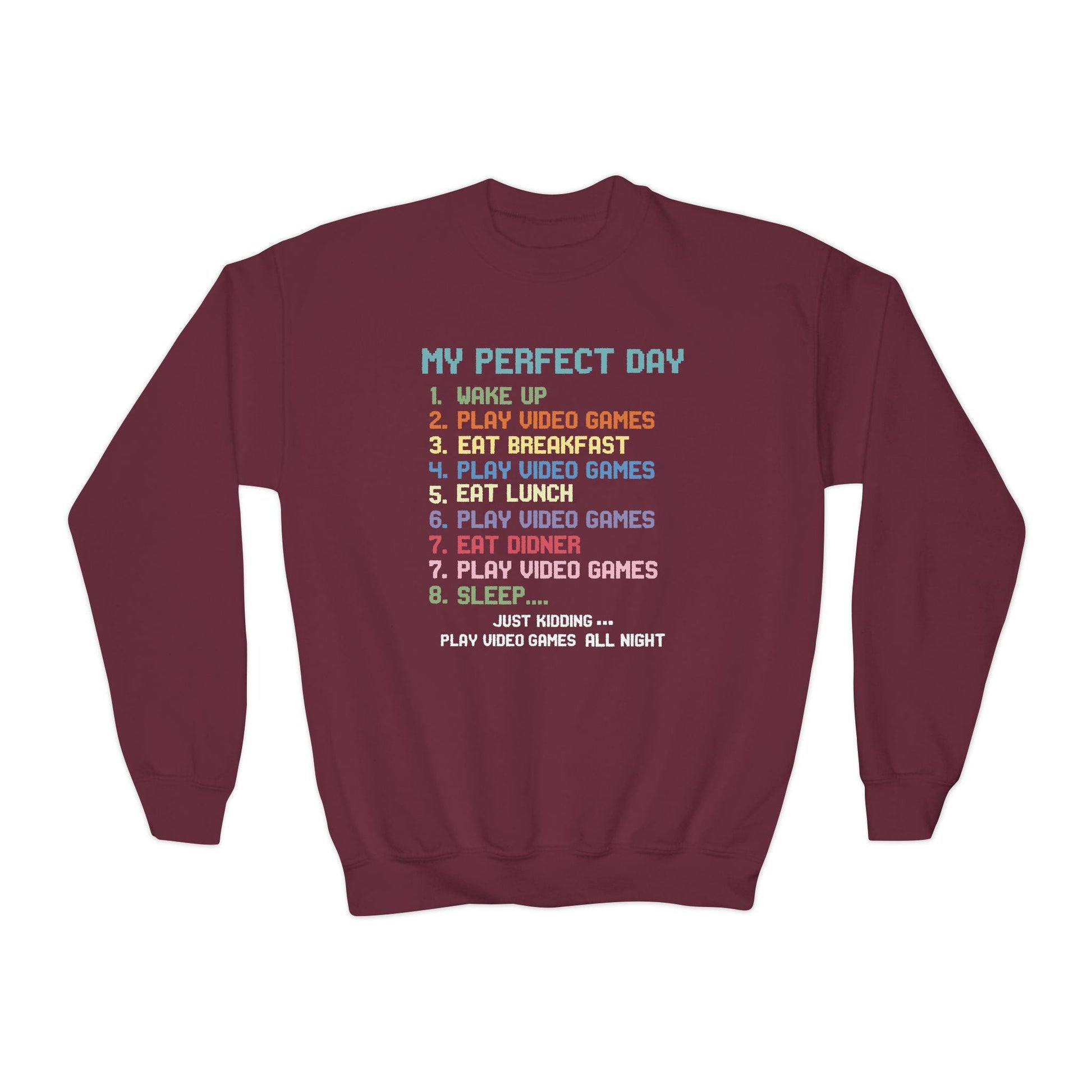 My Perfect Day Play Video Games Funny Gamer Kids Sweatshirt