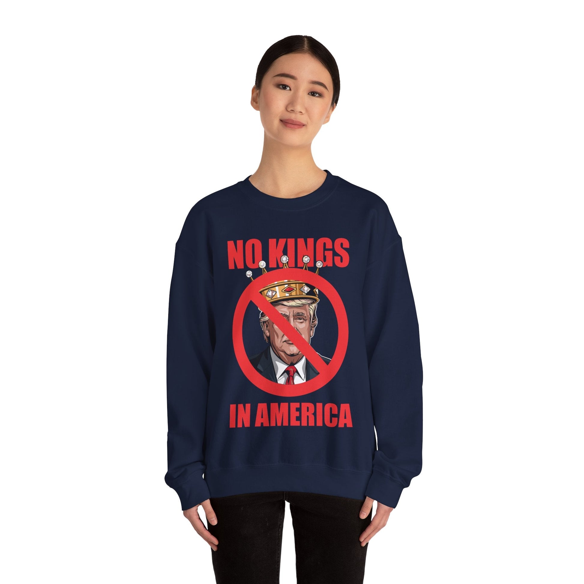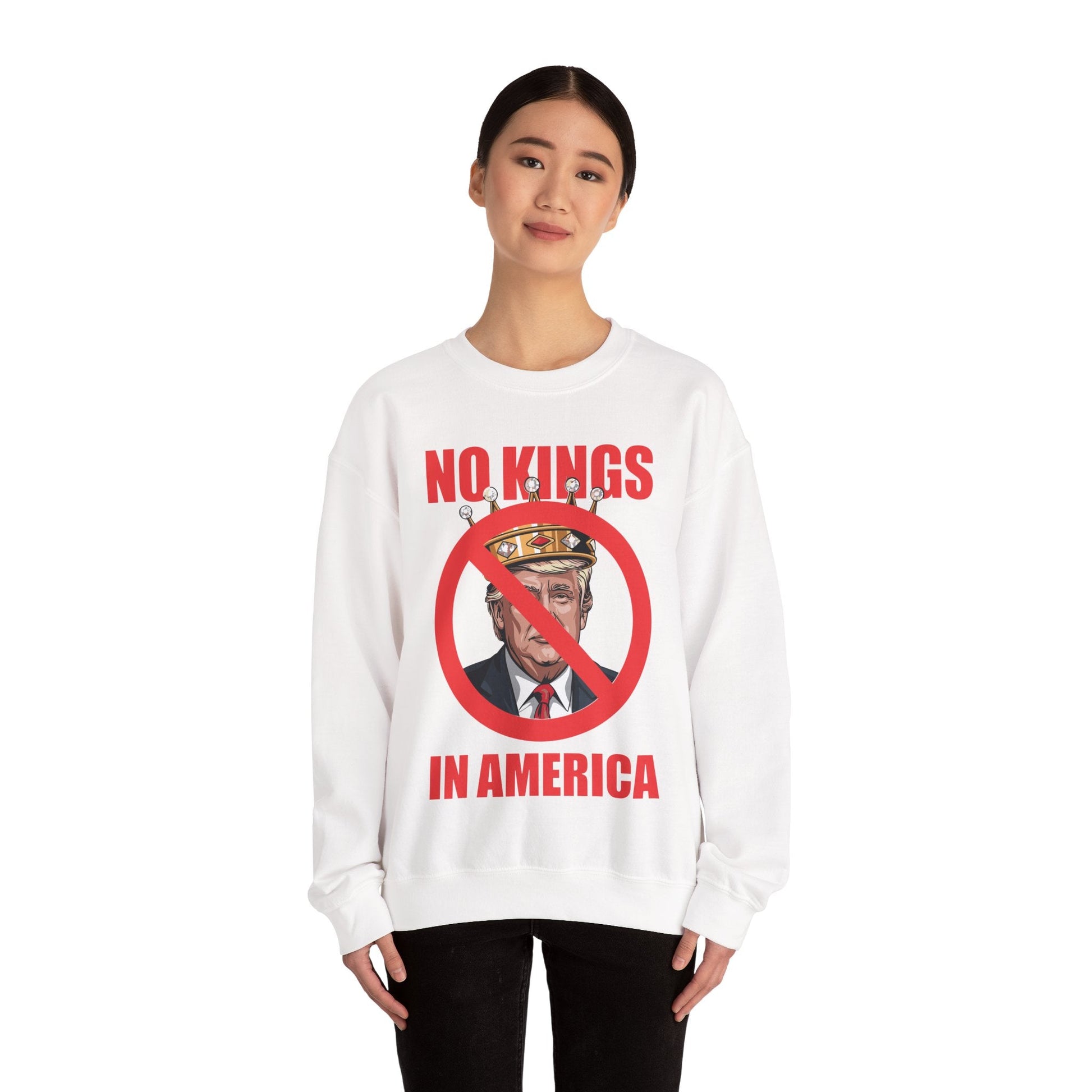 This No kings in America Sweatshirt is perfect for those looking for a cozy and durable option for colder months. It offers a classic fit with a clean-cut style, making it a comfortable choice for everyday wear. The sweatshirt is ideal for adults and is made with a medium-heavy fabric blend of 50% cotton and 50% polyester.