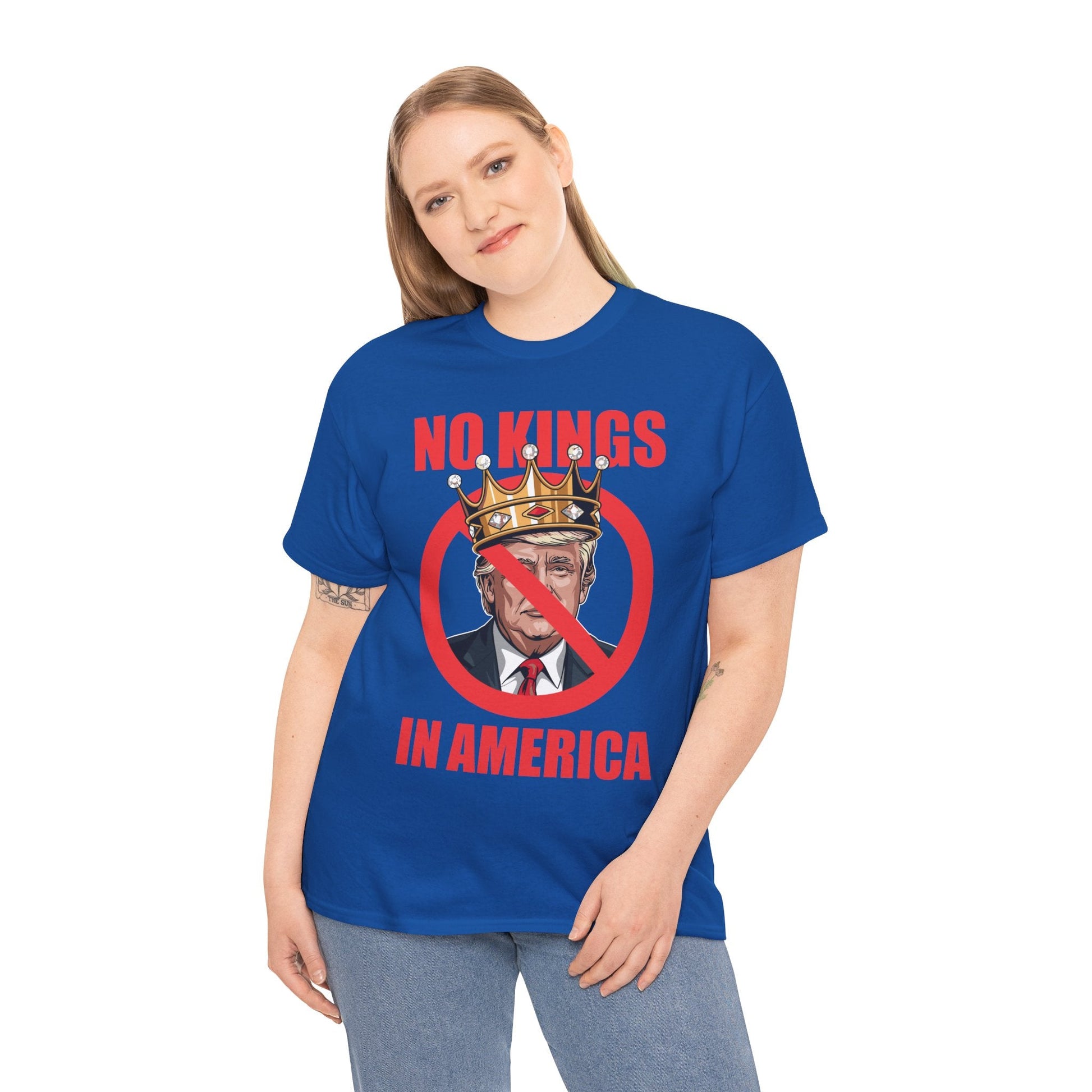 · Striking “No Kings” Graphic: Featuring bold typography and vintage-inspired design, this shirt channels the spirit of revolution and resistance.
