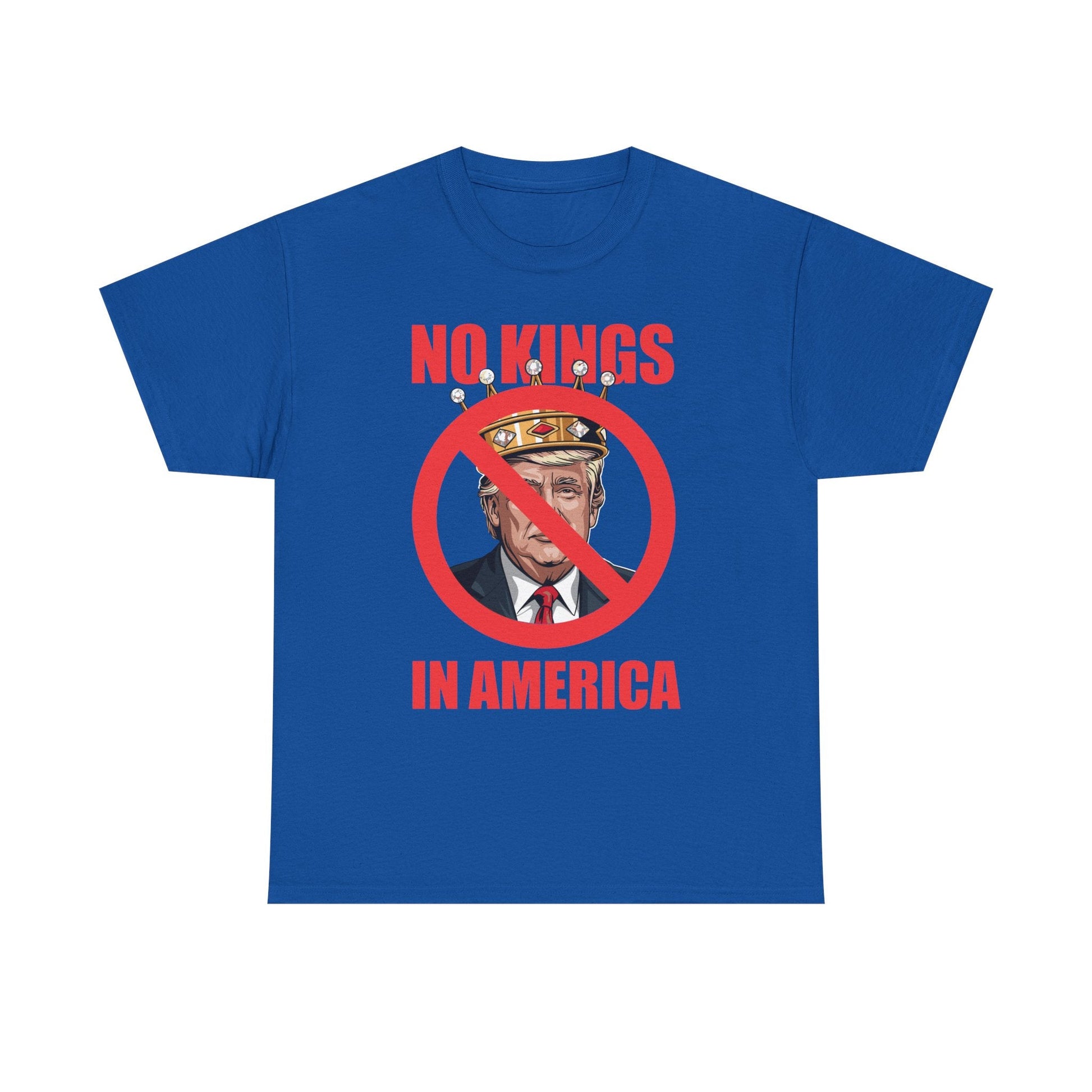 This No kings in America T-Shirt gives off a rebellious and bold vibe, perfect for those who want to make a statement. It is ideal for casual wear and can be worn by adults looking to express their opinions or beliefs. This T-shirt is relevant for Independence Day, protests, demonstrations, and political events.