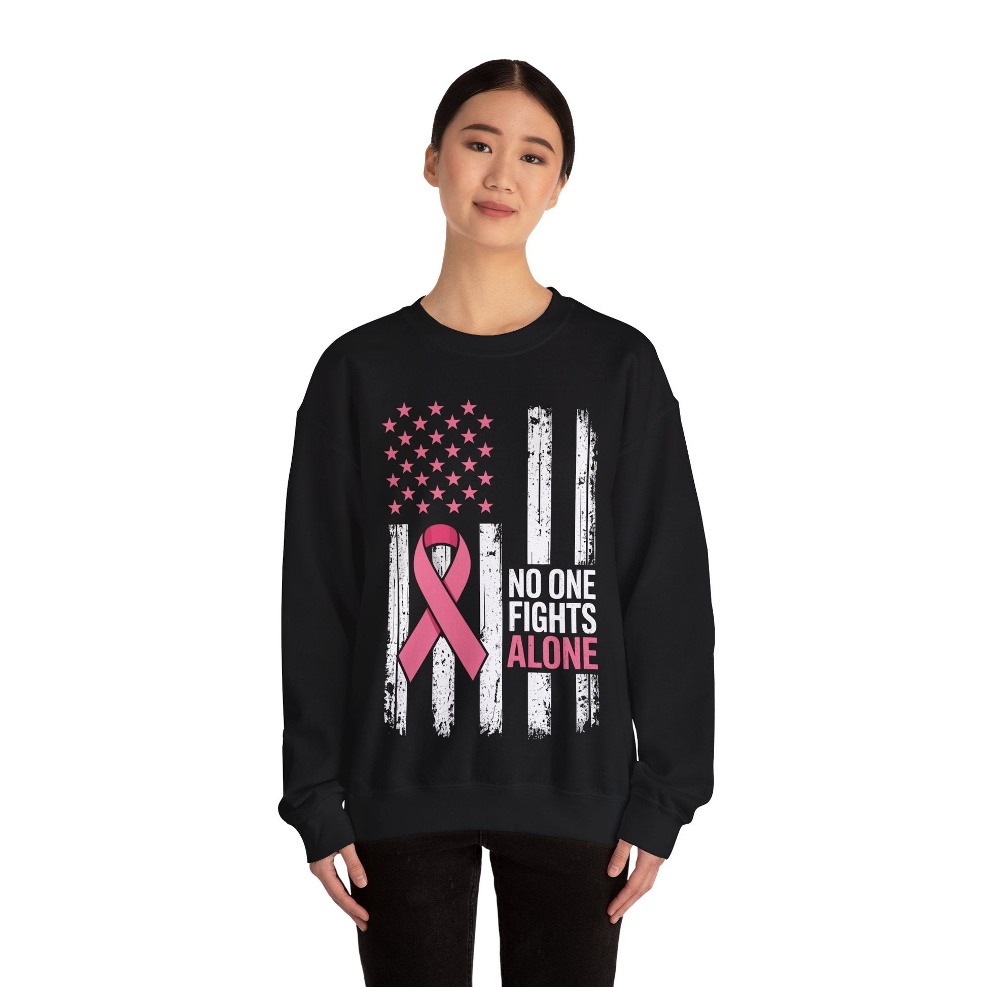 No One Fights Breast Cancer Alone American Flag Pink Ribbon Sweatshirt